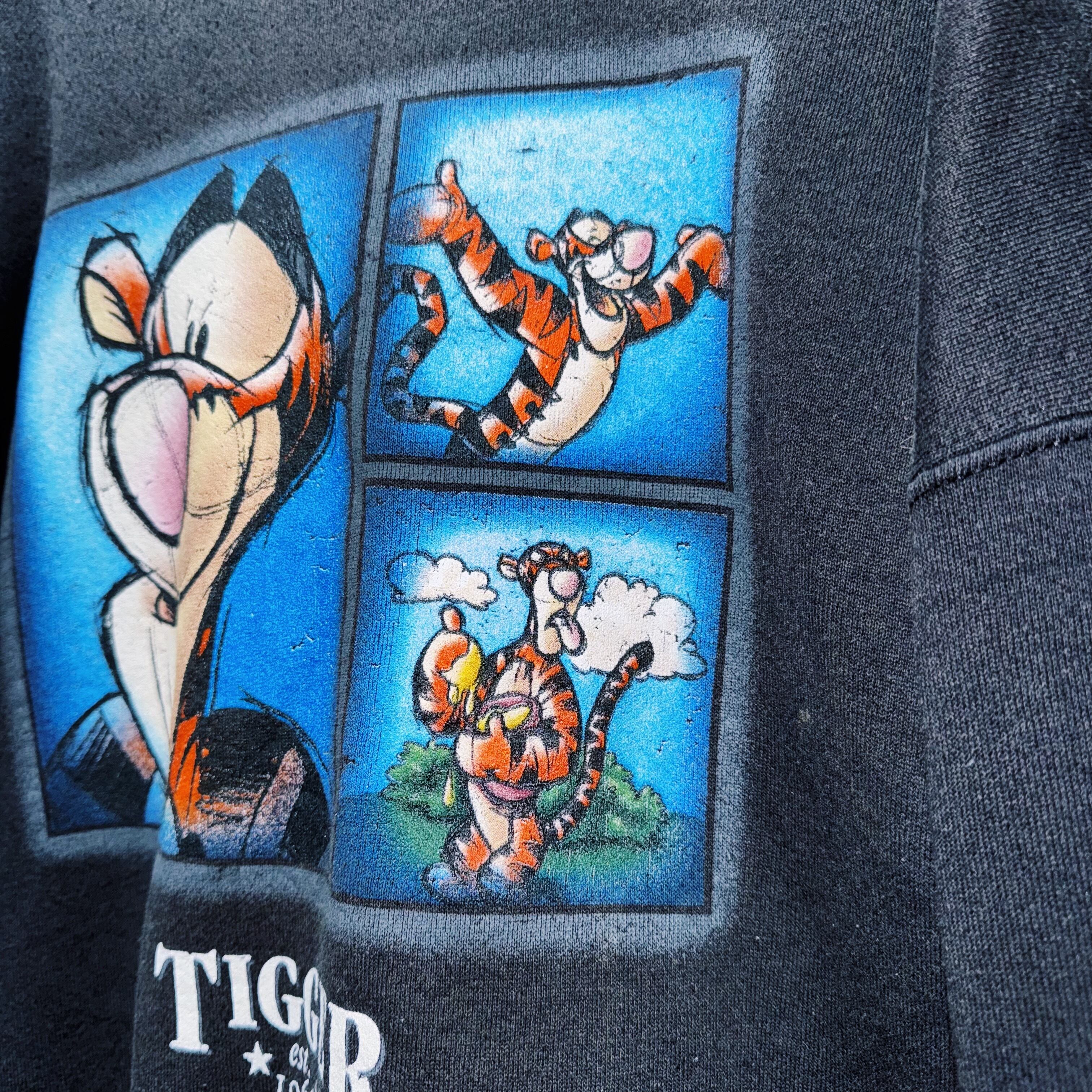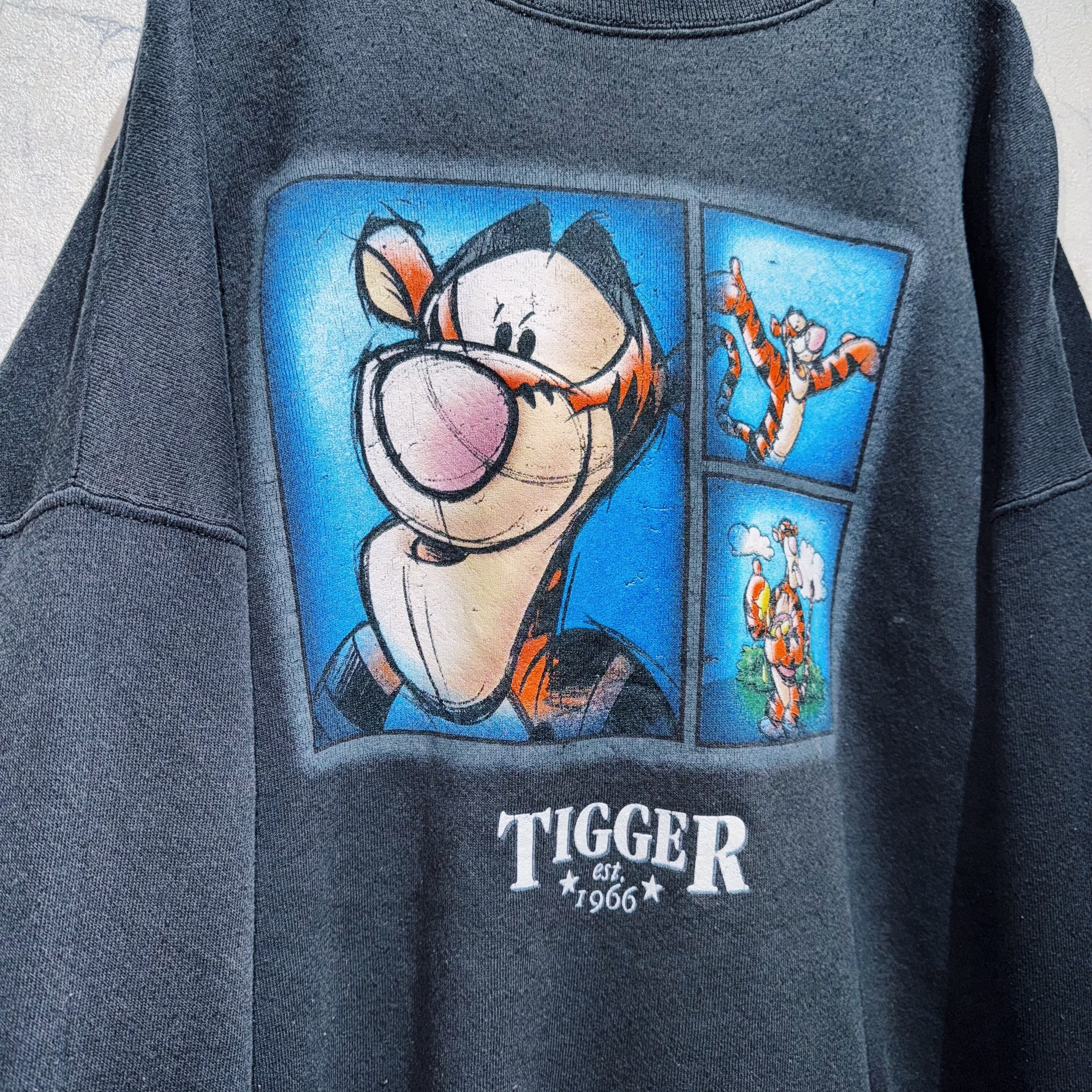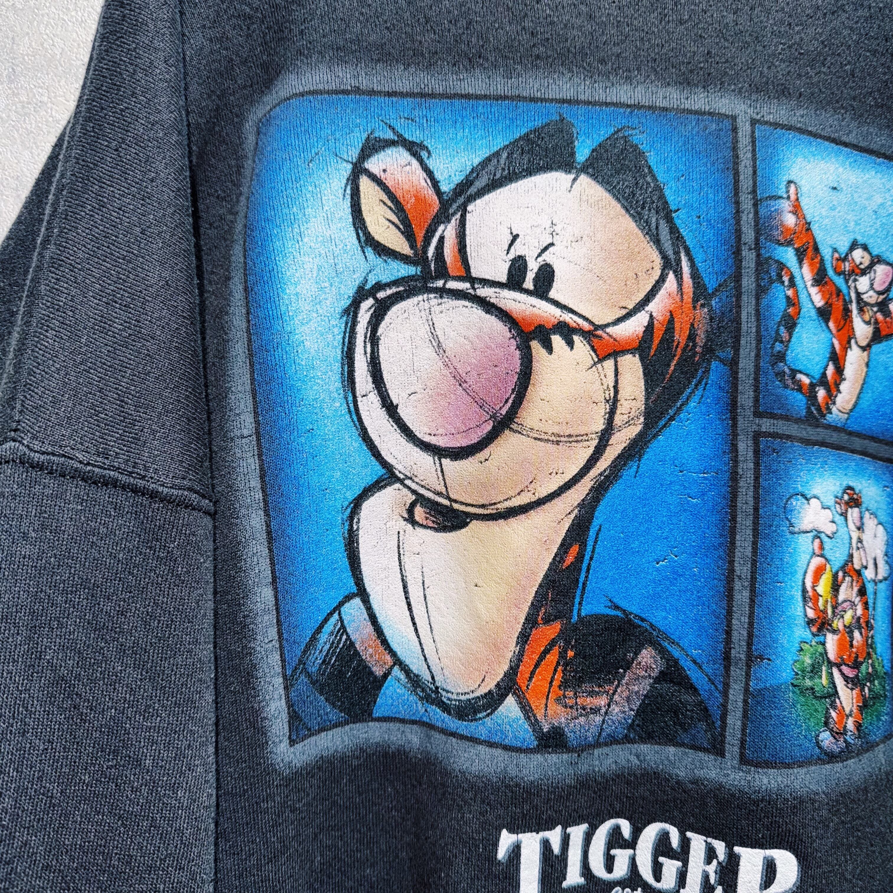 90年台"ディズニー"ティガーイラストレーションプリントデザインプルオーバースウェット