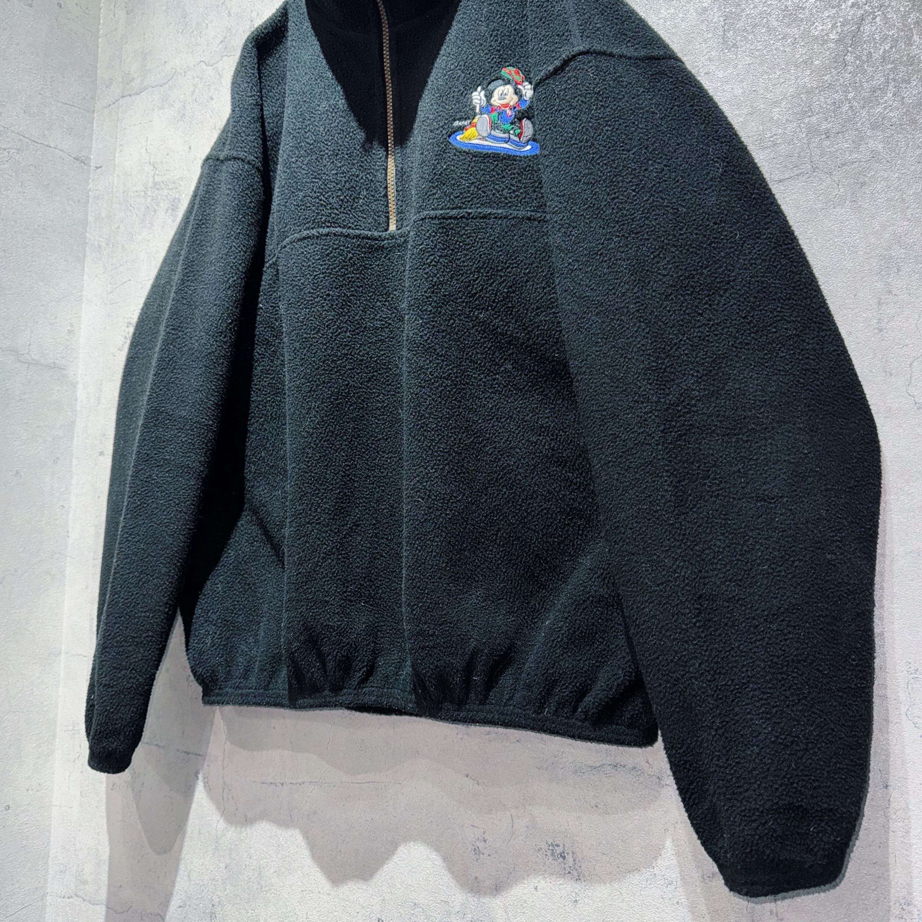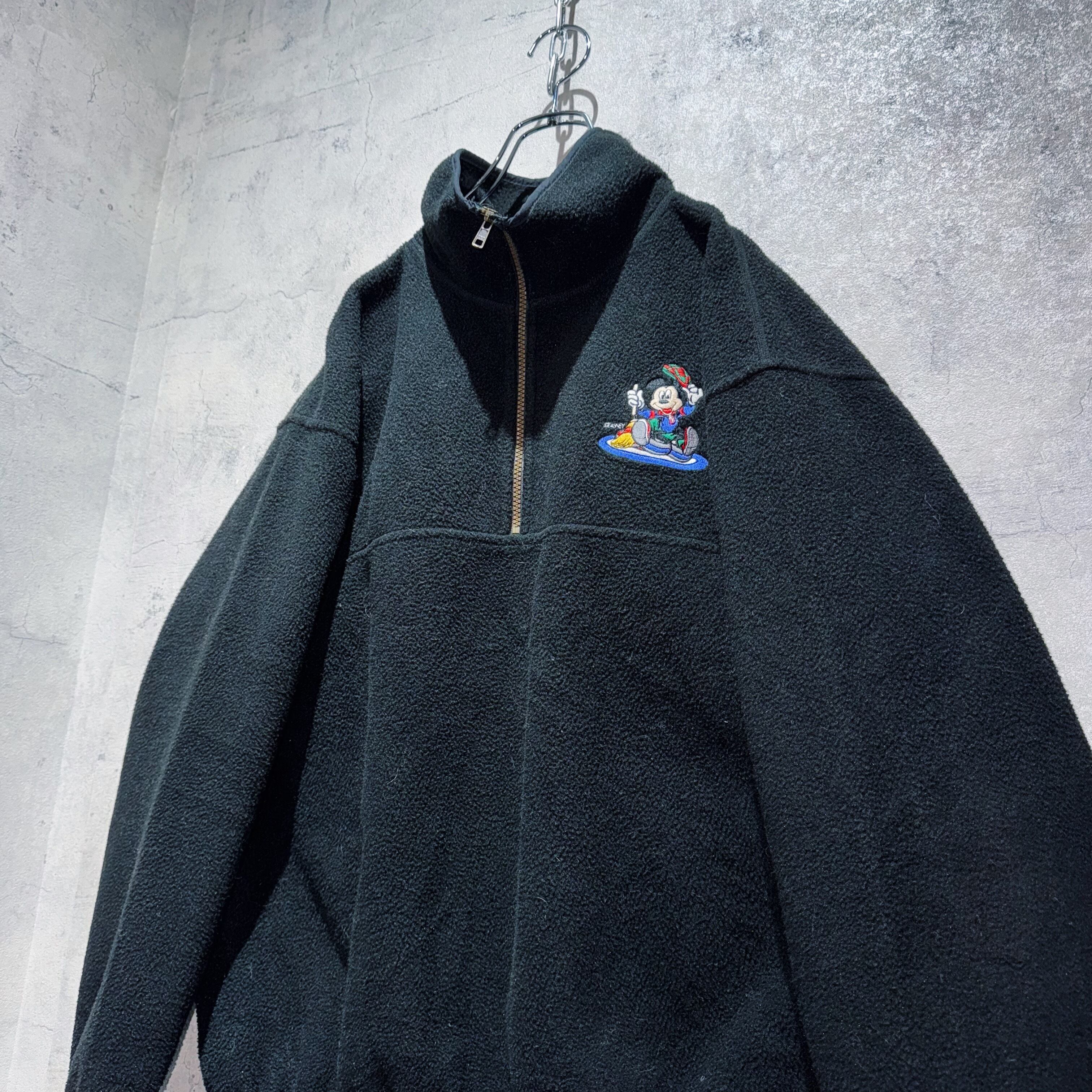 90年代"ディズニー"ミッキーマウスエンブロイダリーデザインハーフジップフリースジャケット