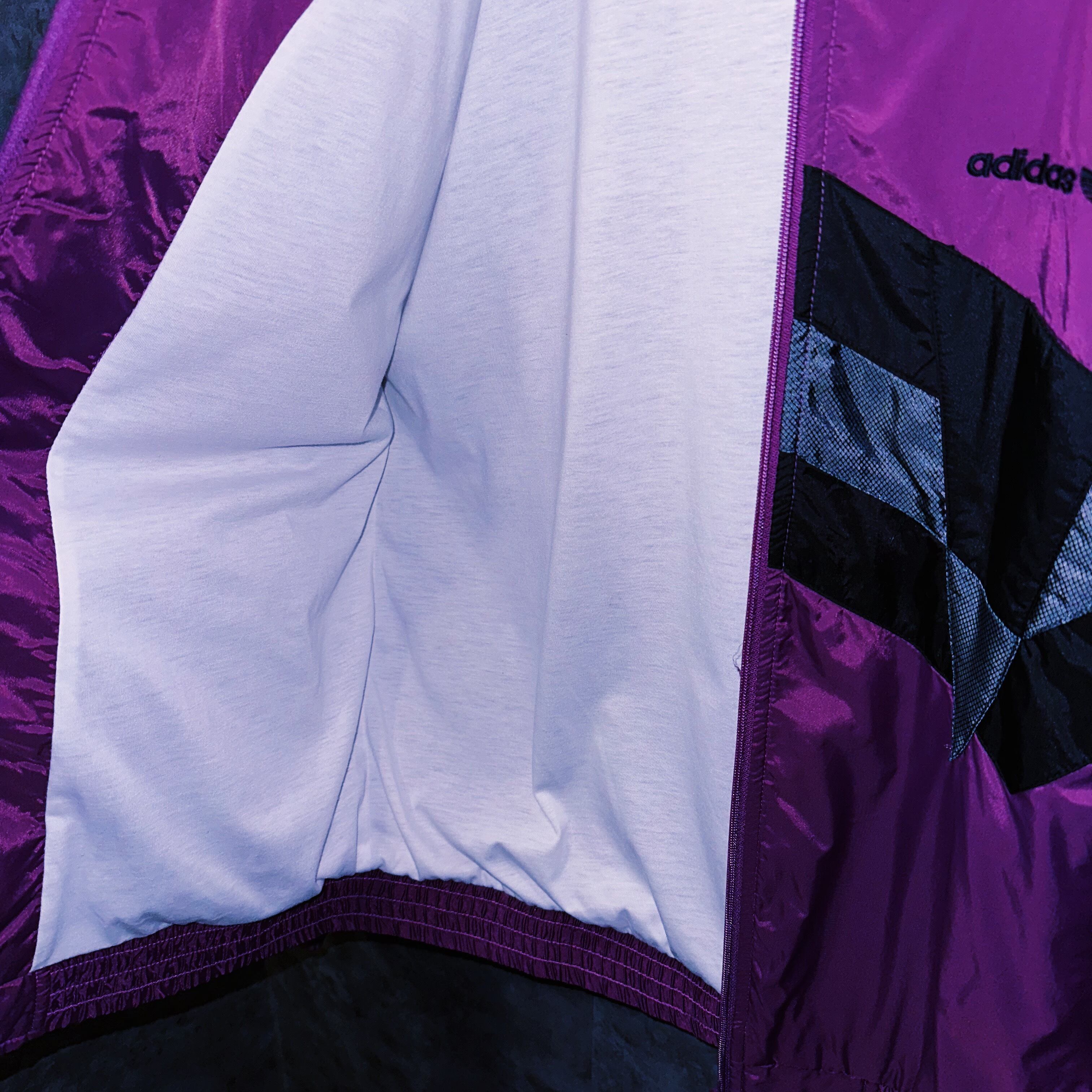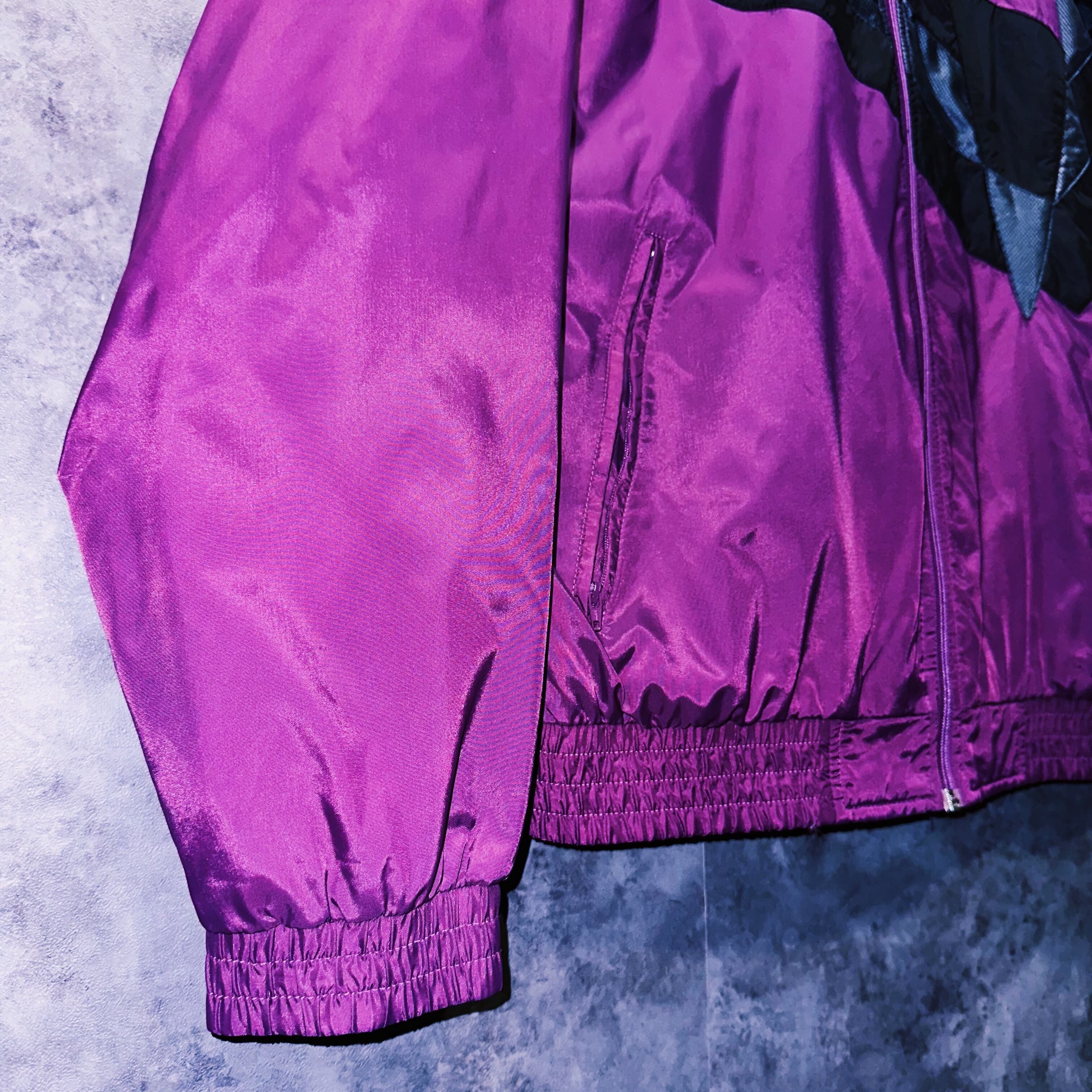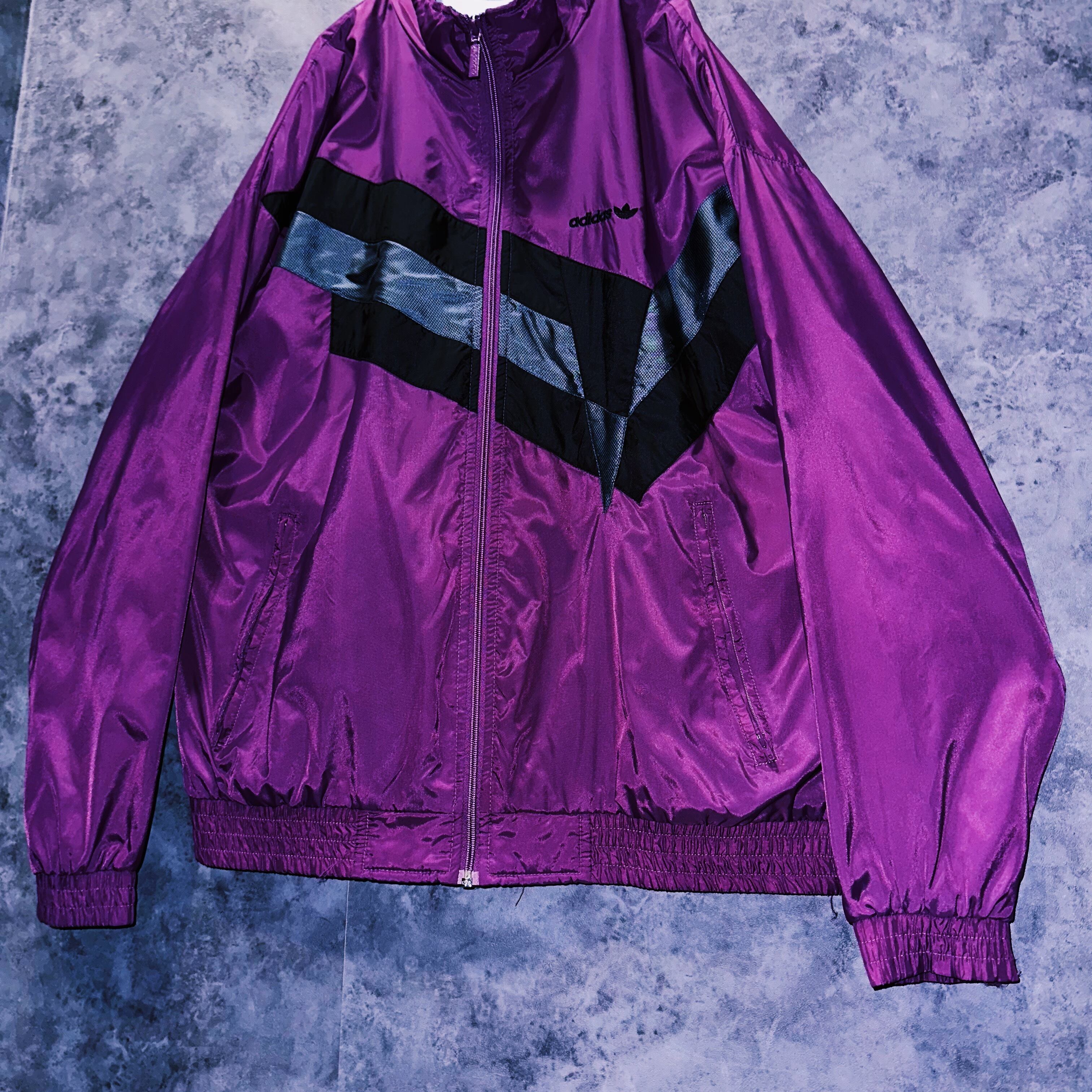 不動の人気を誇るパープルカラーのトラックジャケット。フロントにはVのようなラインが施されアクセントに。