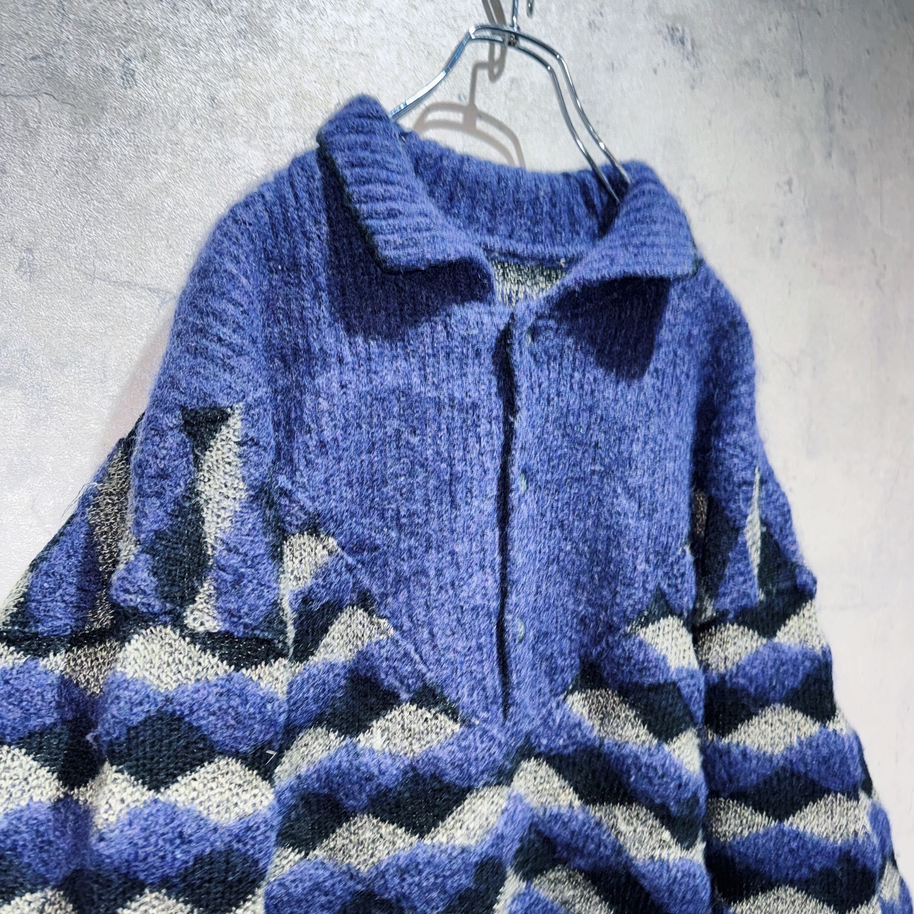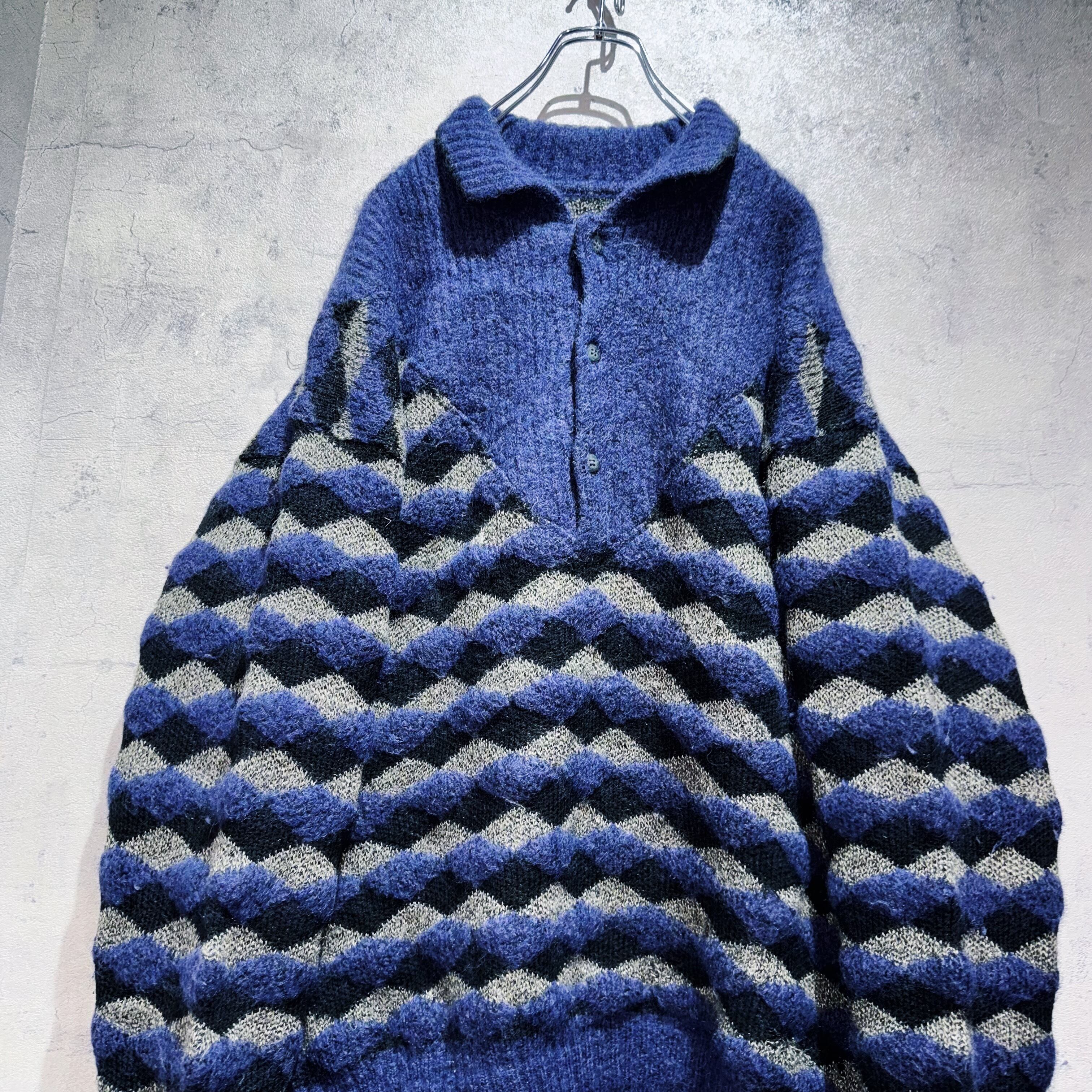ヴィンテージスイッチングカラーデザインモヘアポロニット
