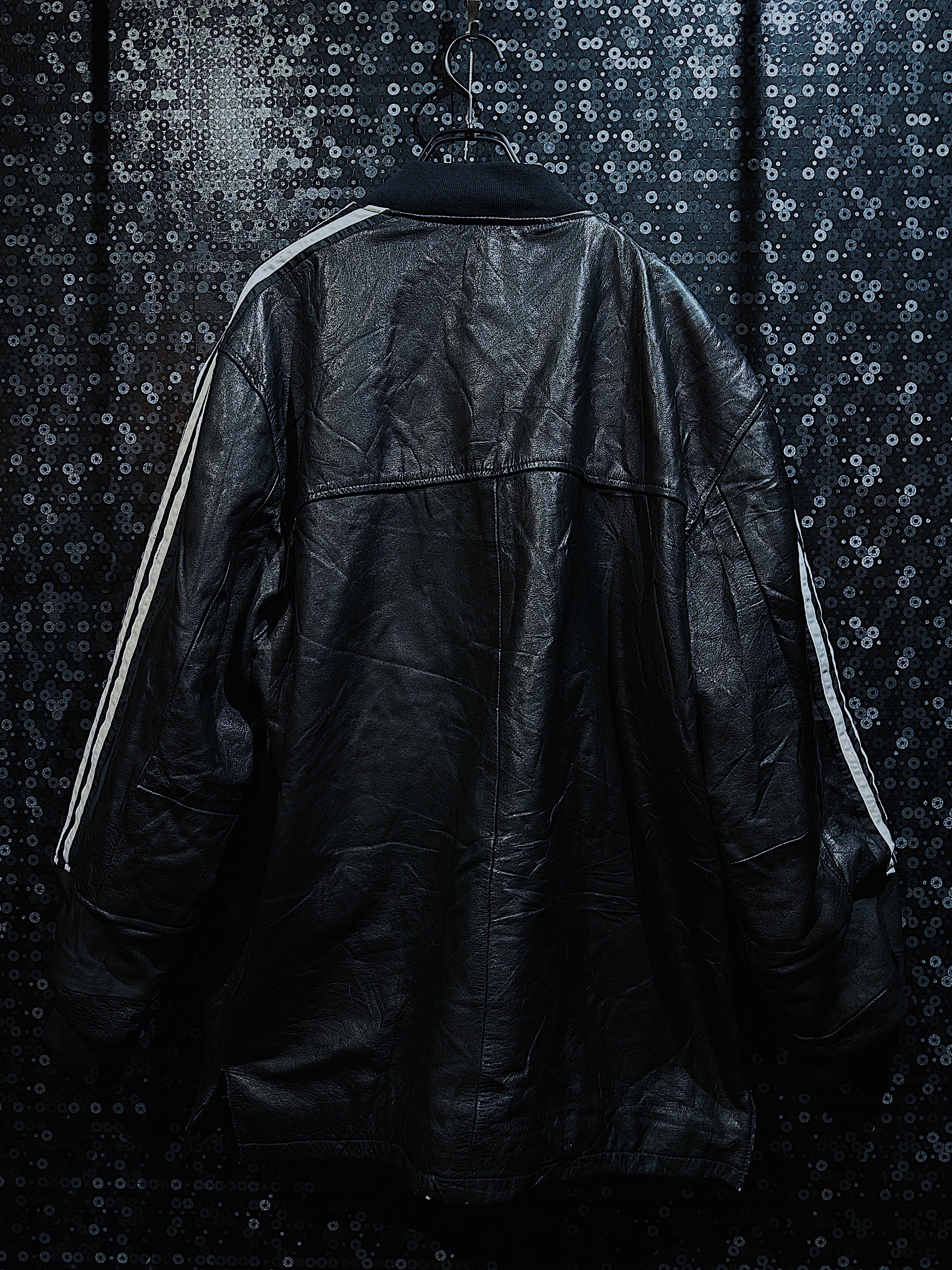 special "original re:make" three stripe design vintage leather jacket three stripe edition