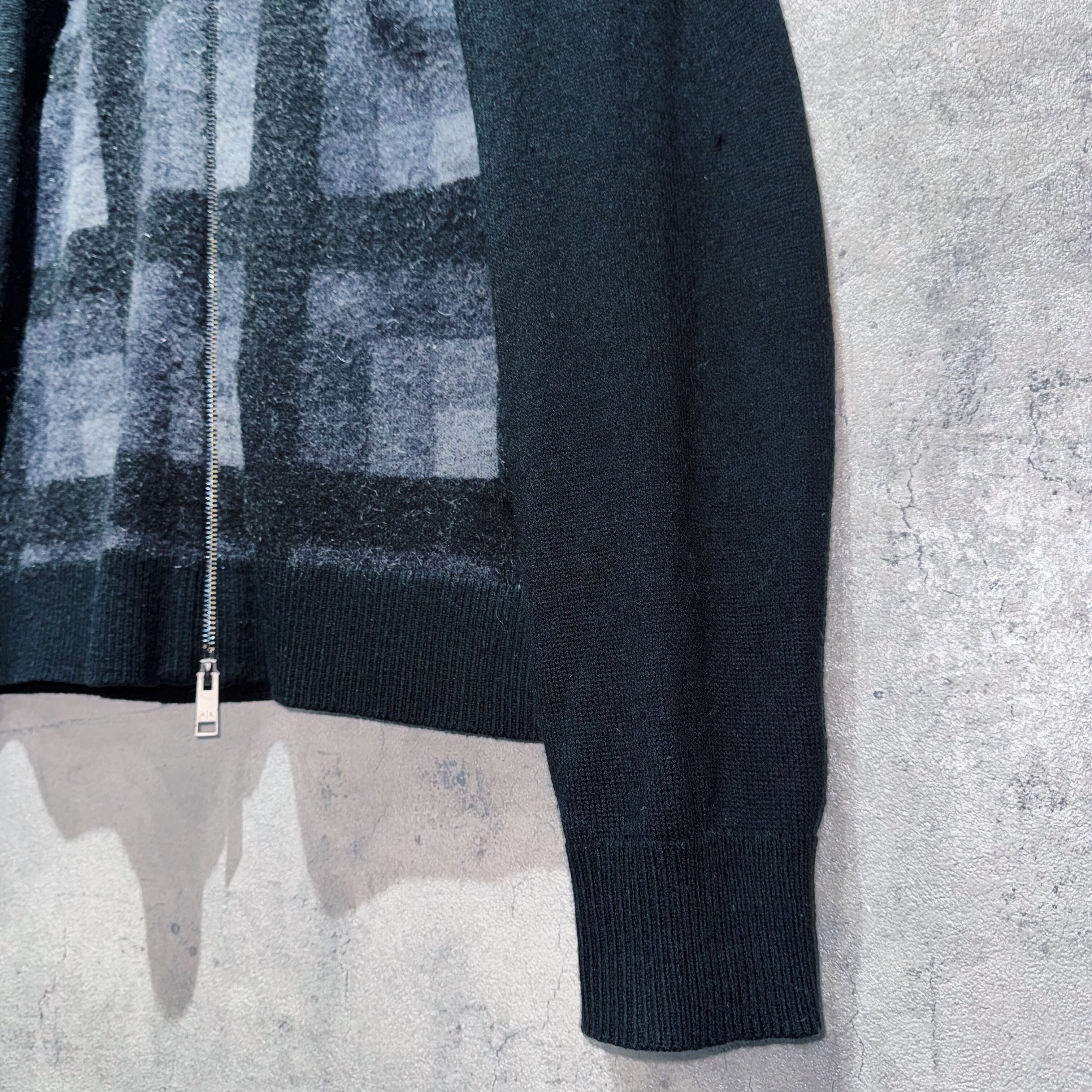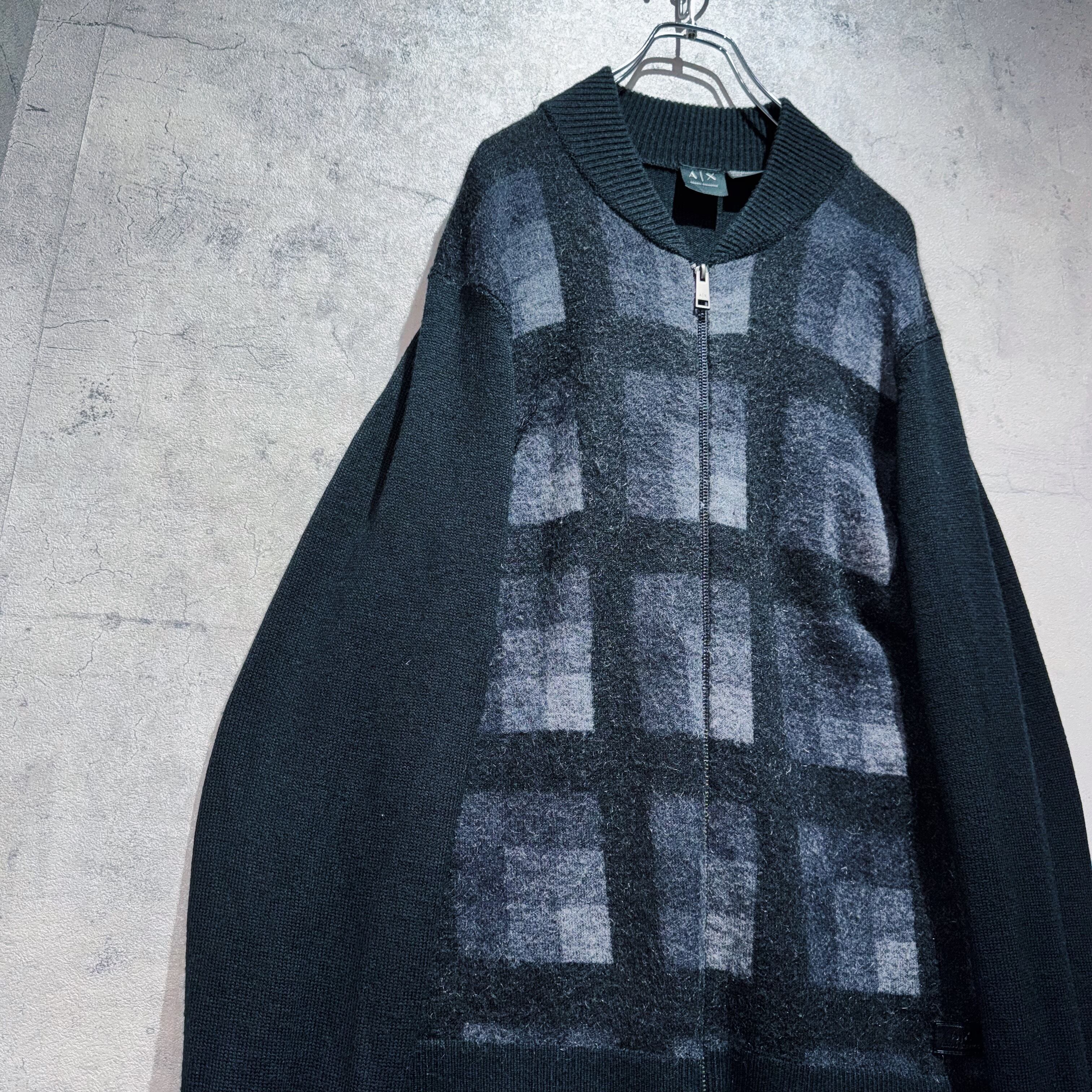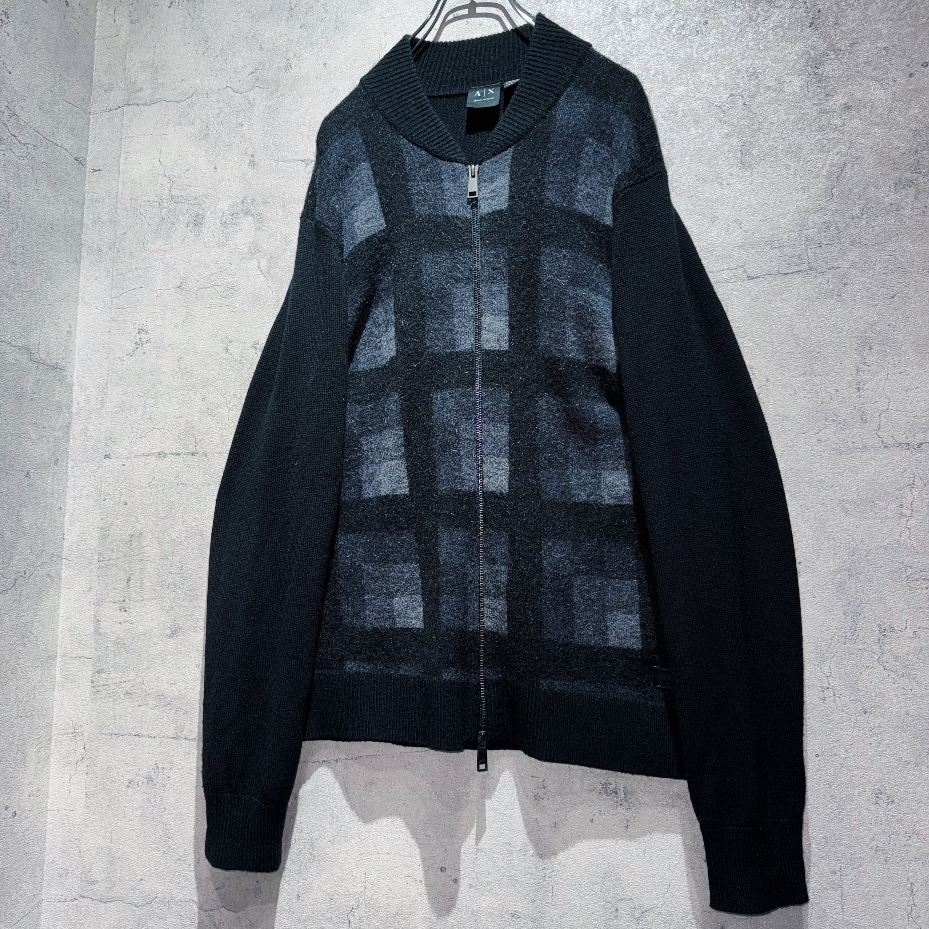 "アルマーニエクスチェンジ"チェックパターンデザインダブルジップアップドライバーズニット