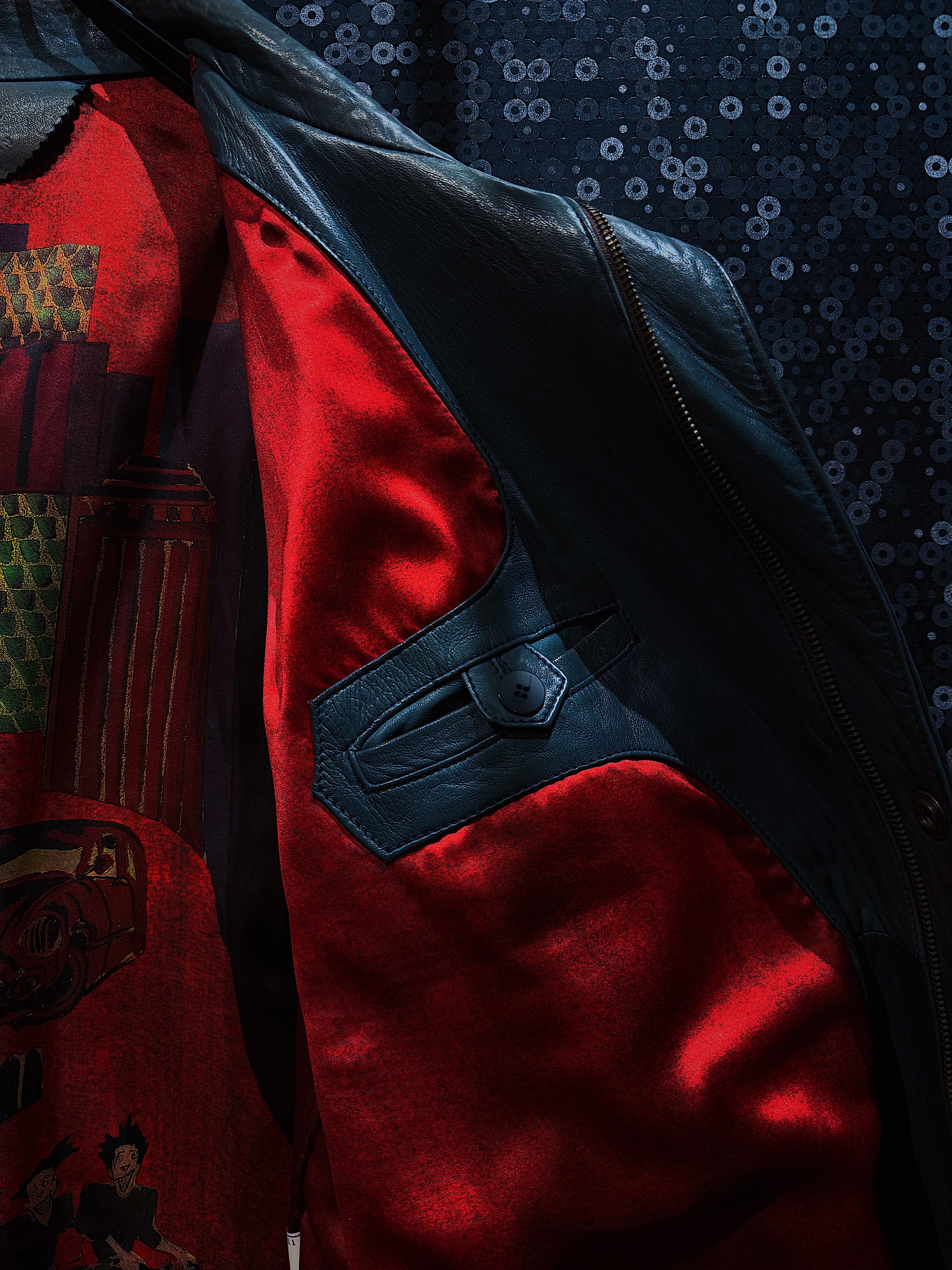 MUNPER" vintage deep red color pattern leather jacket