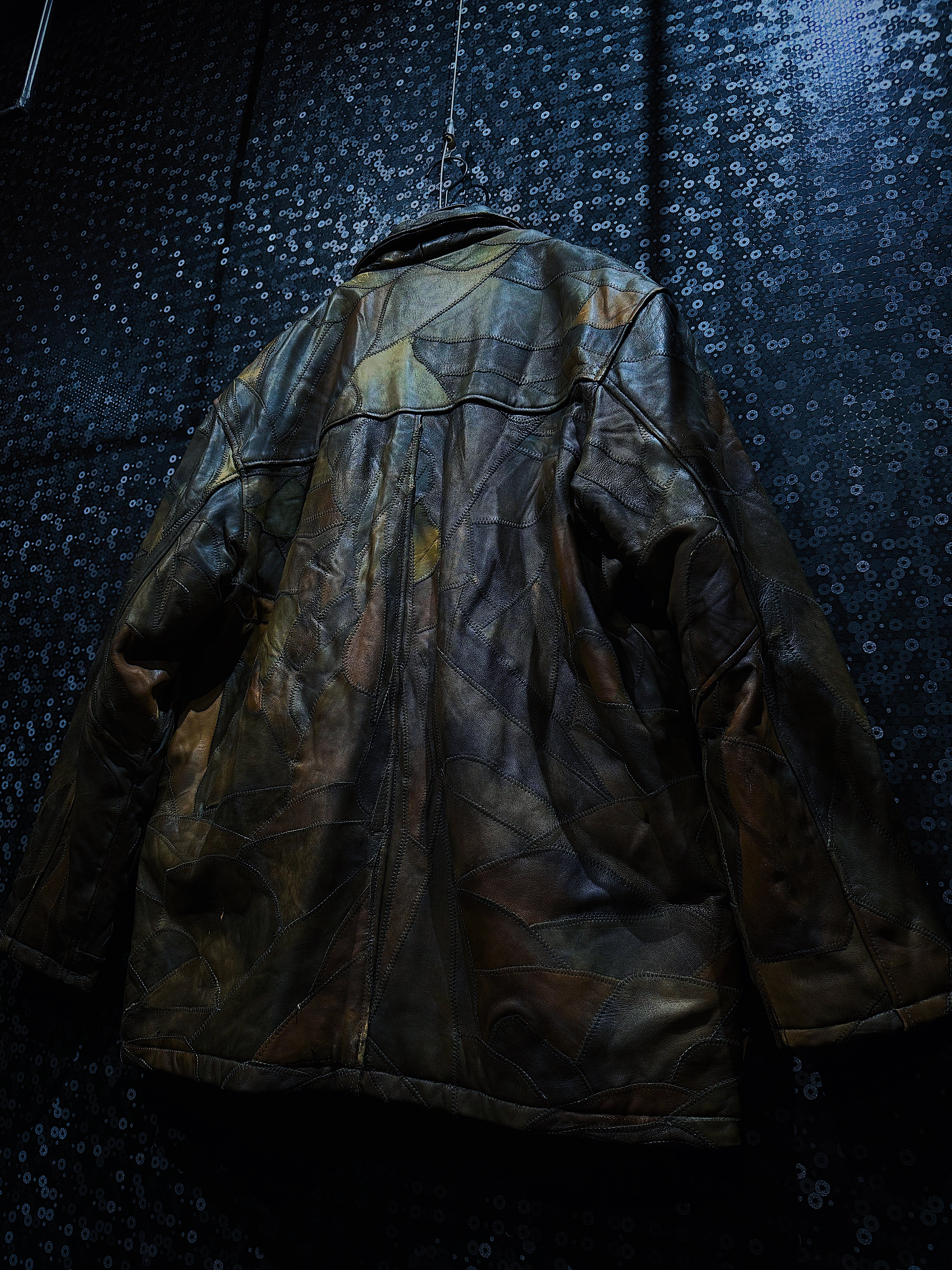 こちらは”LEGACY ORIGINAL LEATHERWEAR”によるヴィンテージパッチワークレザージャケットです。ジャケット全体に施されたパッチワーク風のディテールが、職人技の高さを感じさせる一着です。使い込まれた色褪せた質感は、時間をかけて形成された独特の風合いを生み出し、着用者に貫禄と深みのある印象を与えます。