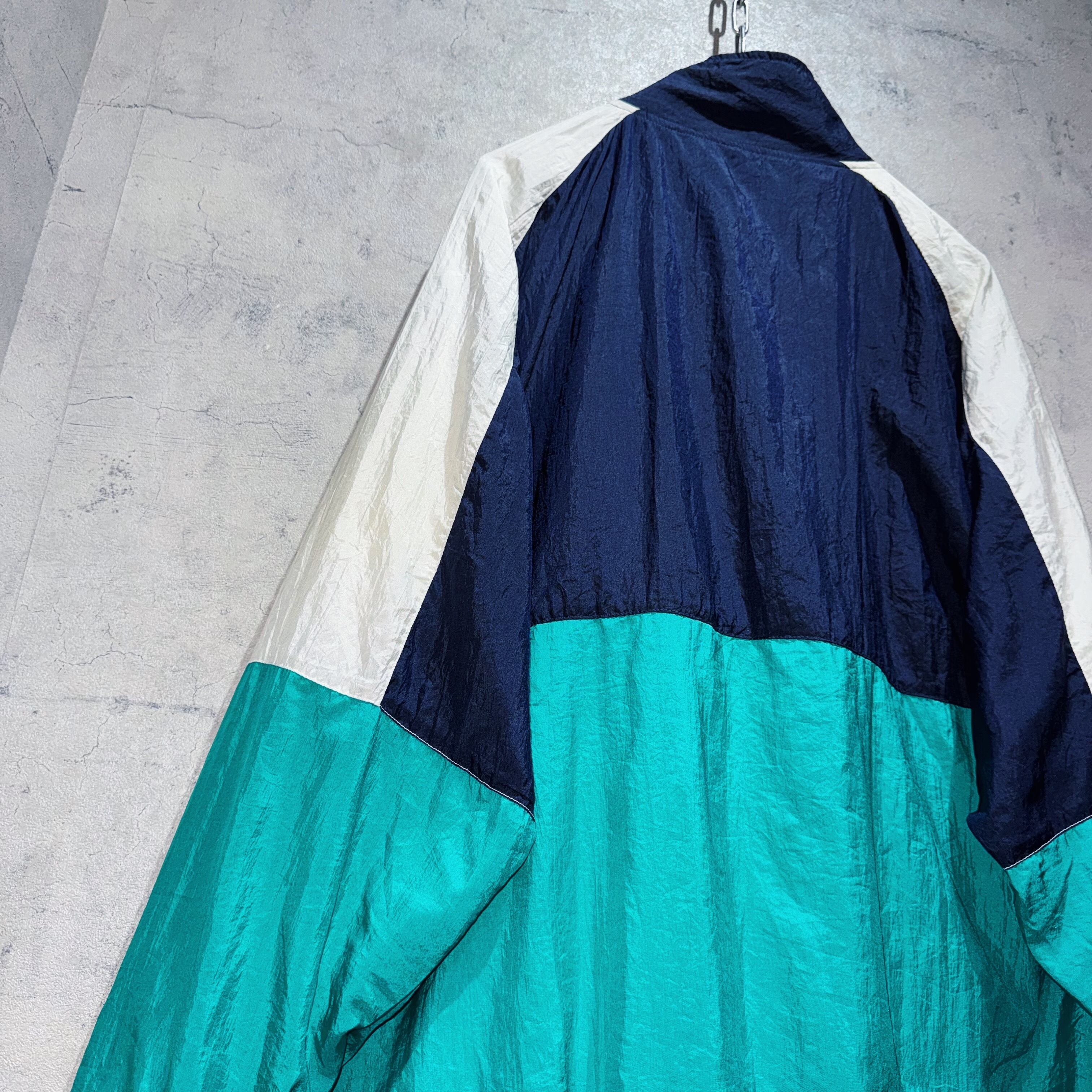 美しいティファニーブルーとホワイト・ネイビーのカラーリングと配色バランスが素晴らしいナイロンジャケット。ナイロン特有の程よい光沢も相まって高級感のある仕上がりに。