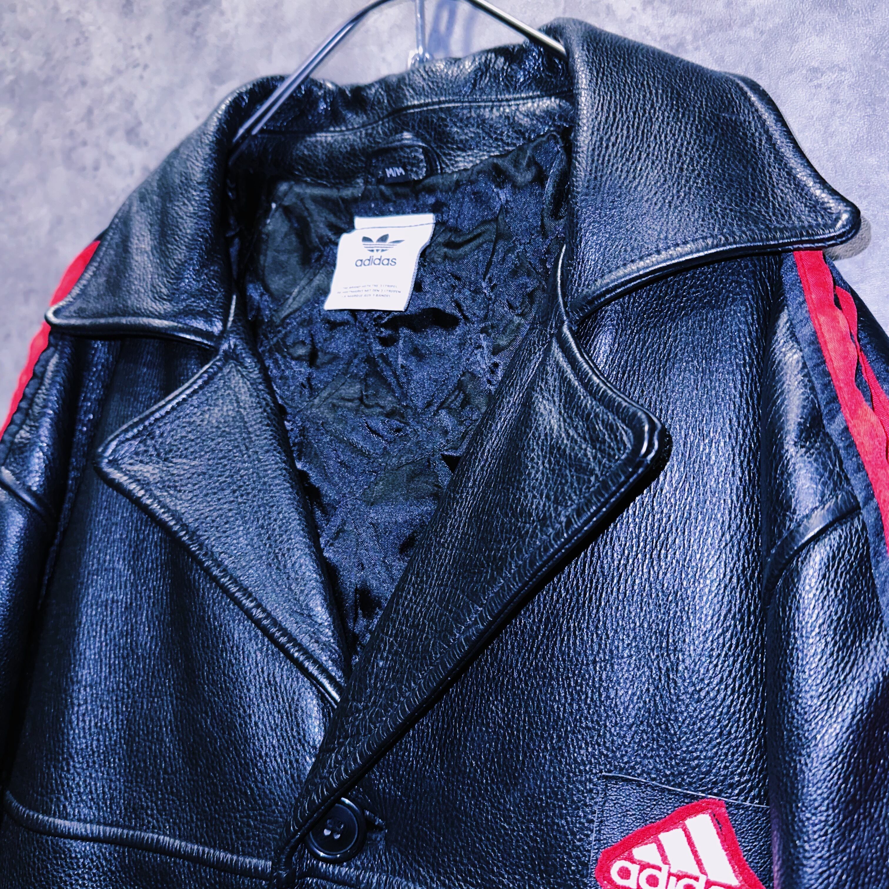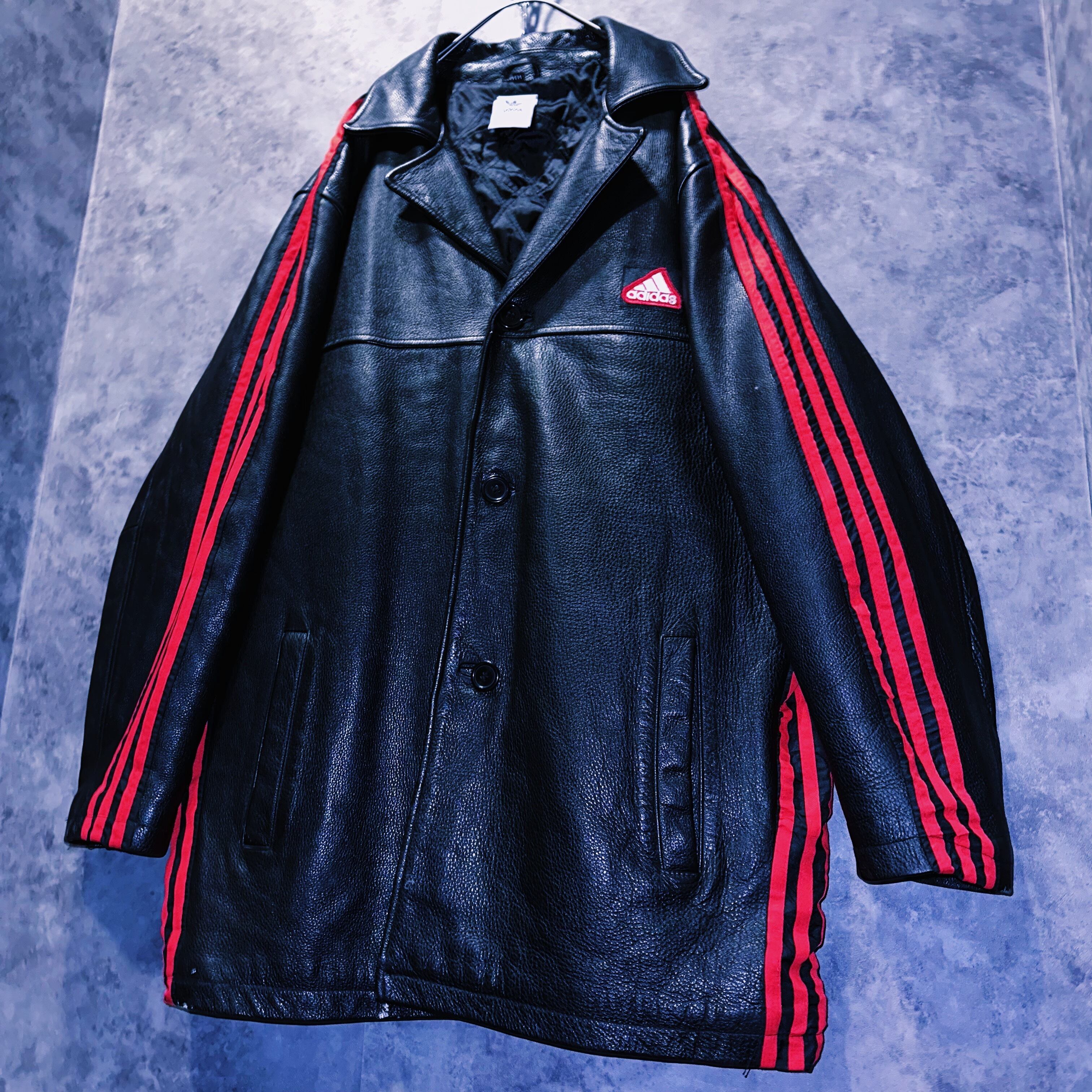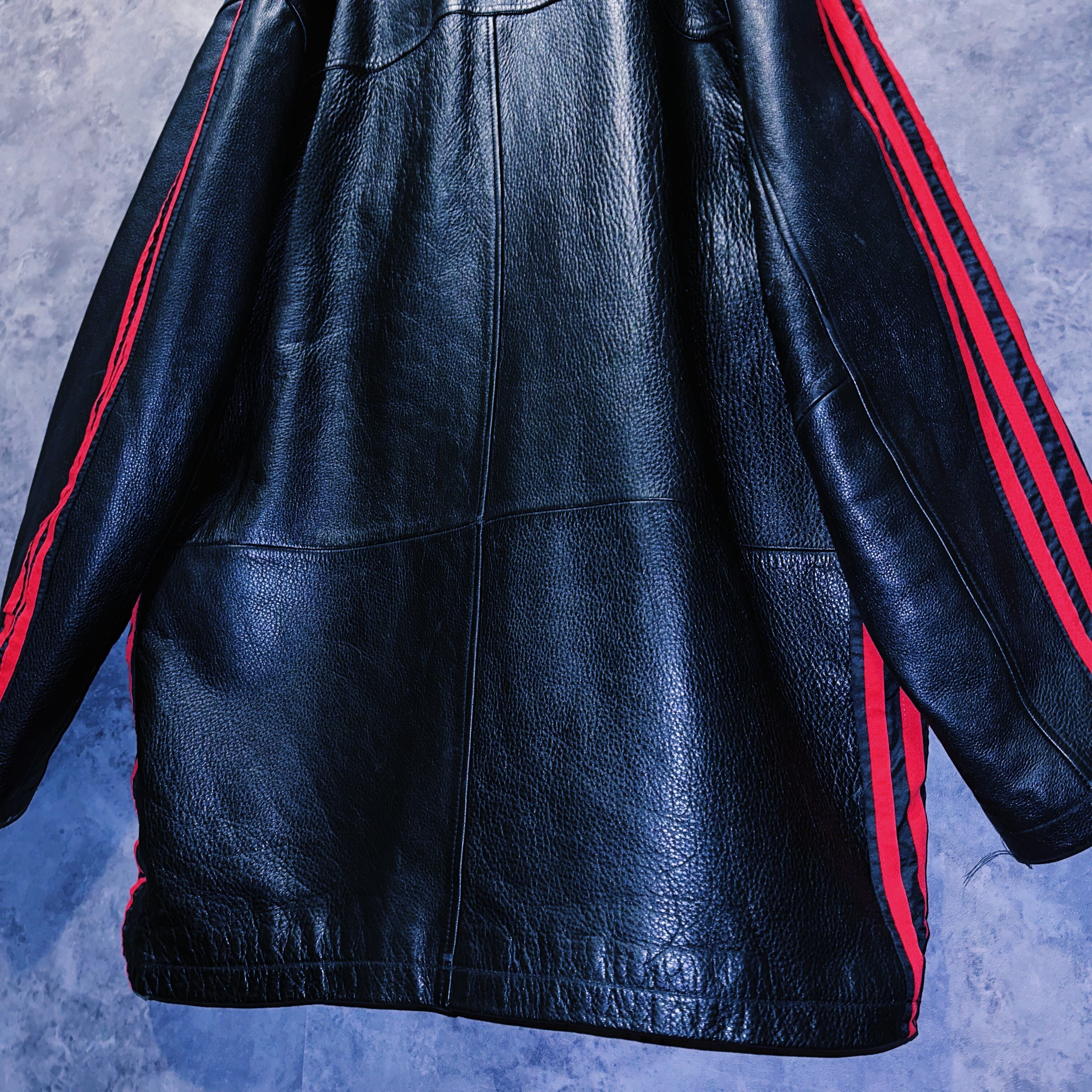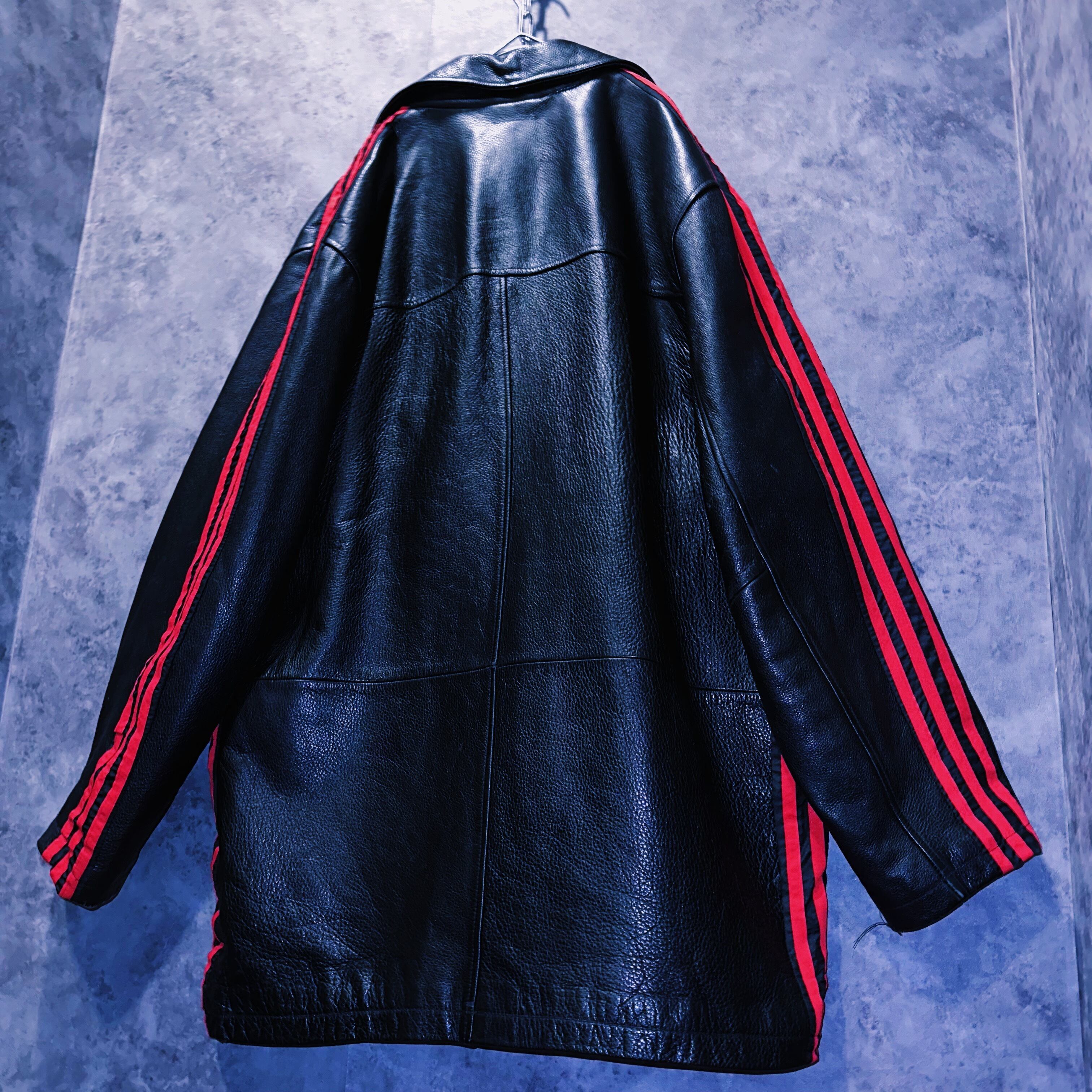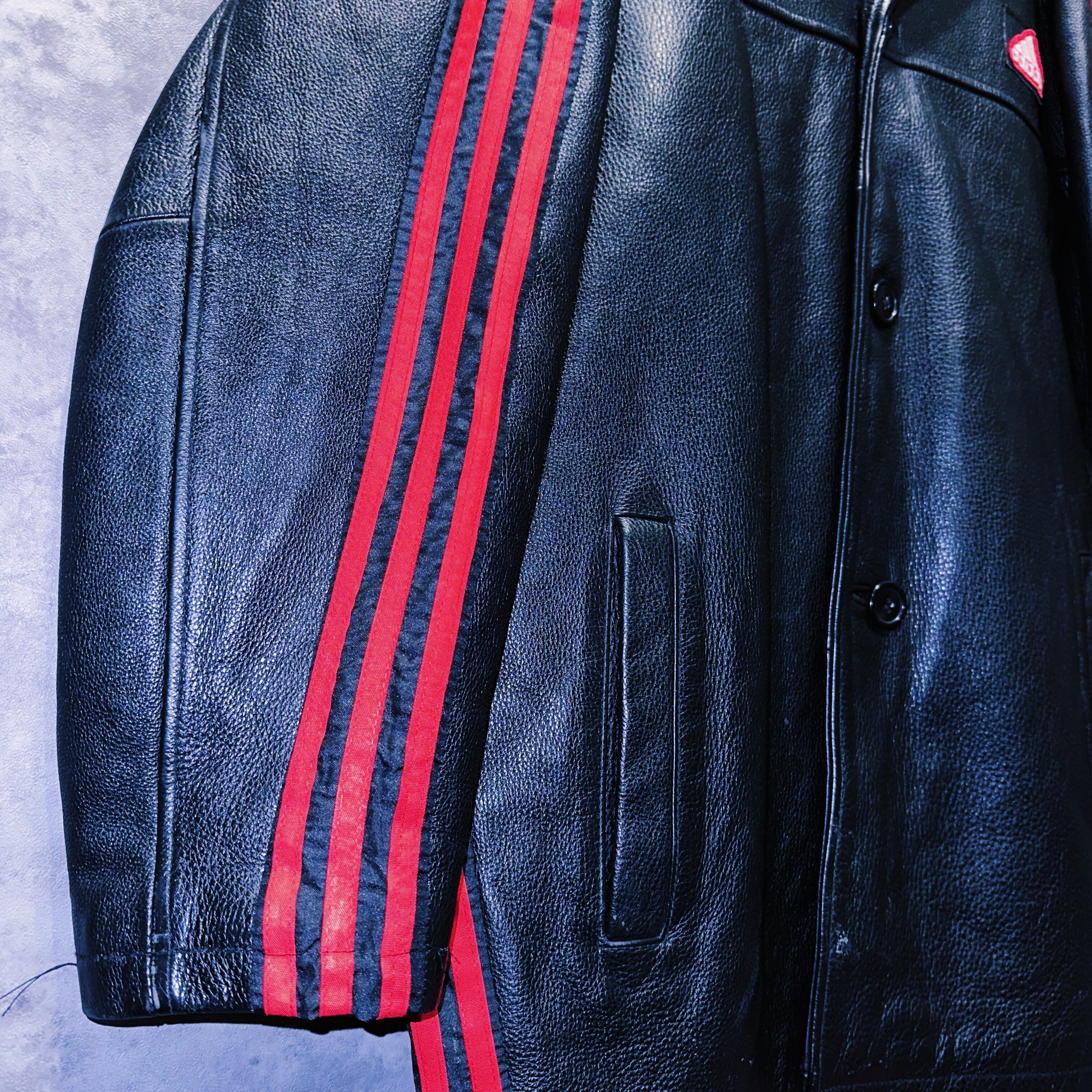 special "original re:make" RED color three stripes design vintage leather jacket three stripe edition