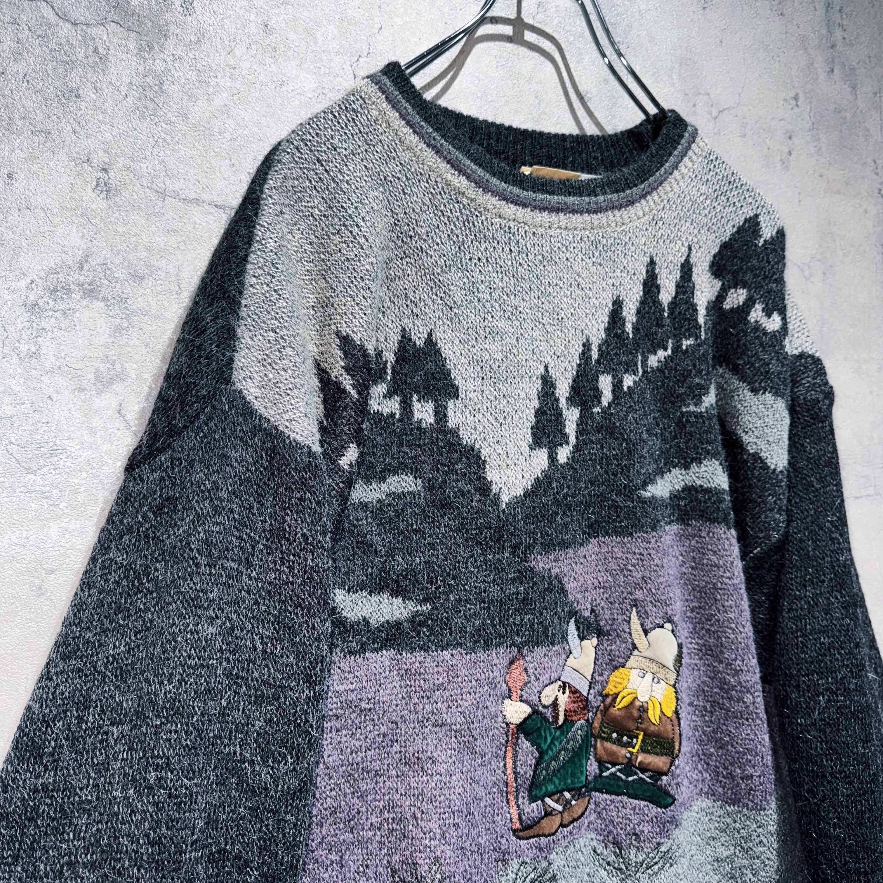 ヴィンテージキャラクターエンブロイダリーデザインプルオーバーニット