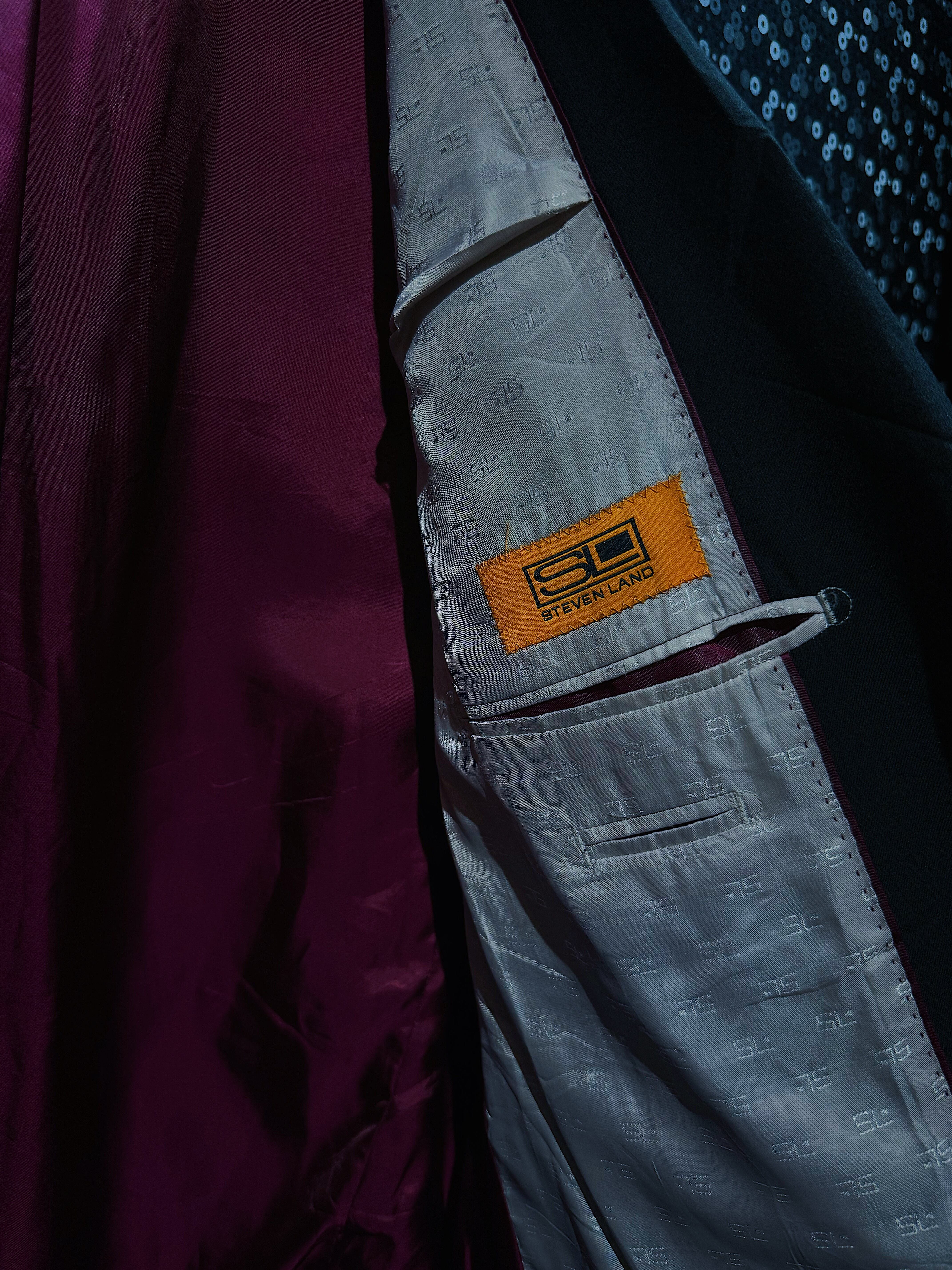 古着を再構築するというサステナブルなアプローチを取り入れた作品です。元々クラシックなシルエットを持つジャケットに、再倖築によって新たな生命が吹き込まれています。