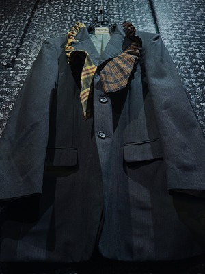 "再倖築"vintage necktie sunflower docking tailored jacket