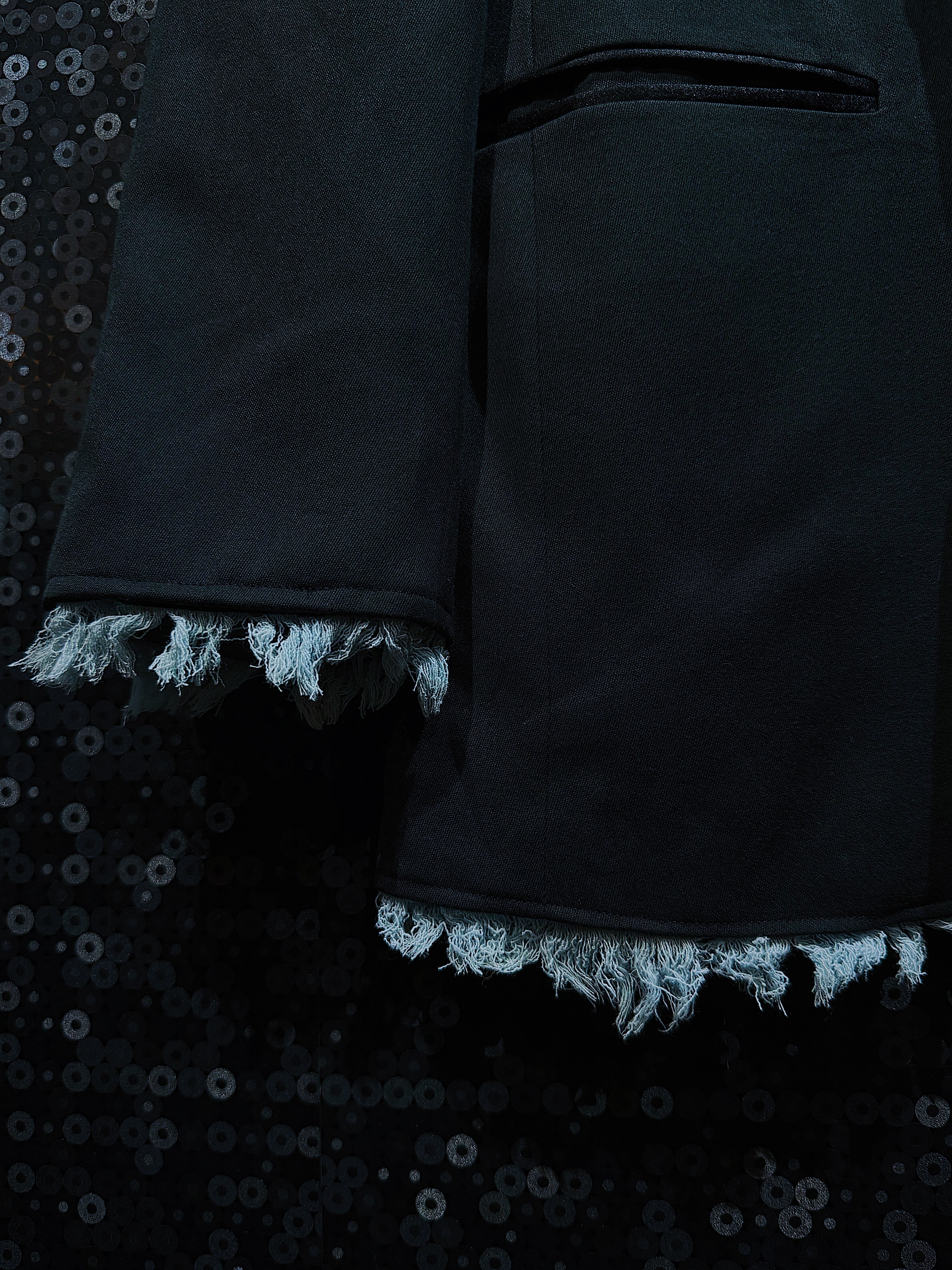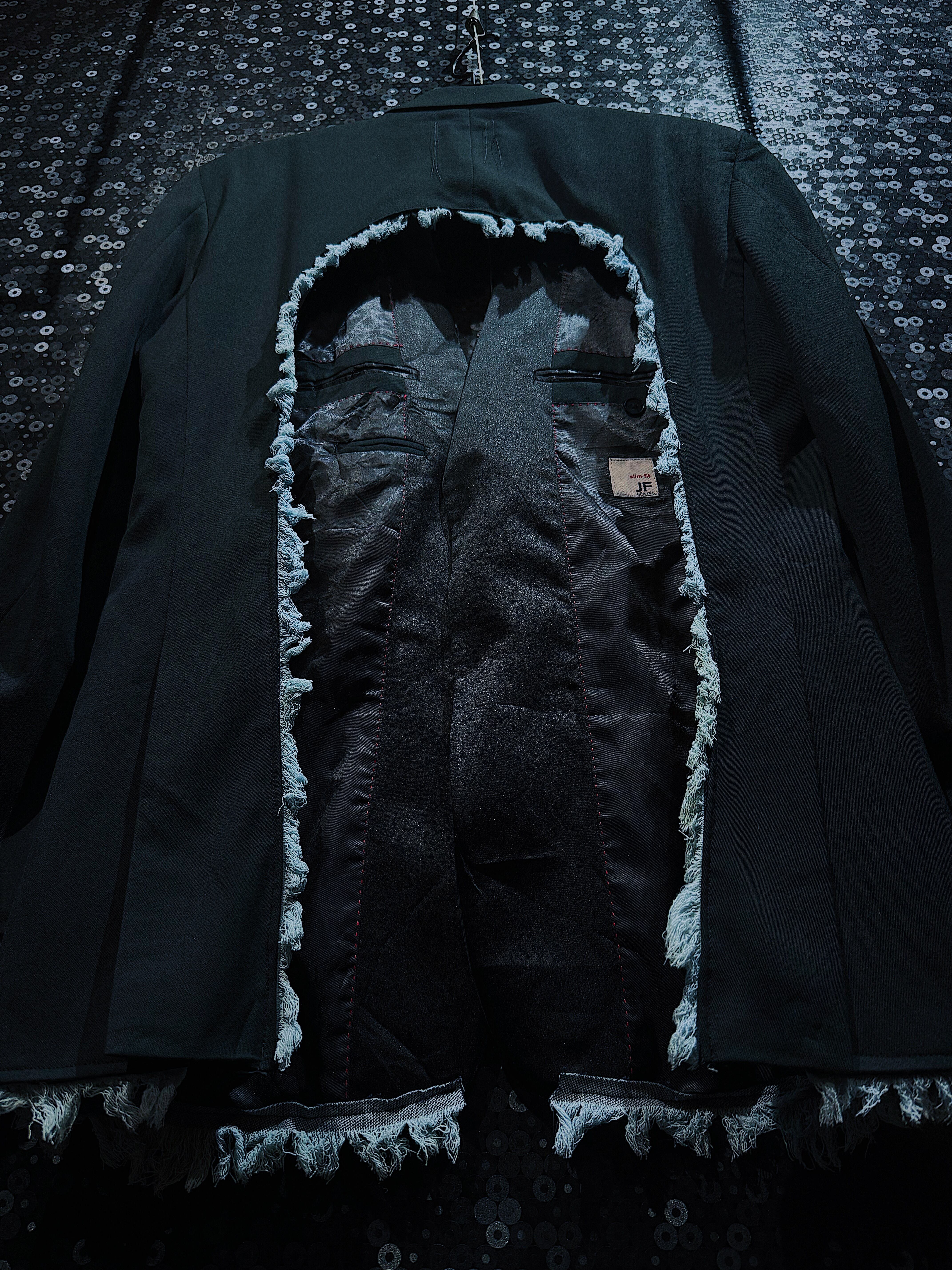 "再倖築"black back cut fringe tailored jacket