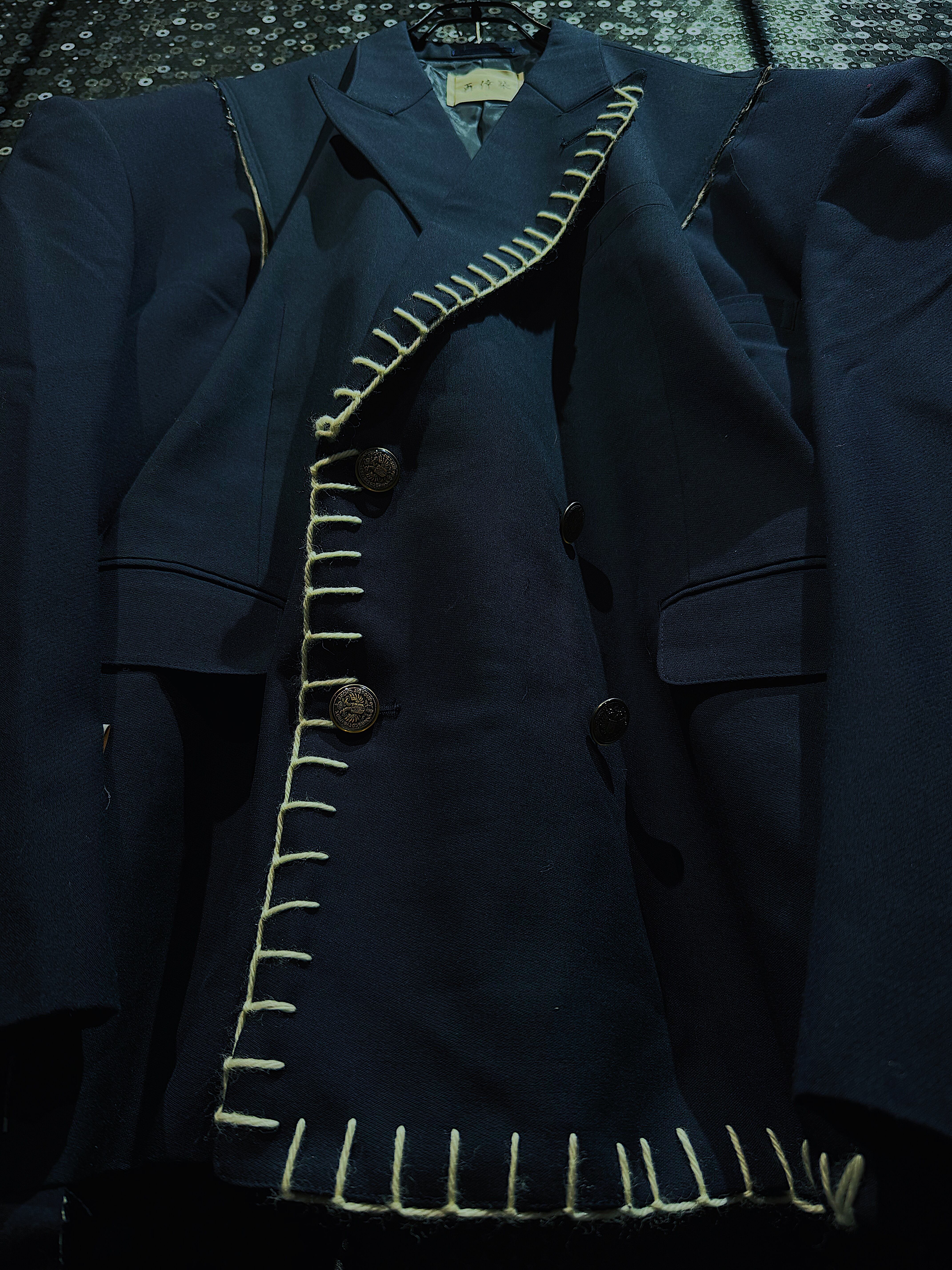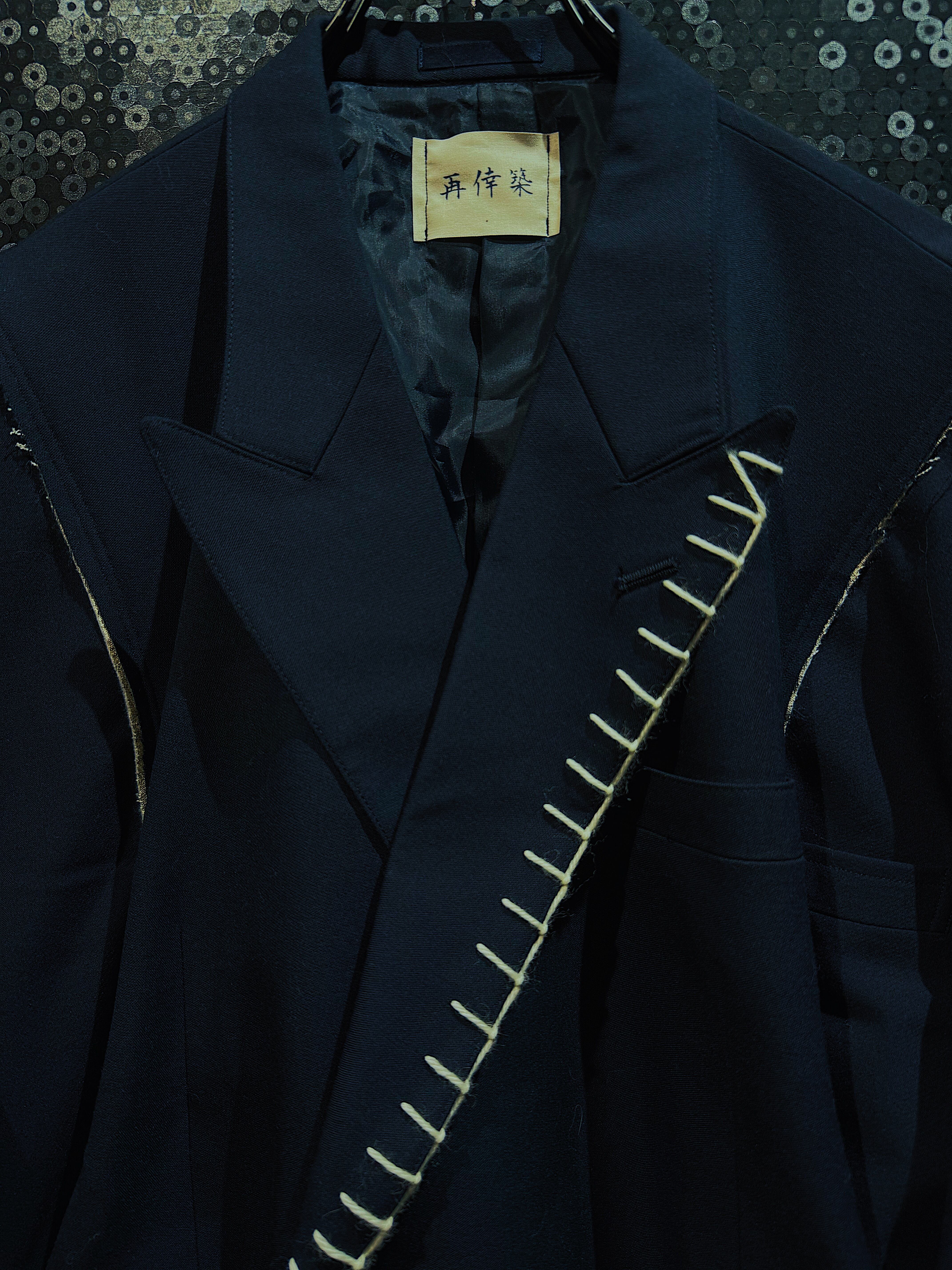 "再倖築"vintage double docking stitch pattern tailored jacket