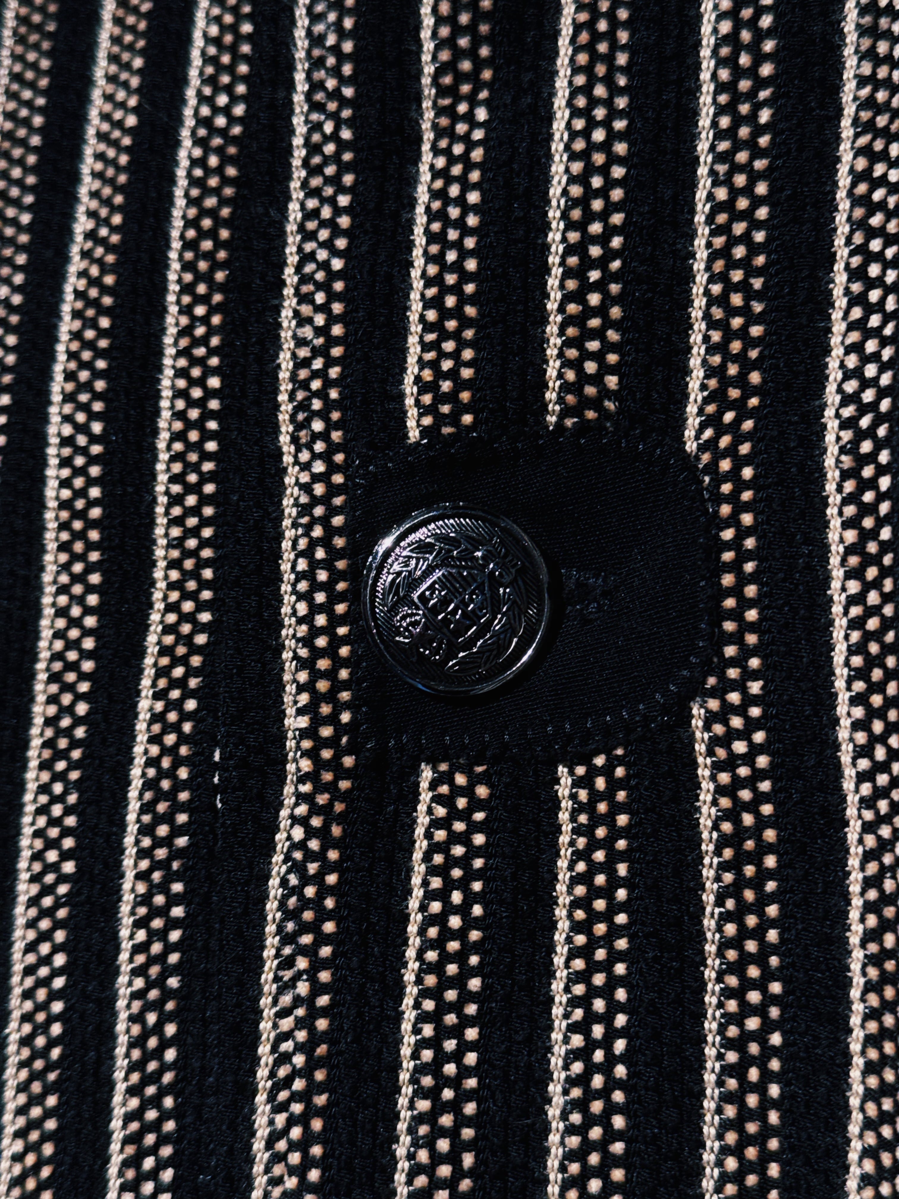 表はストライプ模様に編まれたニット素材がベース、よく見るとかなり緻密に作り込まれておりデザイナーの拘りを感じることが出来る逸品。
