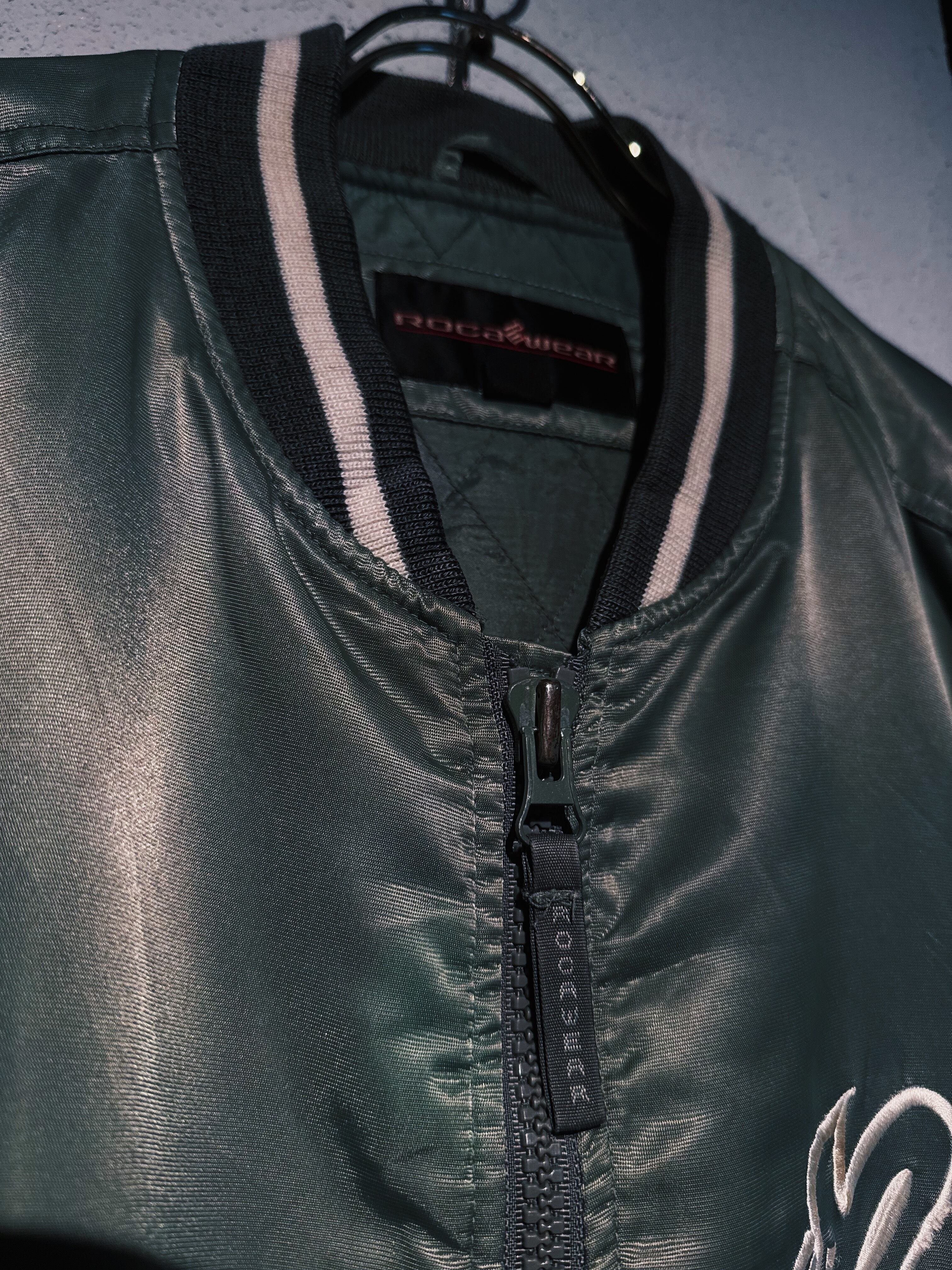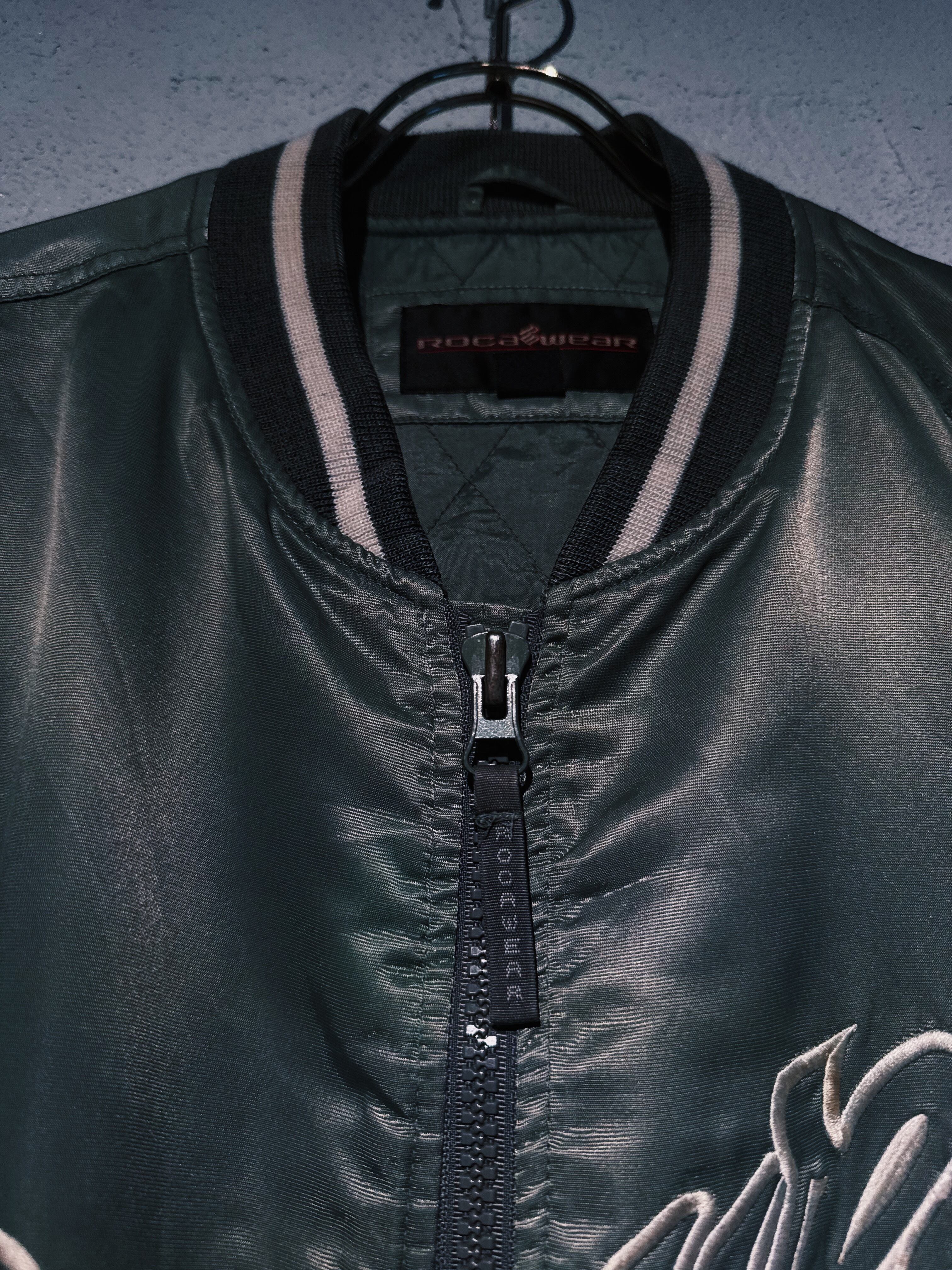 90's vintage "Roca wear" glaysh green color MA-1 jacket