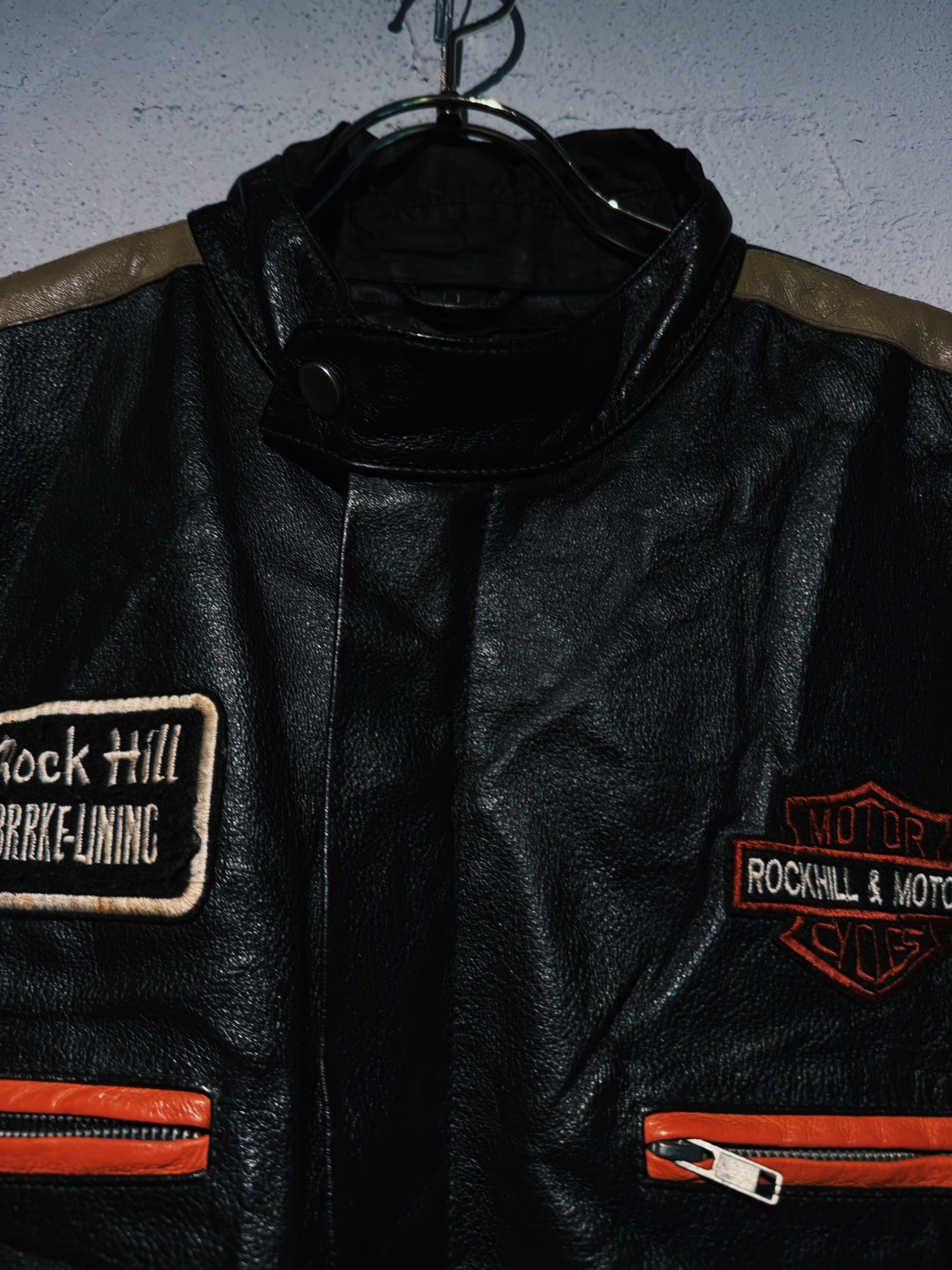 ヴィンテージHarley-Davidsonエトセトラ.パッチワークデザインレザーレーシングジャケット