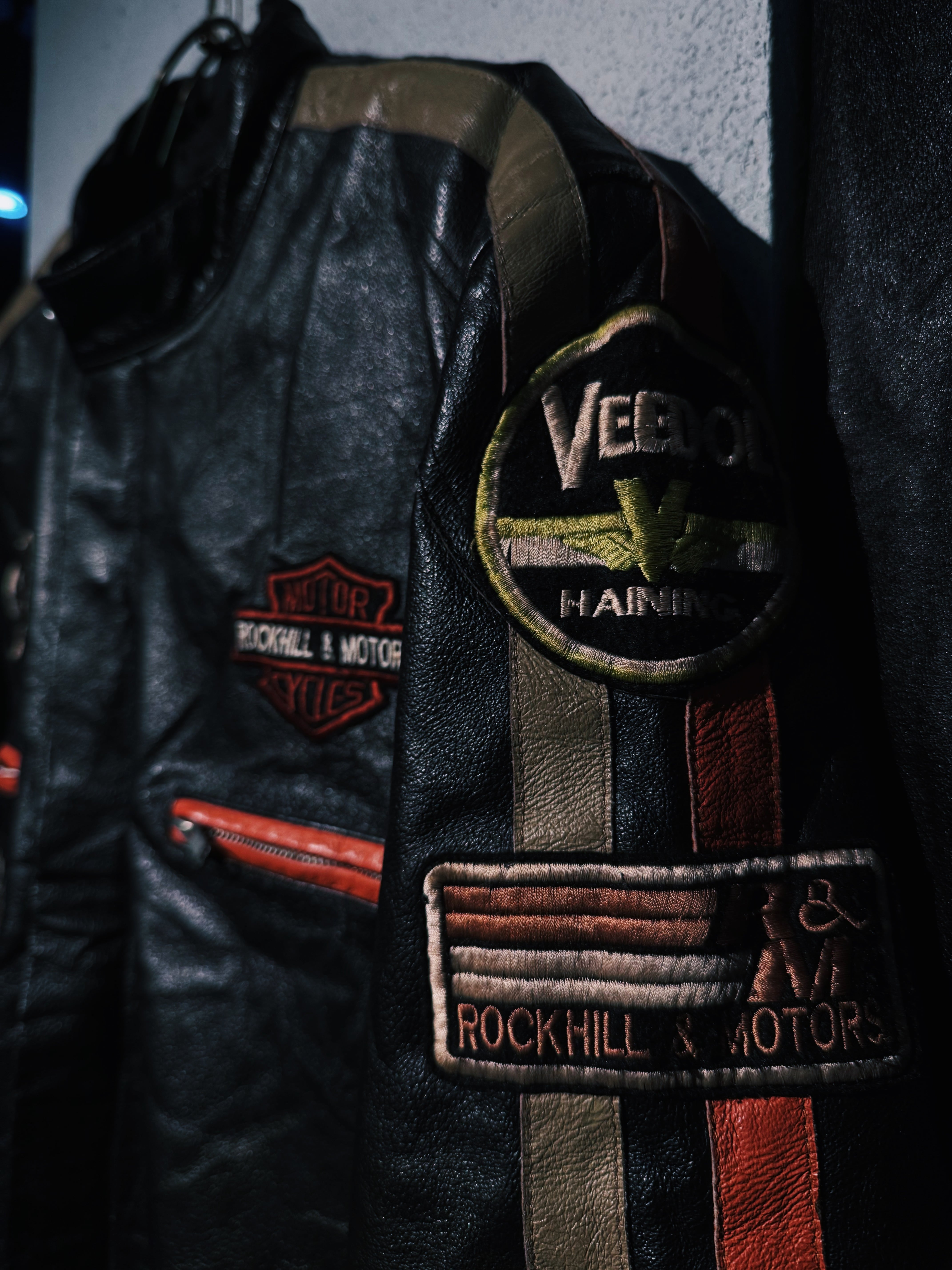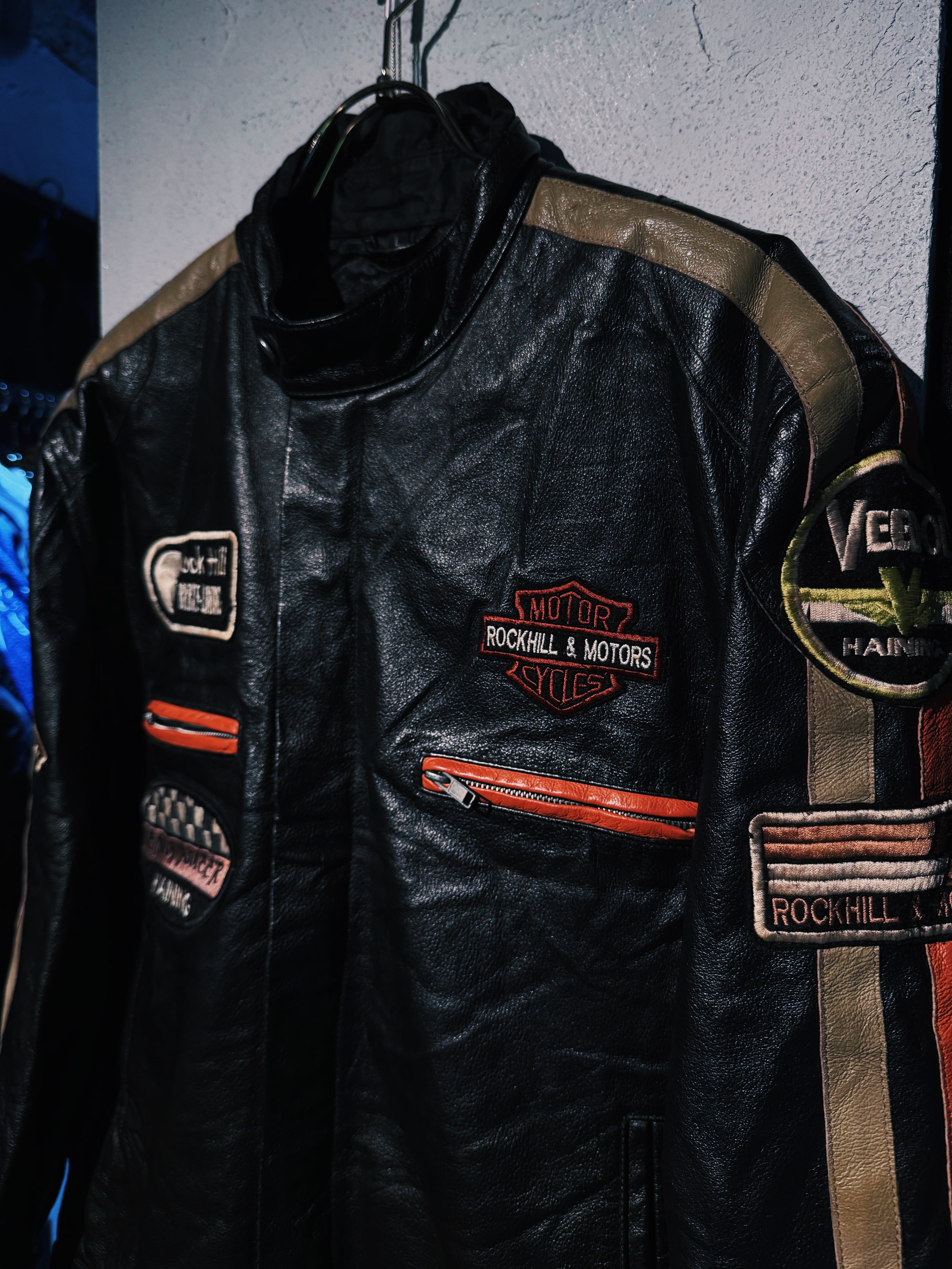 vintage Harley-Davidson etc. company sponsor patchwork design leather racing jacket