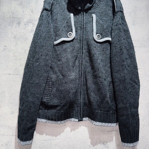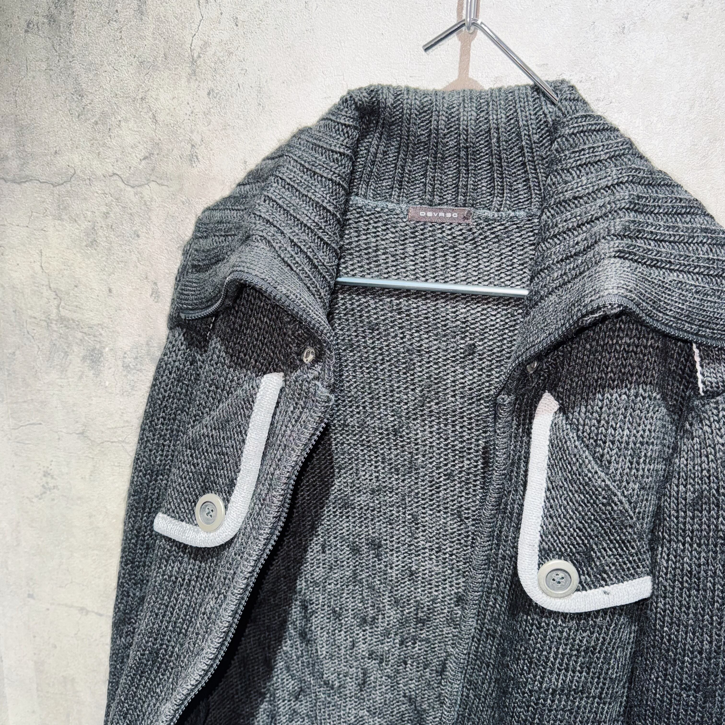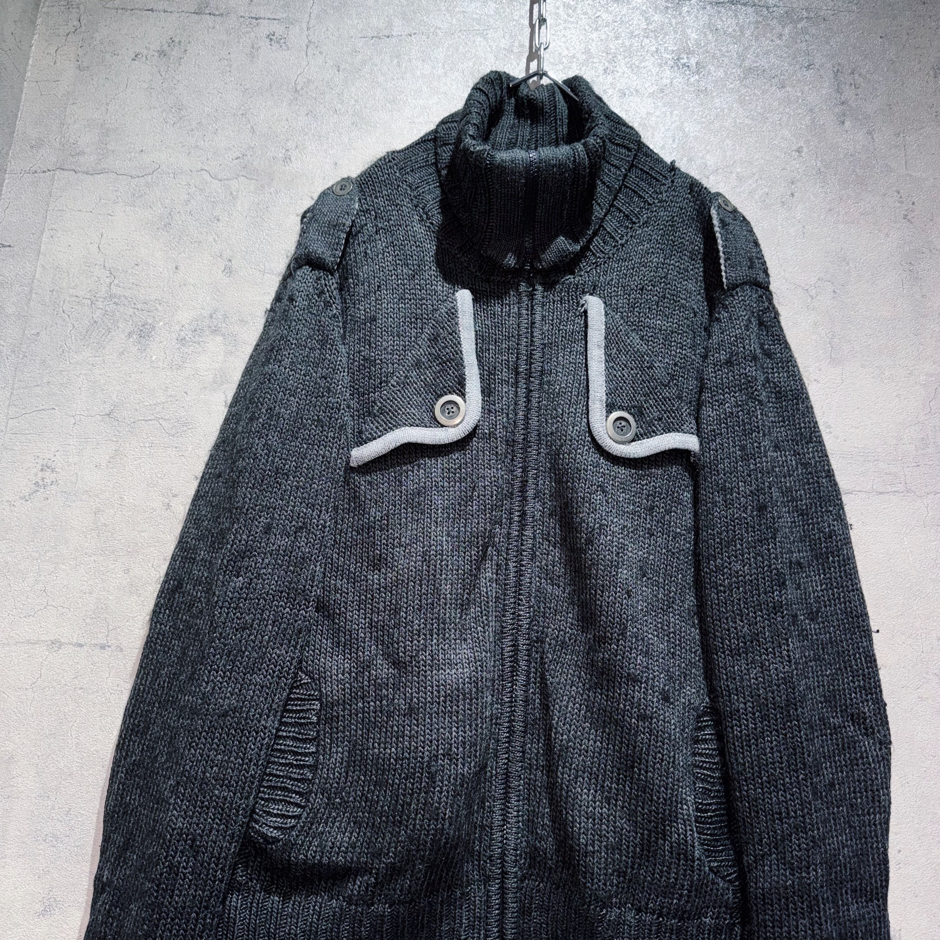 ヴィンテージミリタリーディテールチャコールグレードライバーズニット