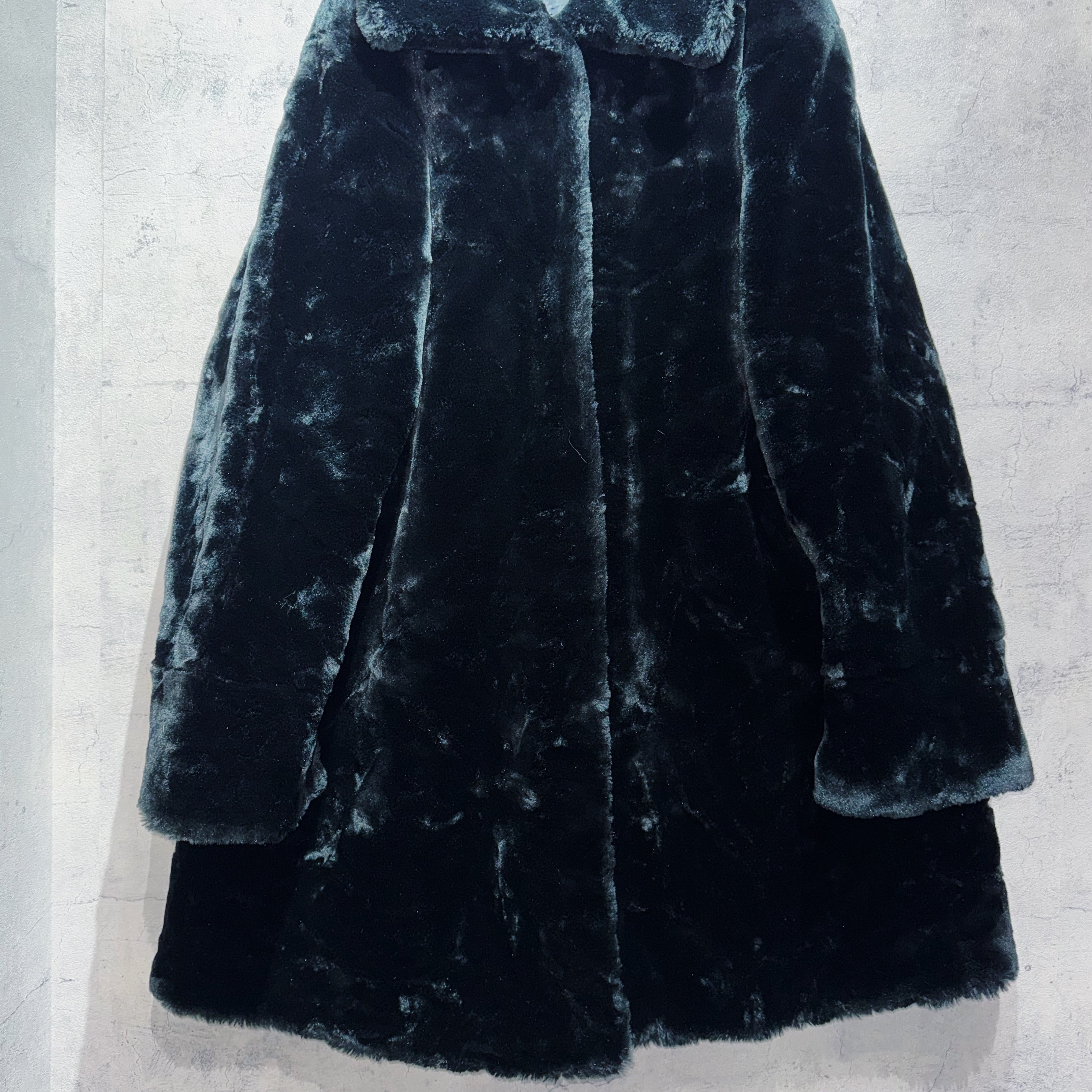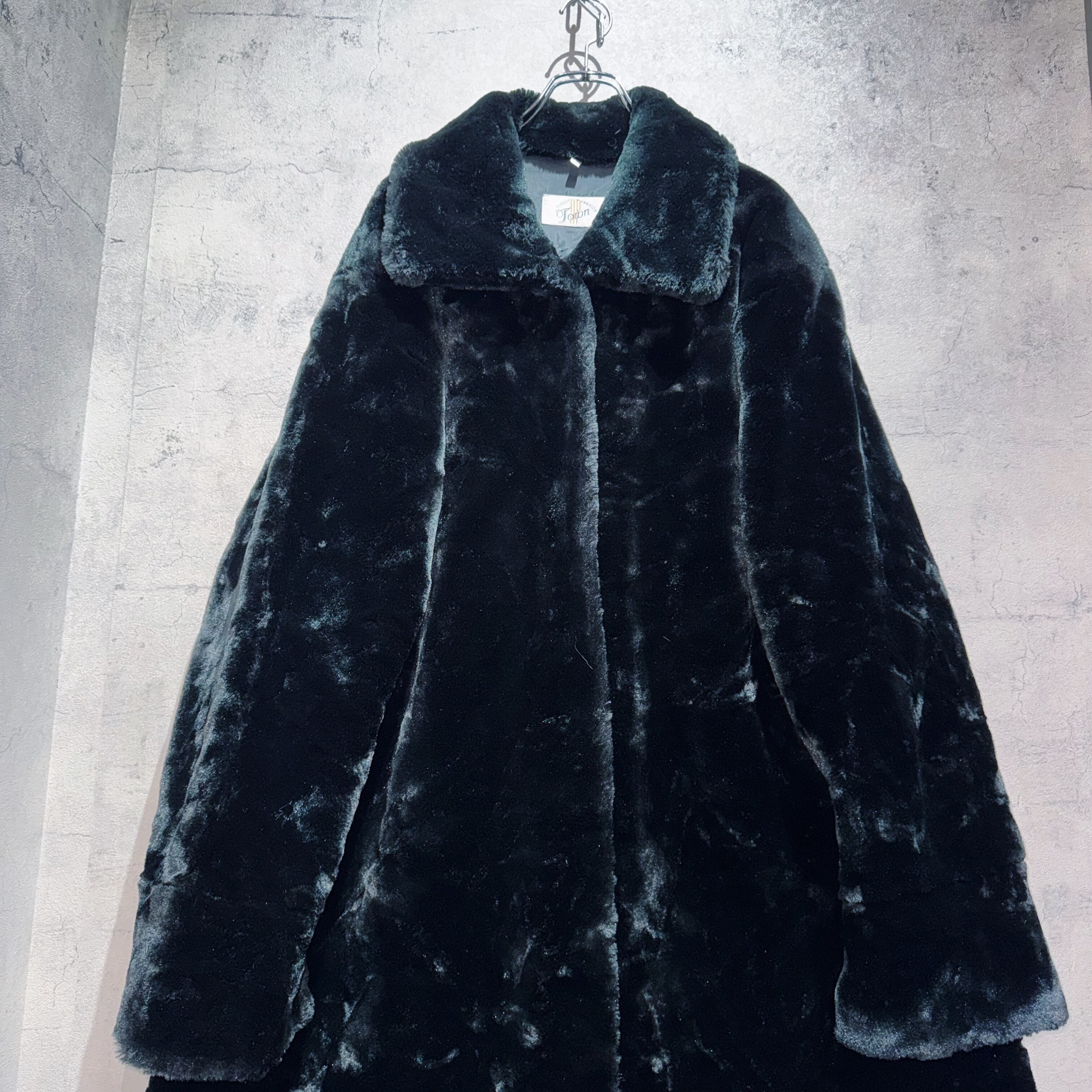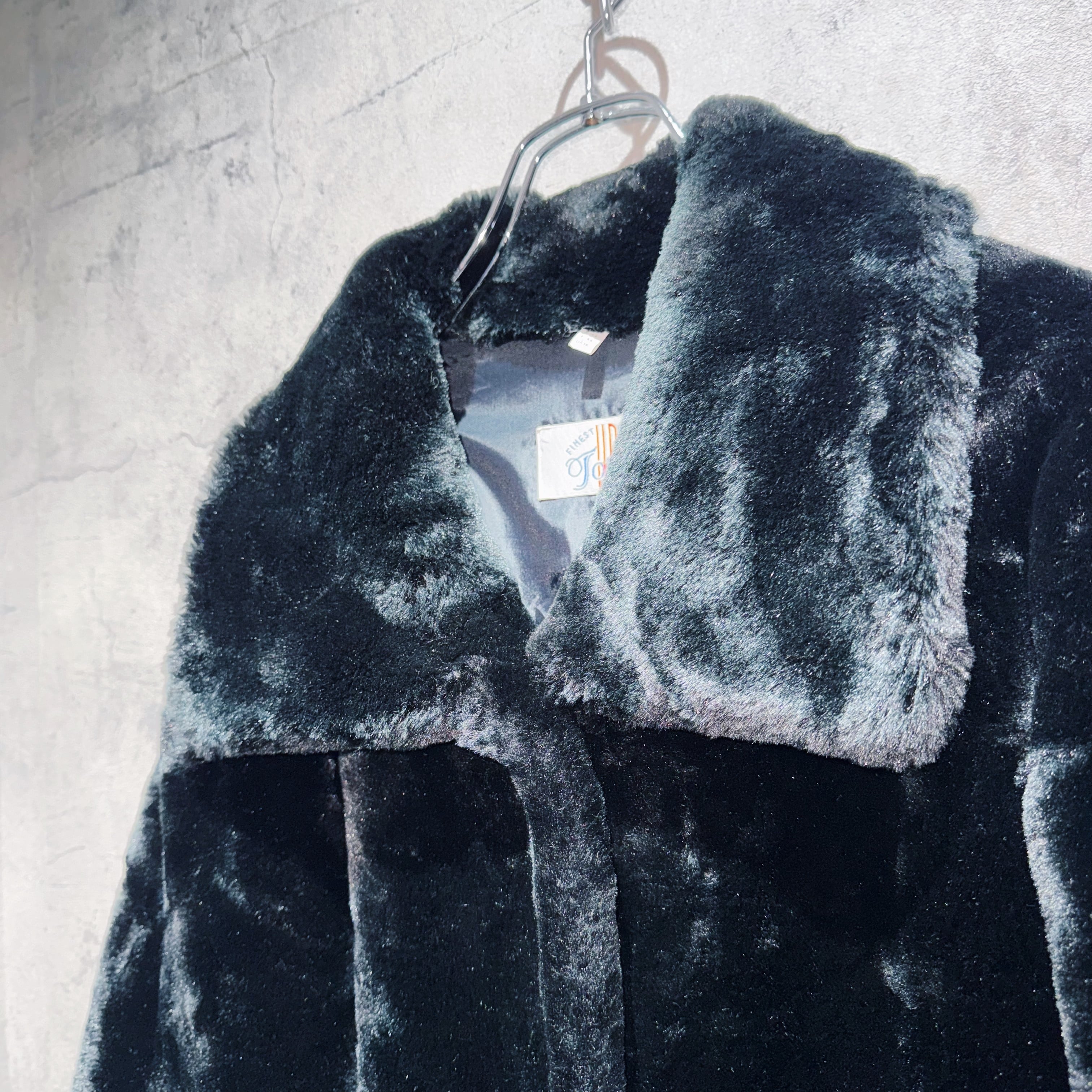 ヴィンテージヘビーブラックカラーフェイクファーコート