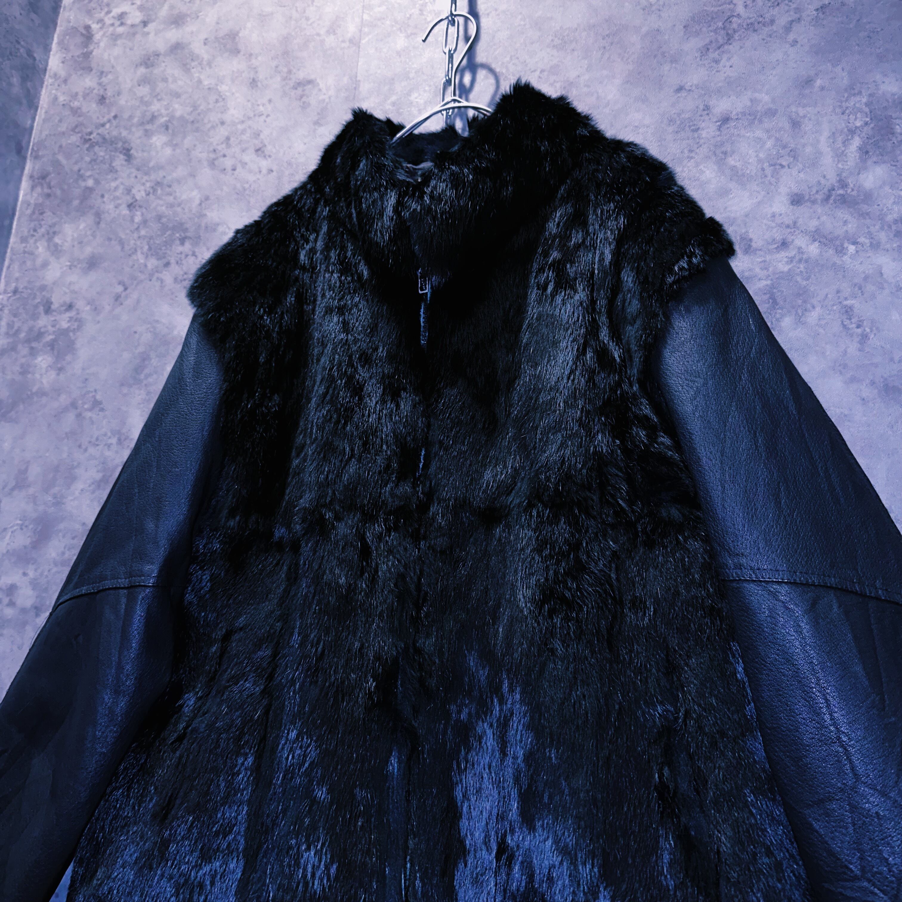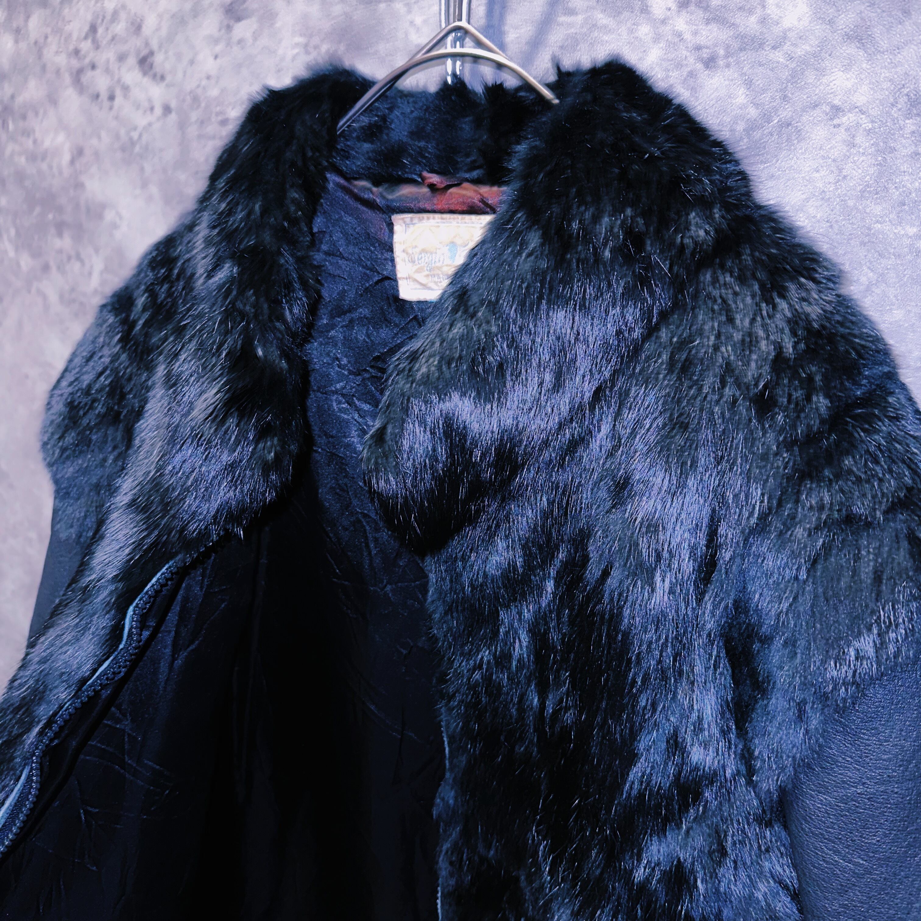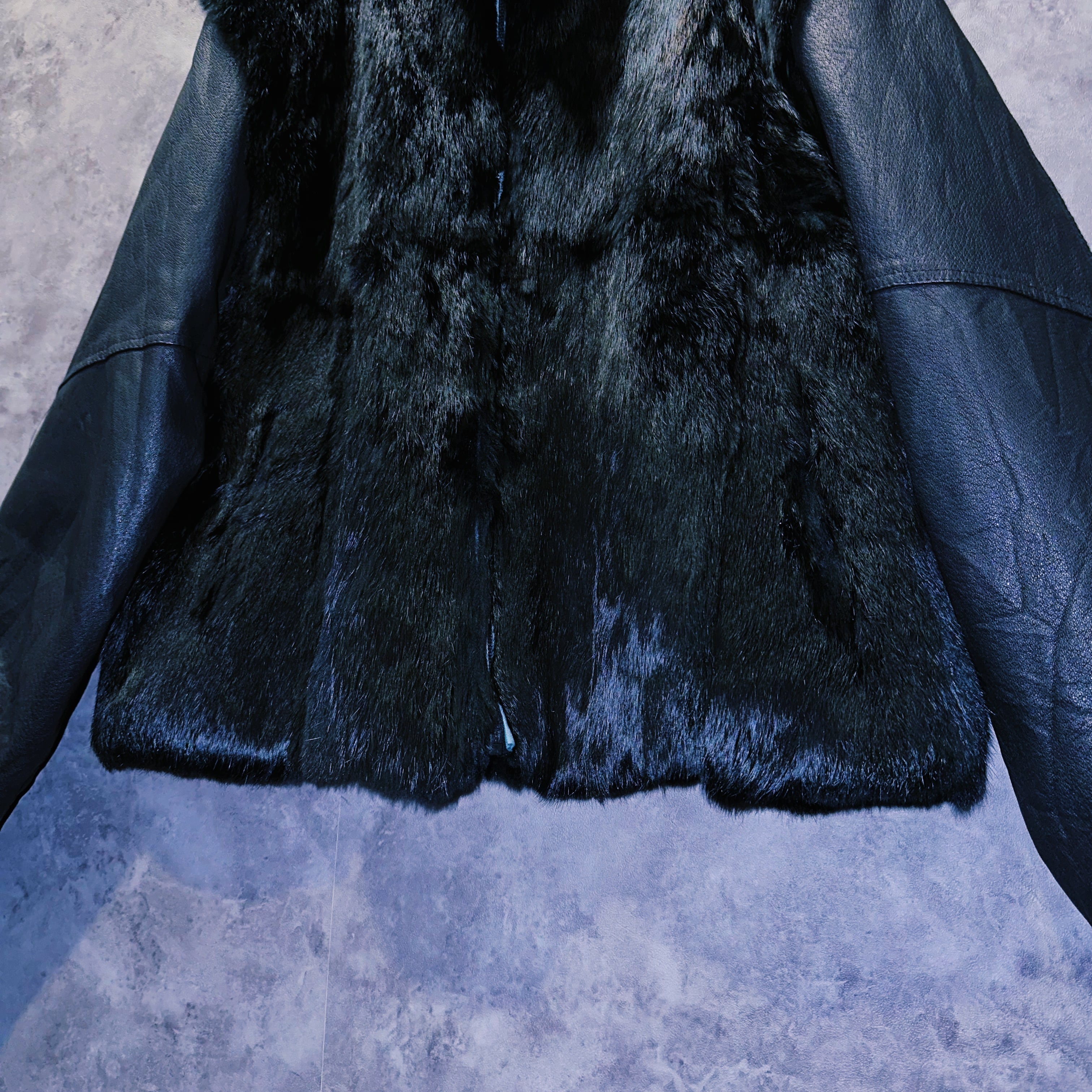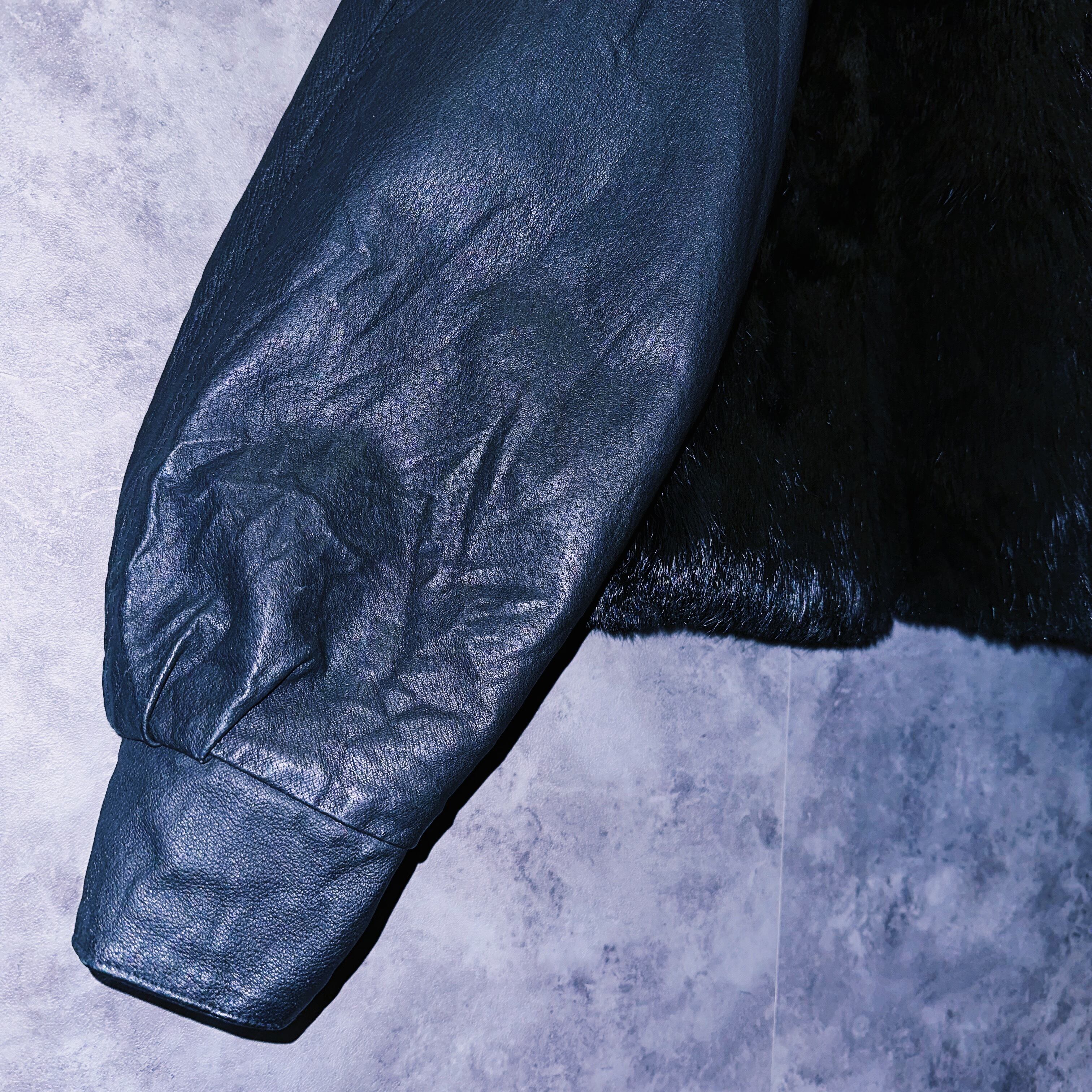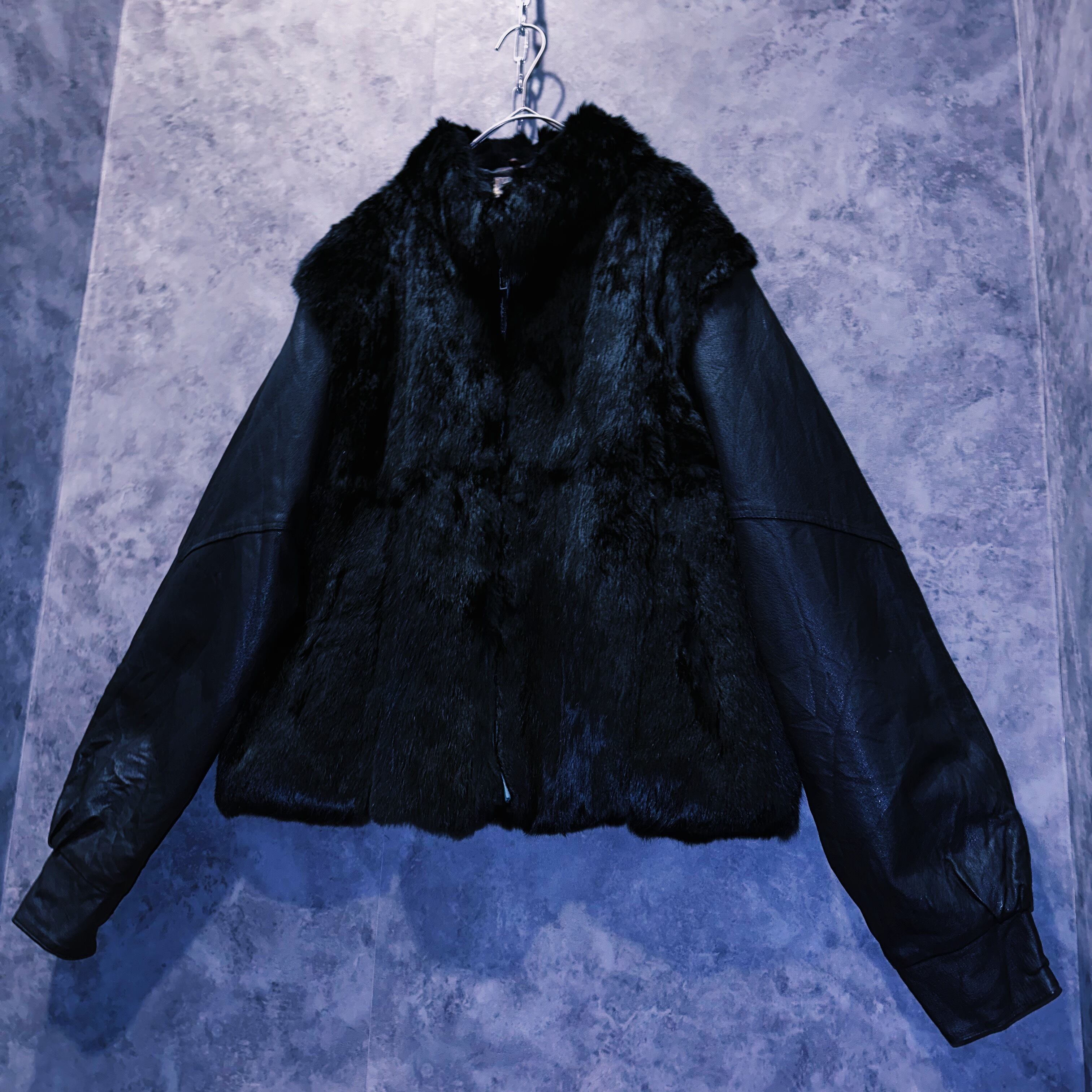ヴィンテージブラックレザー×ファースウィッチングデザインショートジャケット