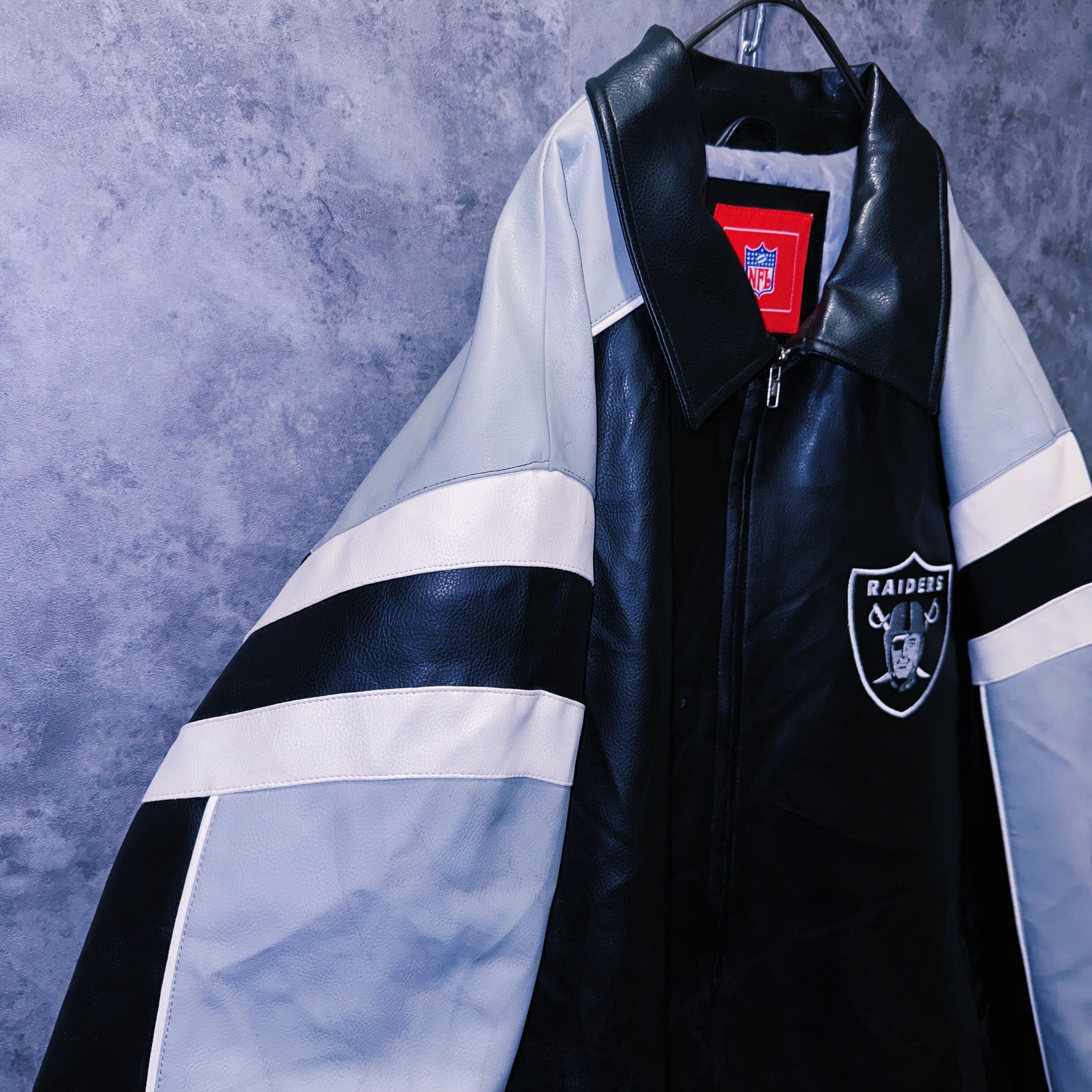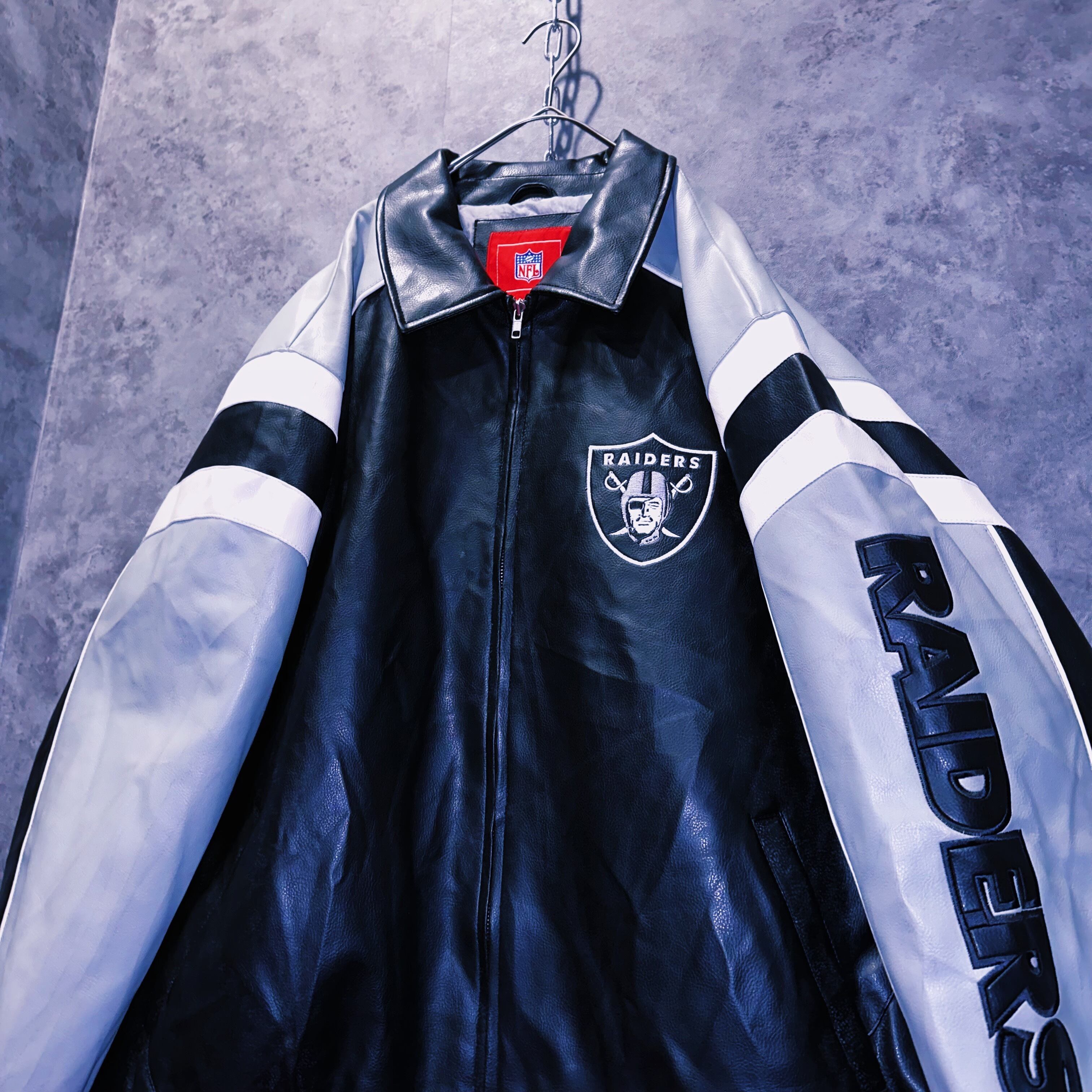 【 doppio】90's vintage NFL "RAIDERS" full leather stadium jacket