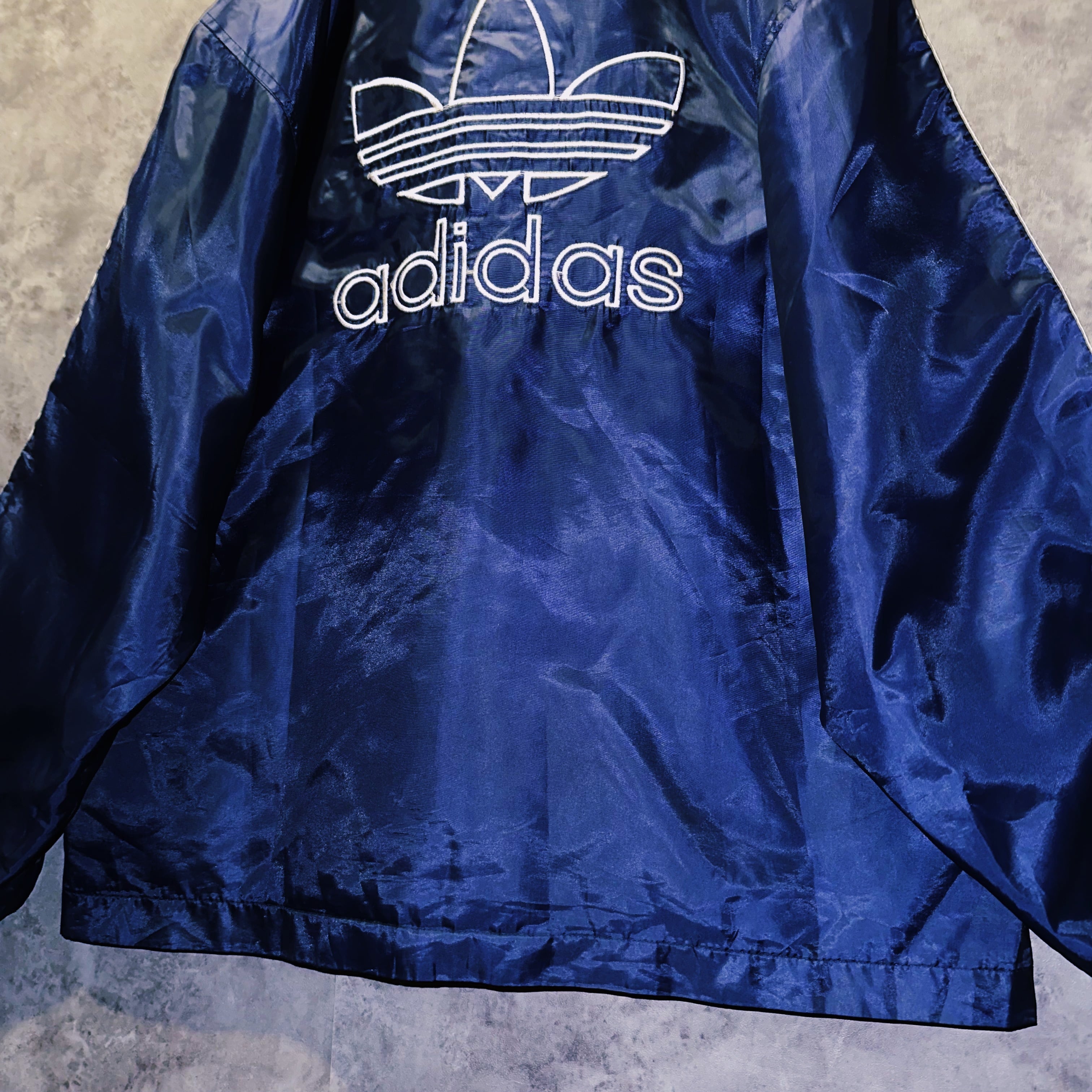 "adidas"のシグネチャーである3ストライプスがスリーブラインに、バックにはデカデカとトレフォイルロゴが刺繍され存在感を演出。