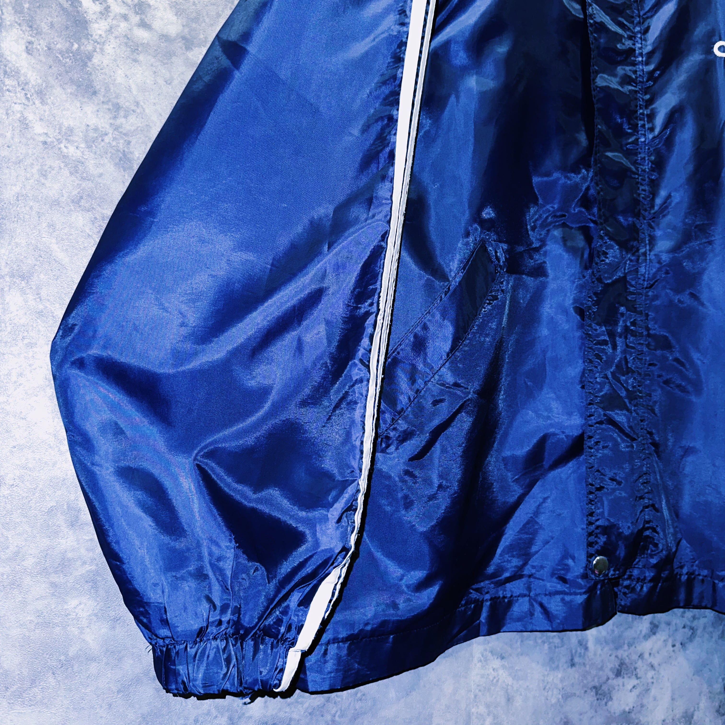 洗練された品格のあるミッドナイトブルーとナイロン特有の光沢感が相まって高級感のある仕上がりになったトラックジャケット。