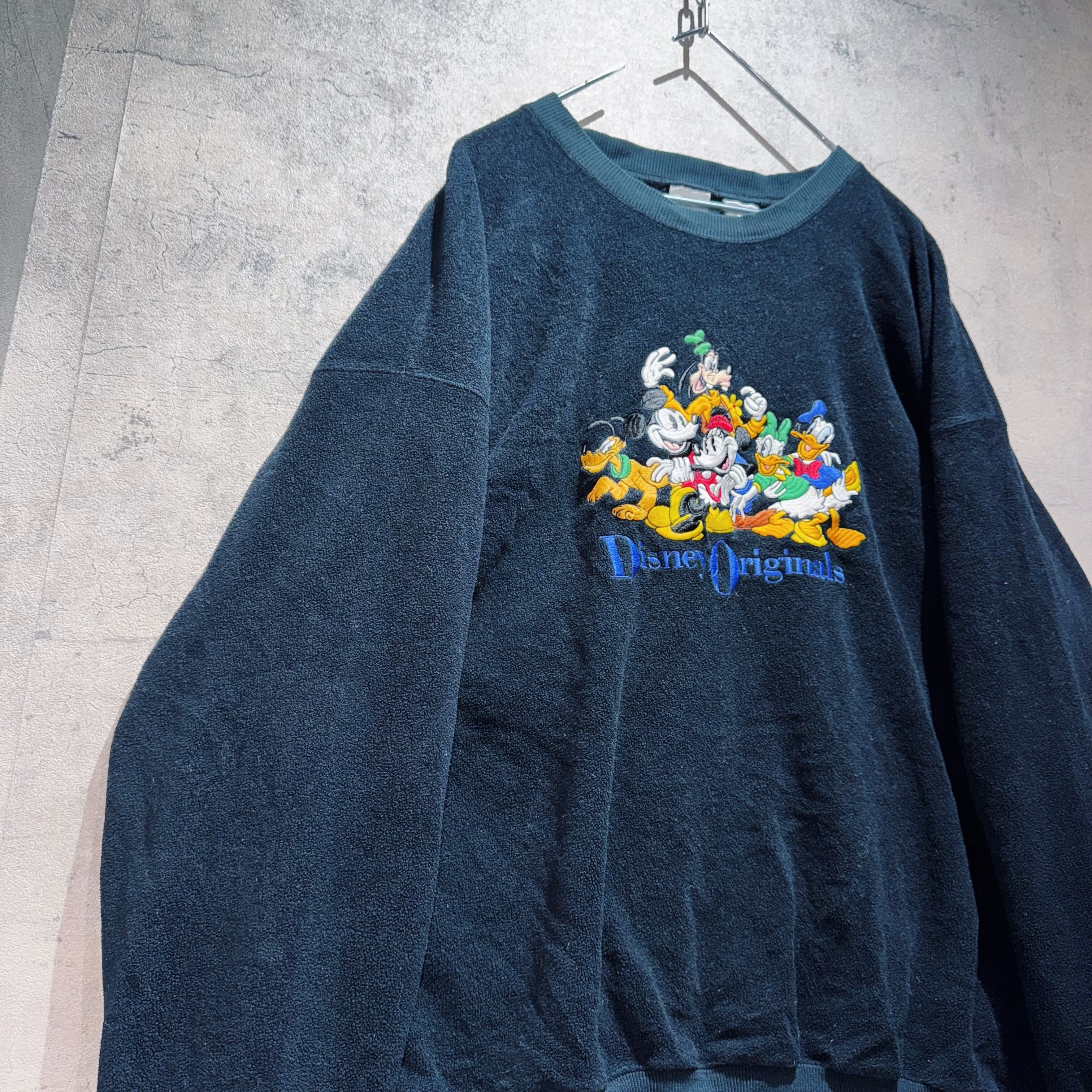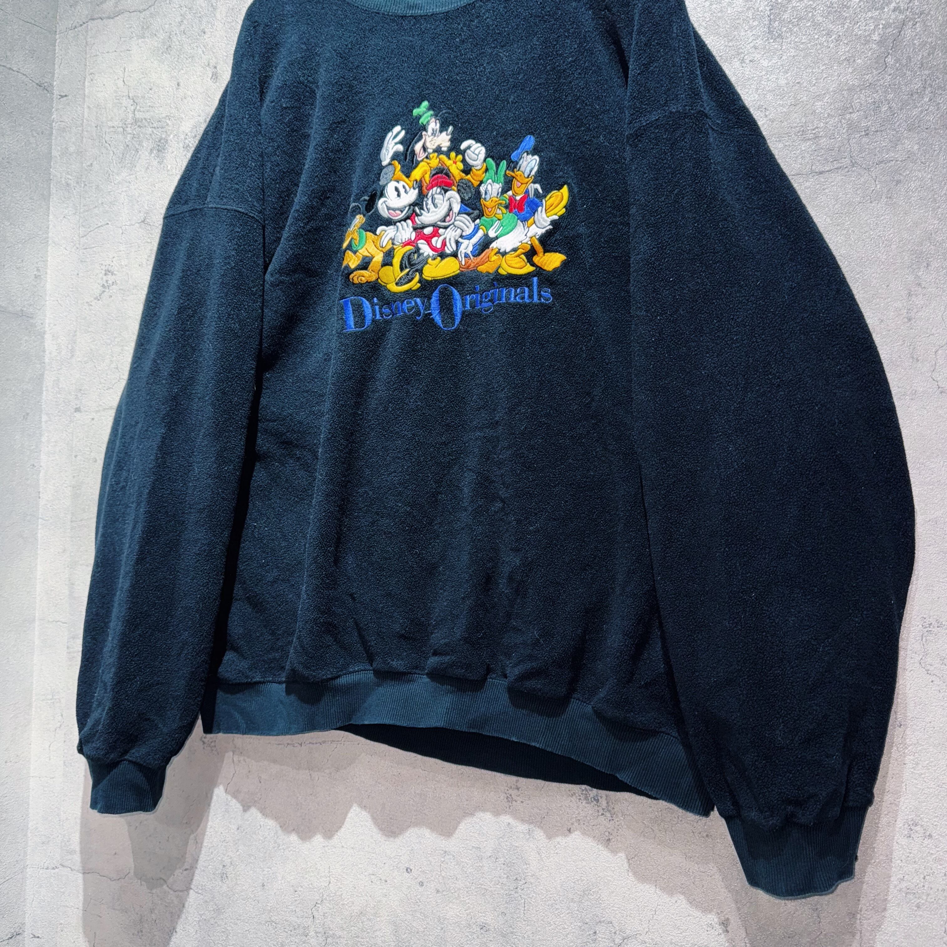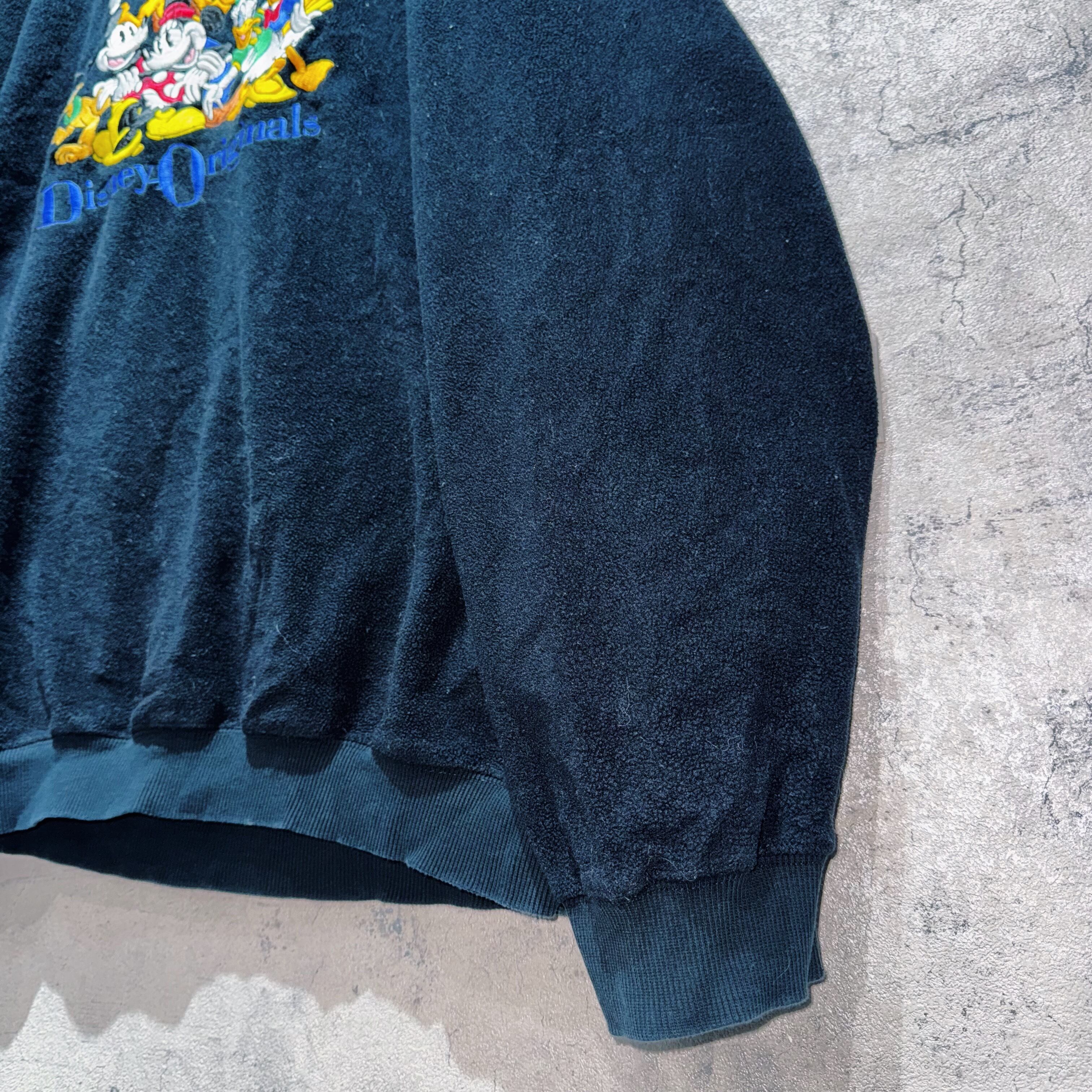 90's "Disney"Mickey&Friends embroidery fleece pullover sweat
