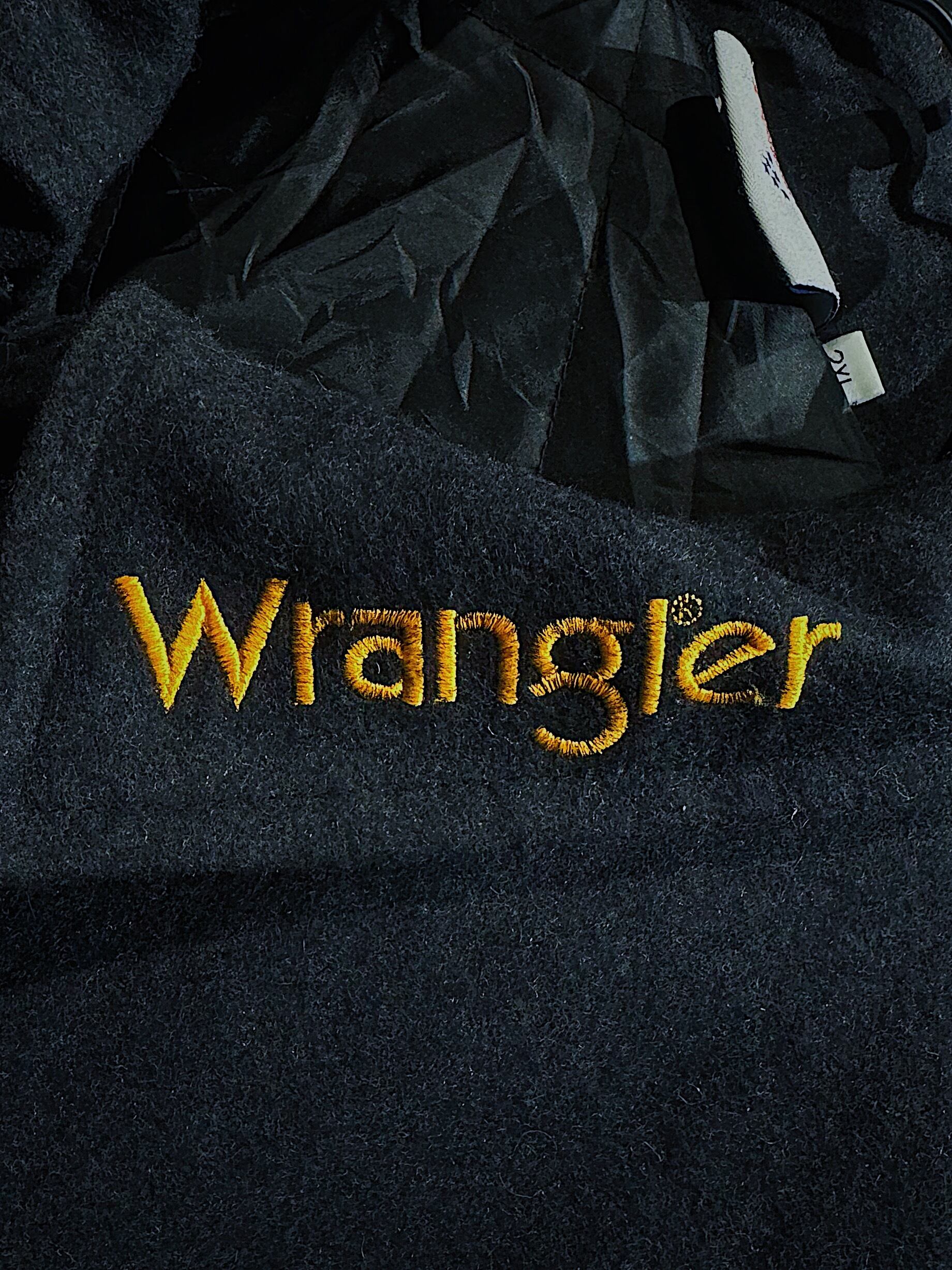 襟元には、Wranglerのロゴや象徴的な刺繍が施されており、ブランドの誇りを表現しています。