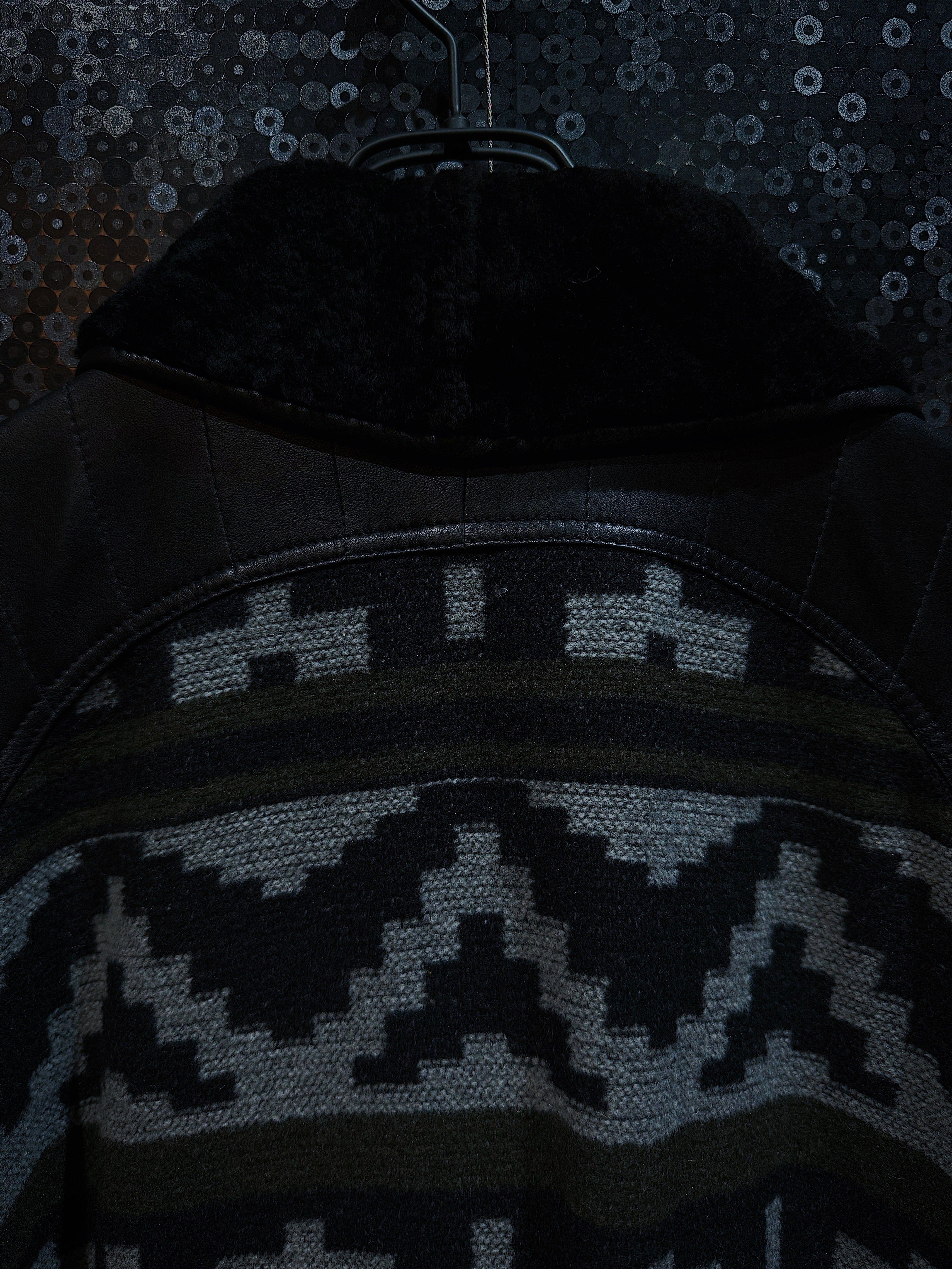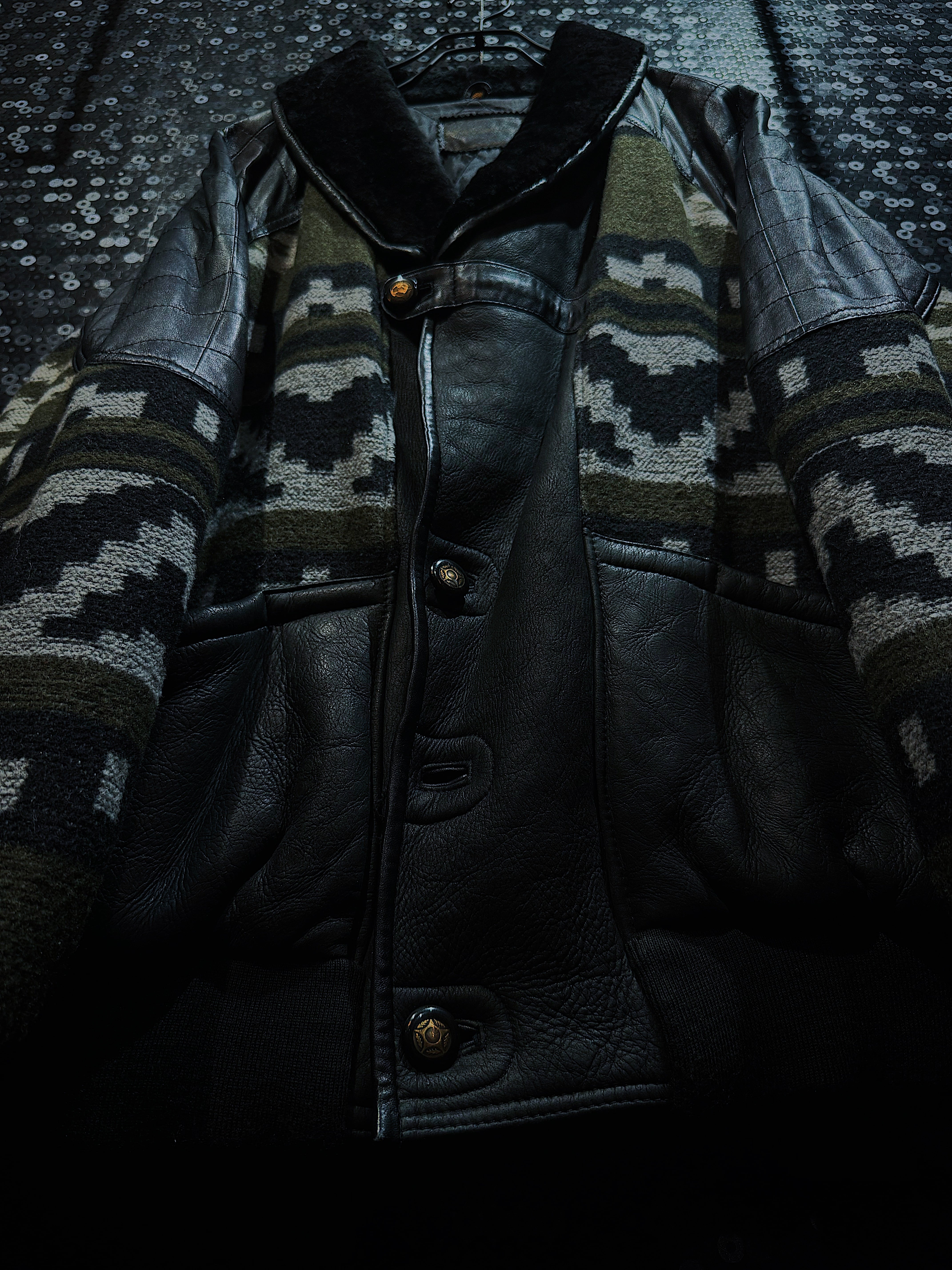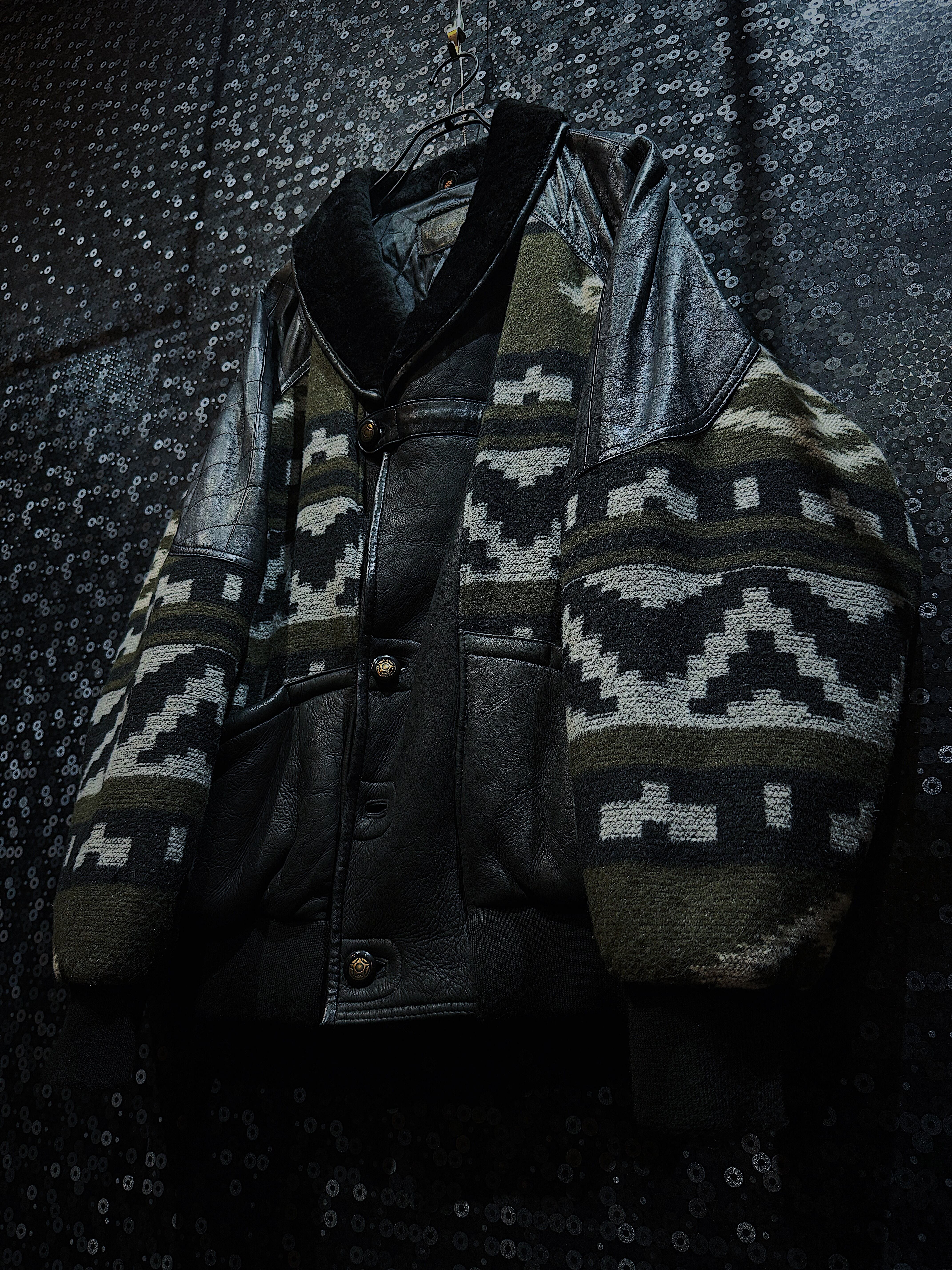 このヴィンテージジャケットは、レザーとニットをドッキングした個性的なシルエットが特徴で、アートのようなデザイン性を持ちながらも実用性を兼ね備えています。