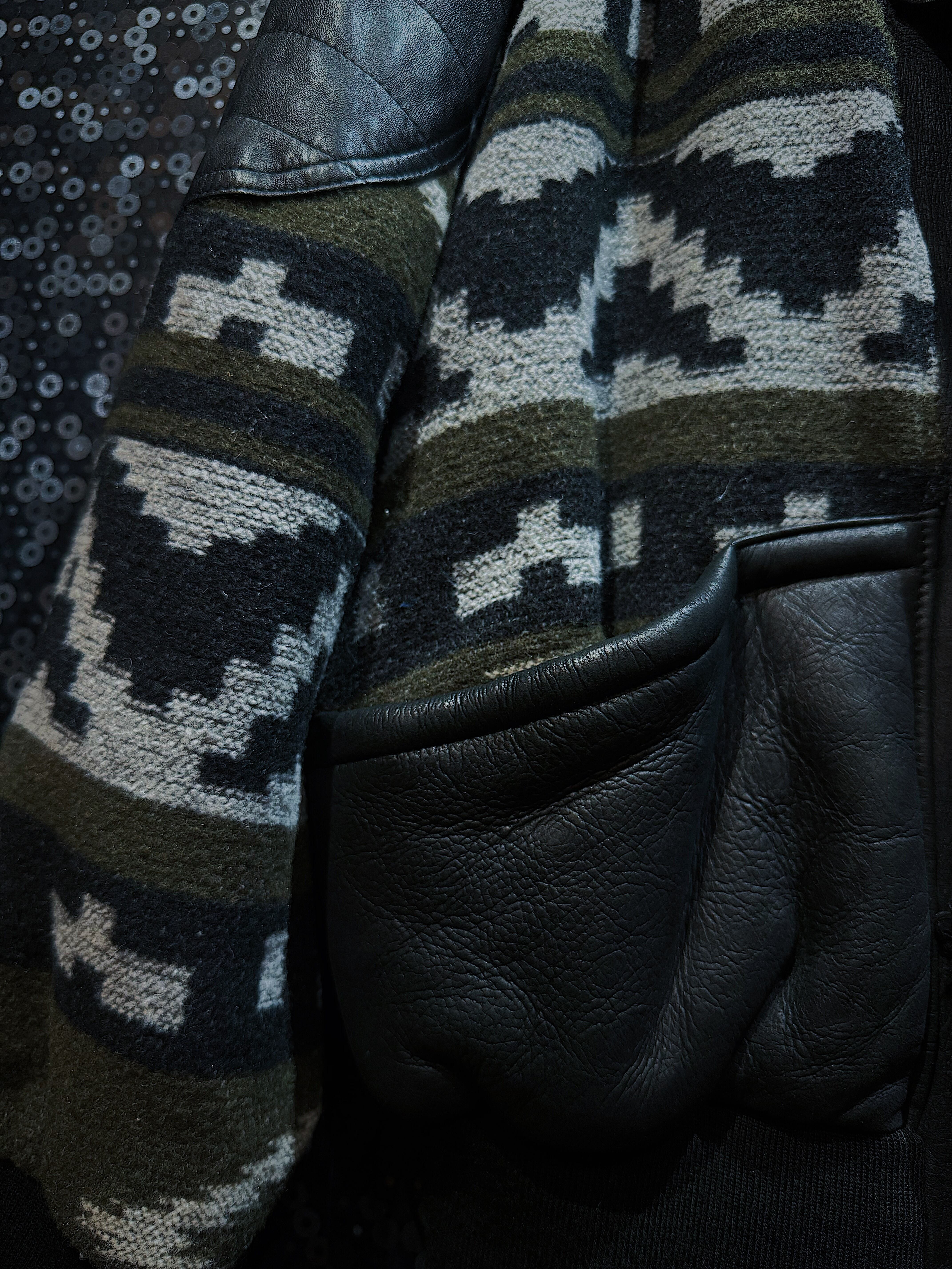 ニット部分の柄は温かみがあり、レザーとのコントラストが美しい仕上がりになっています。