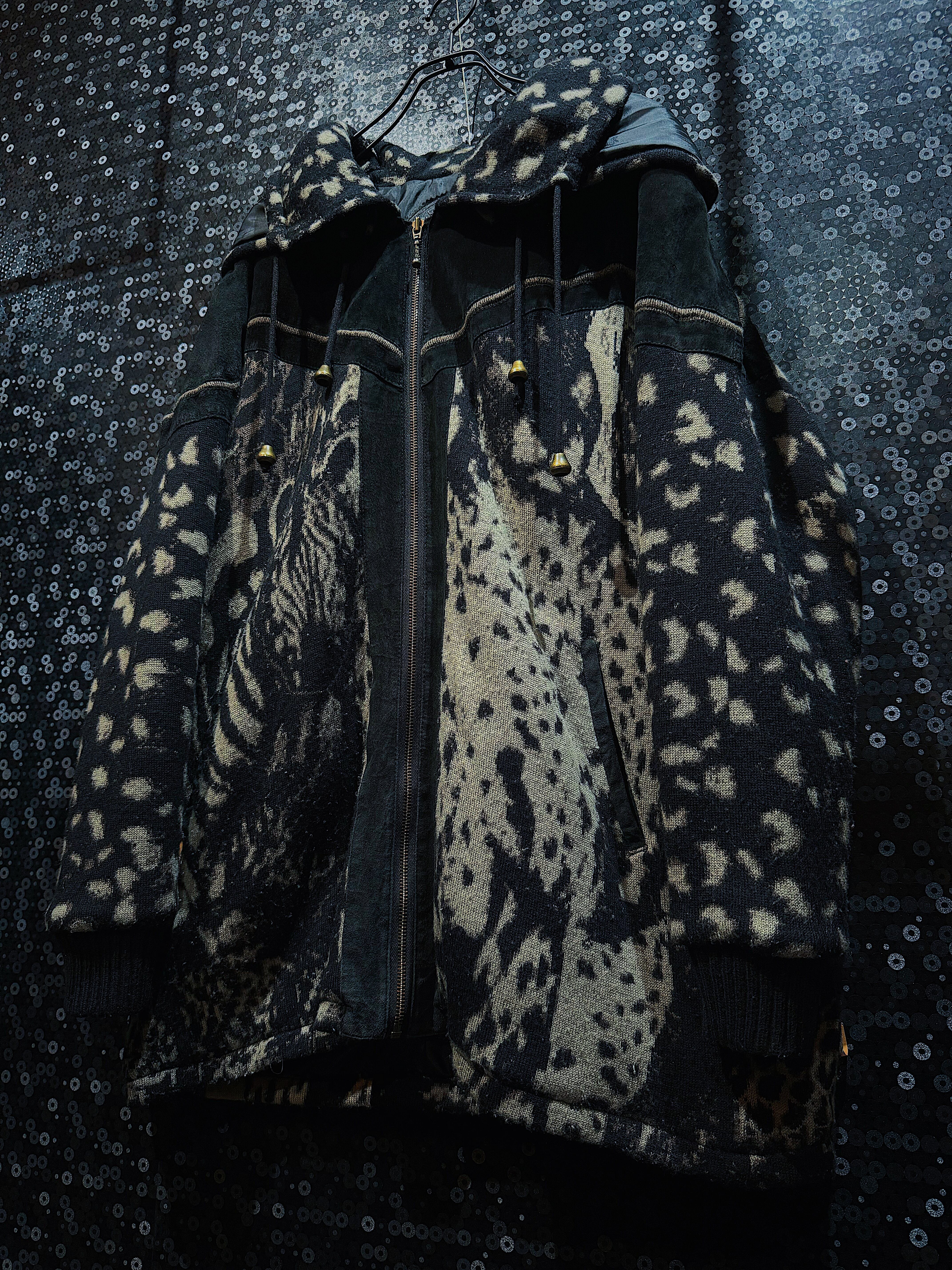 "PECATO"vintage leopard pattern mountain zip hoodie jacket