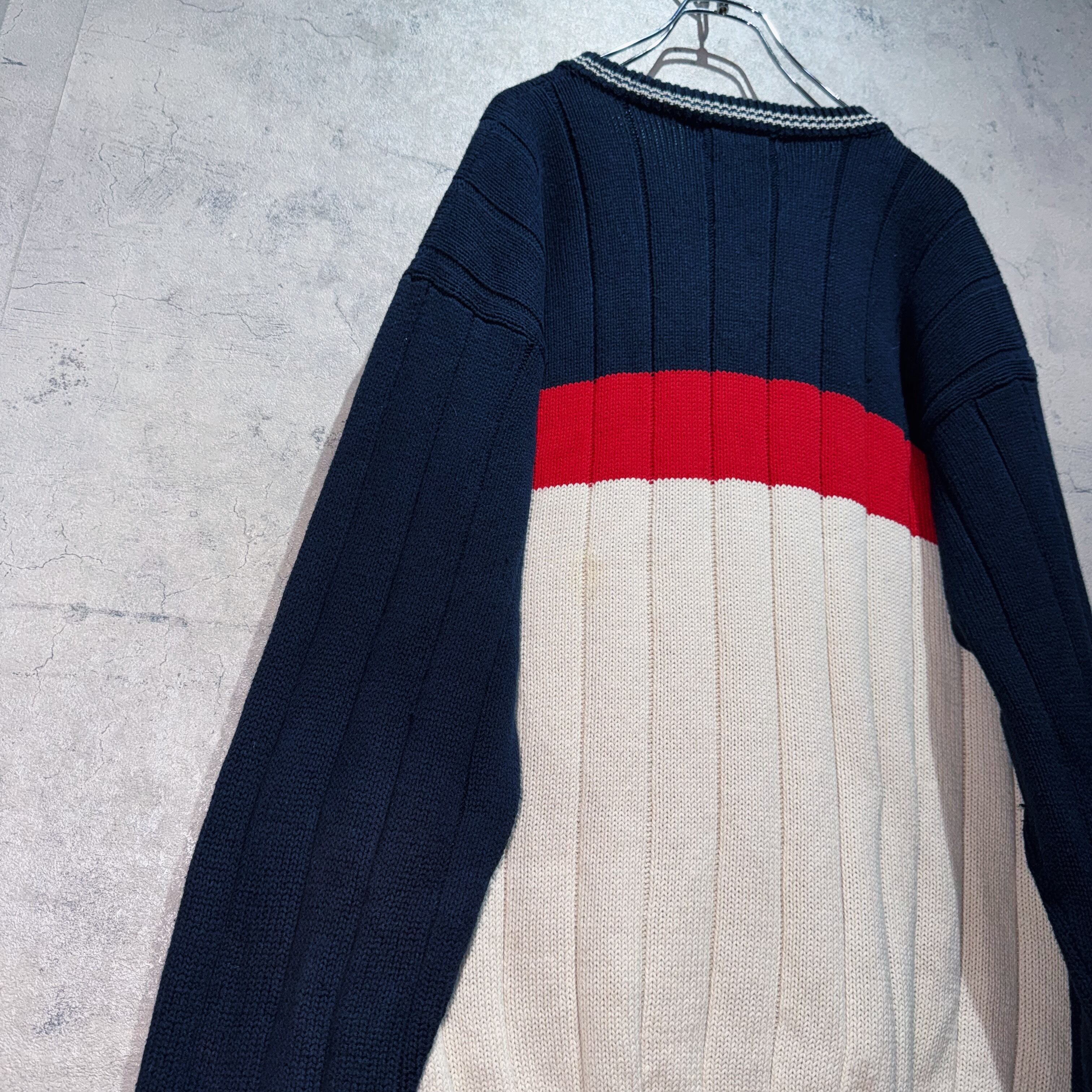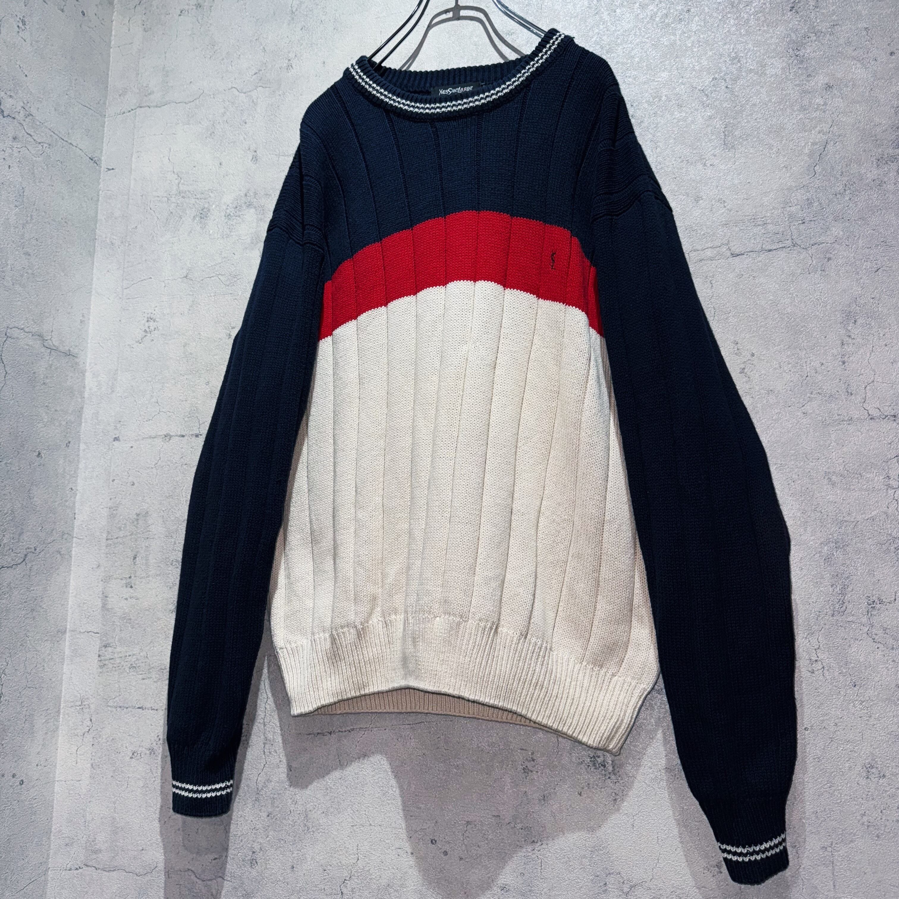 "イヴ・サンローラン"トリコロールカラーデザインプルオーバーニット