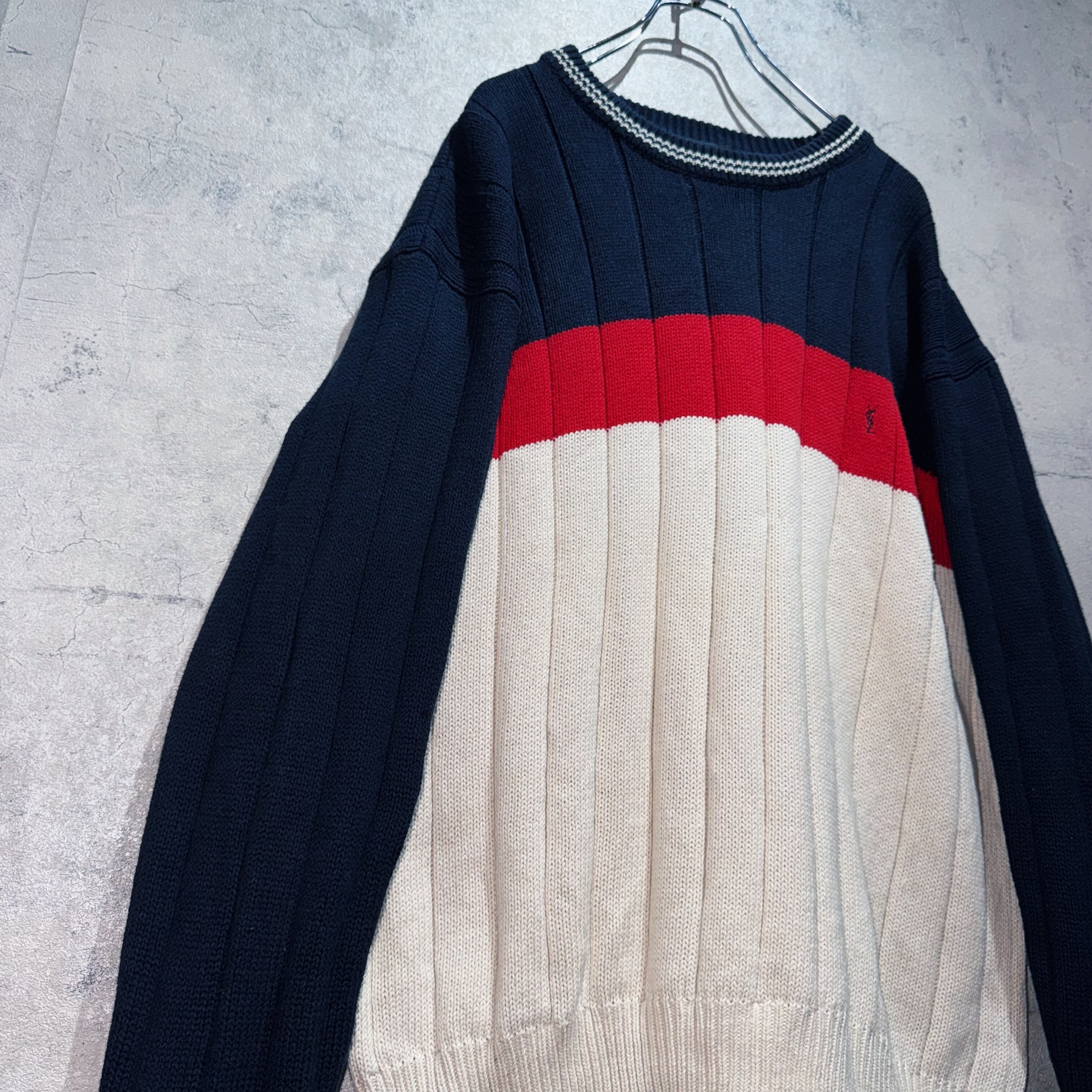 "Yvse Saint Laurent"tricolore color design pullover knit