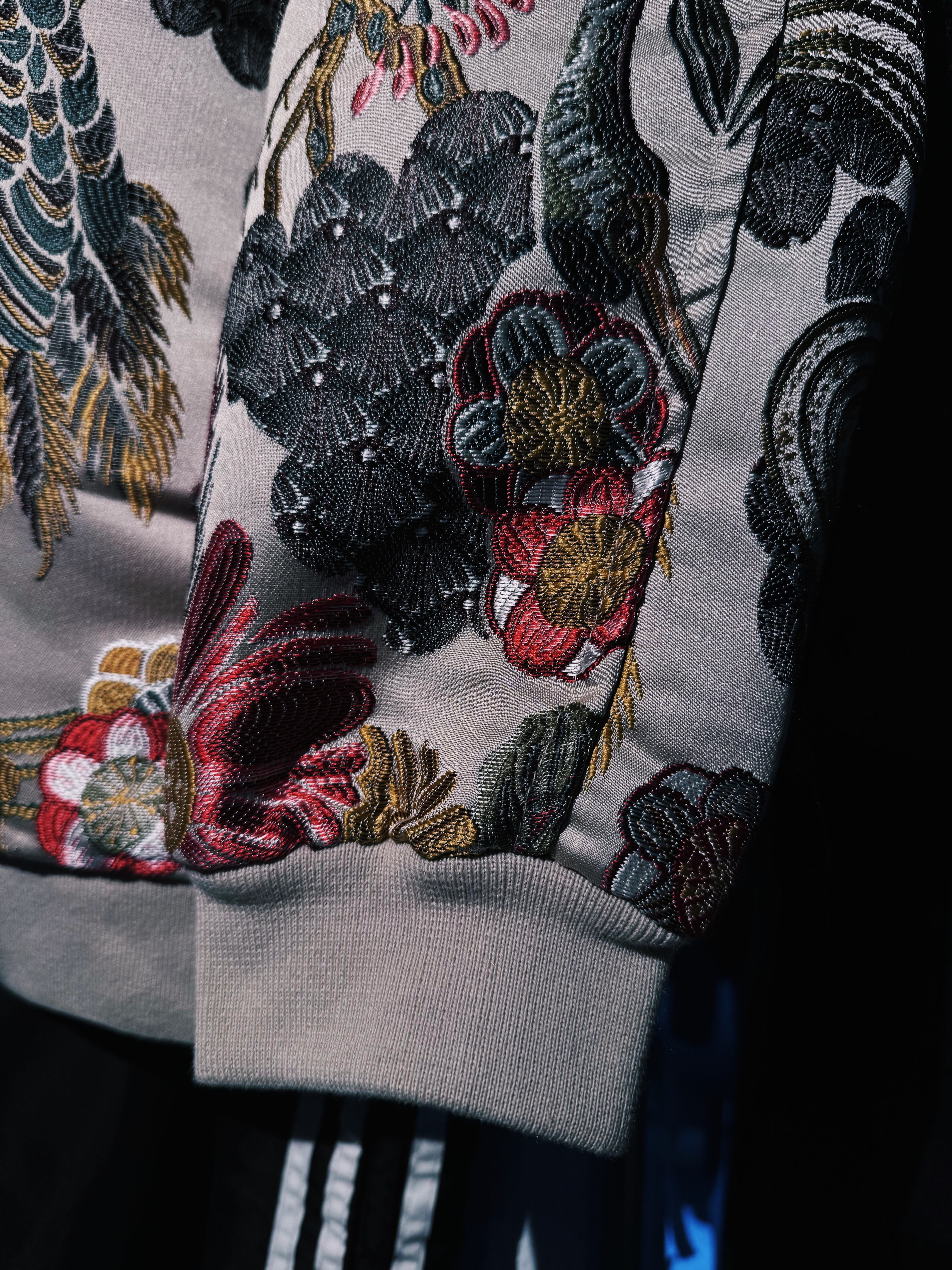ヴィンテージ"和柄"フルエンブロイダリーデザインシルバーカラーボンバーMA-1ジャケット