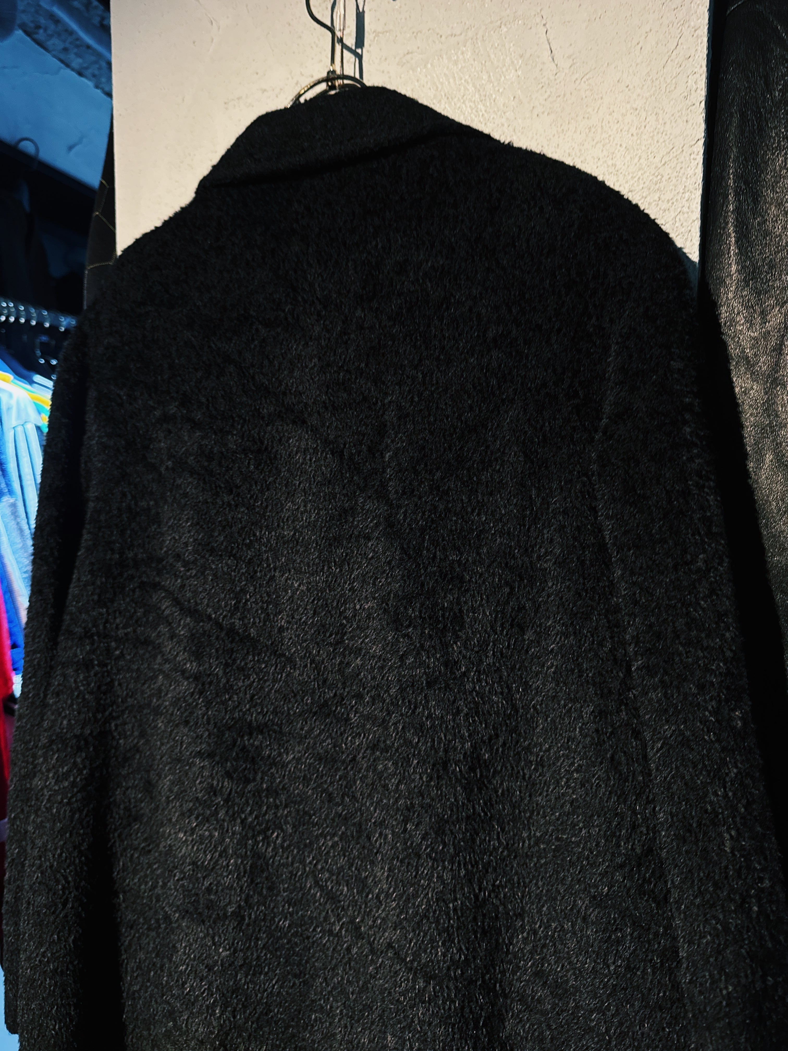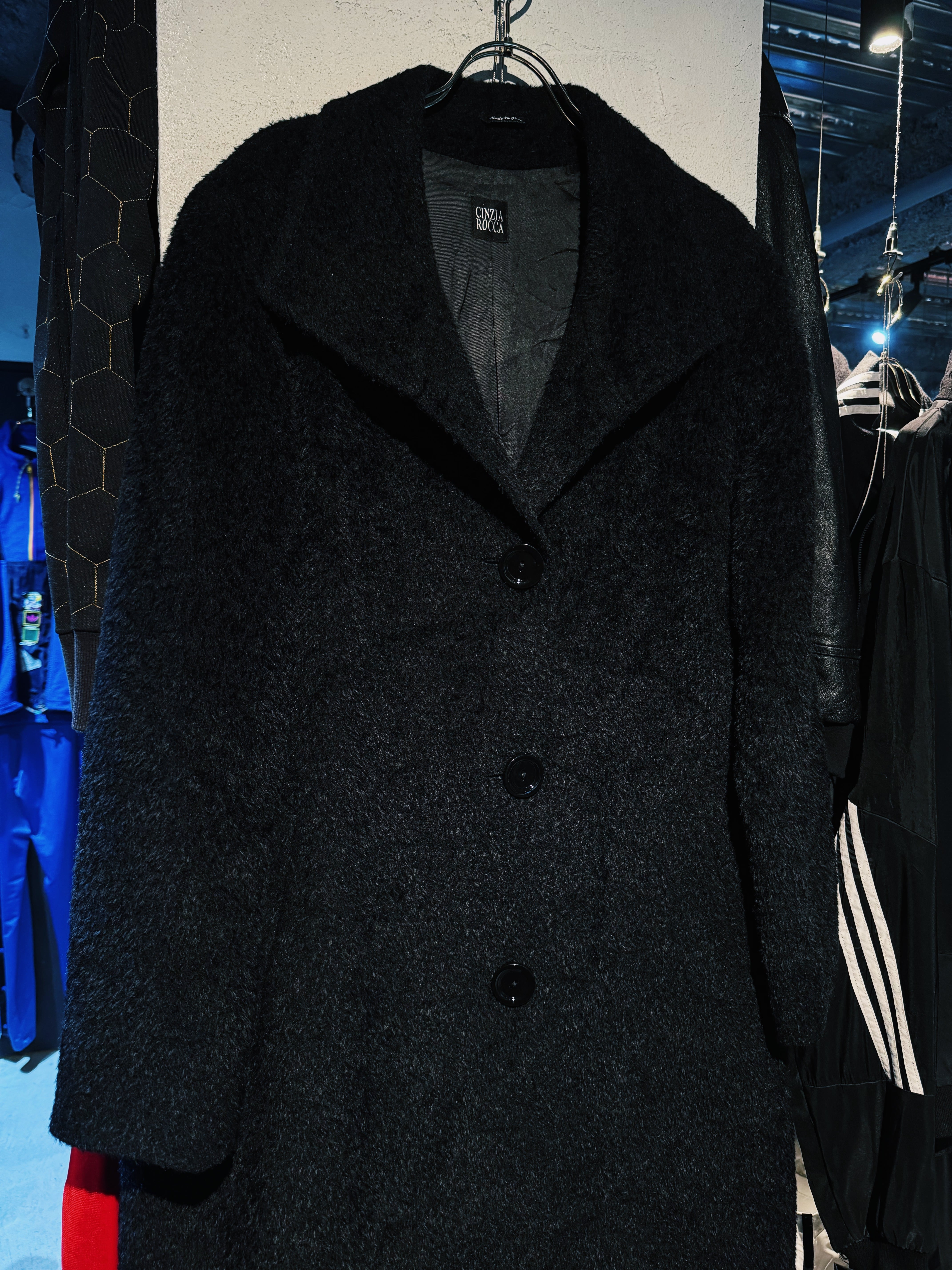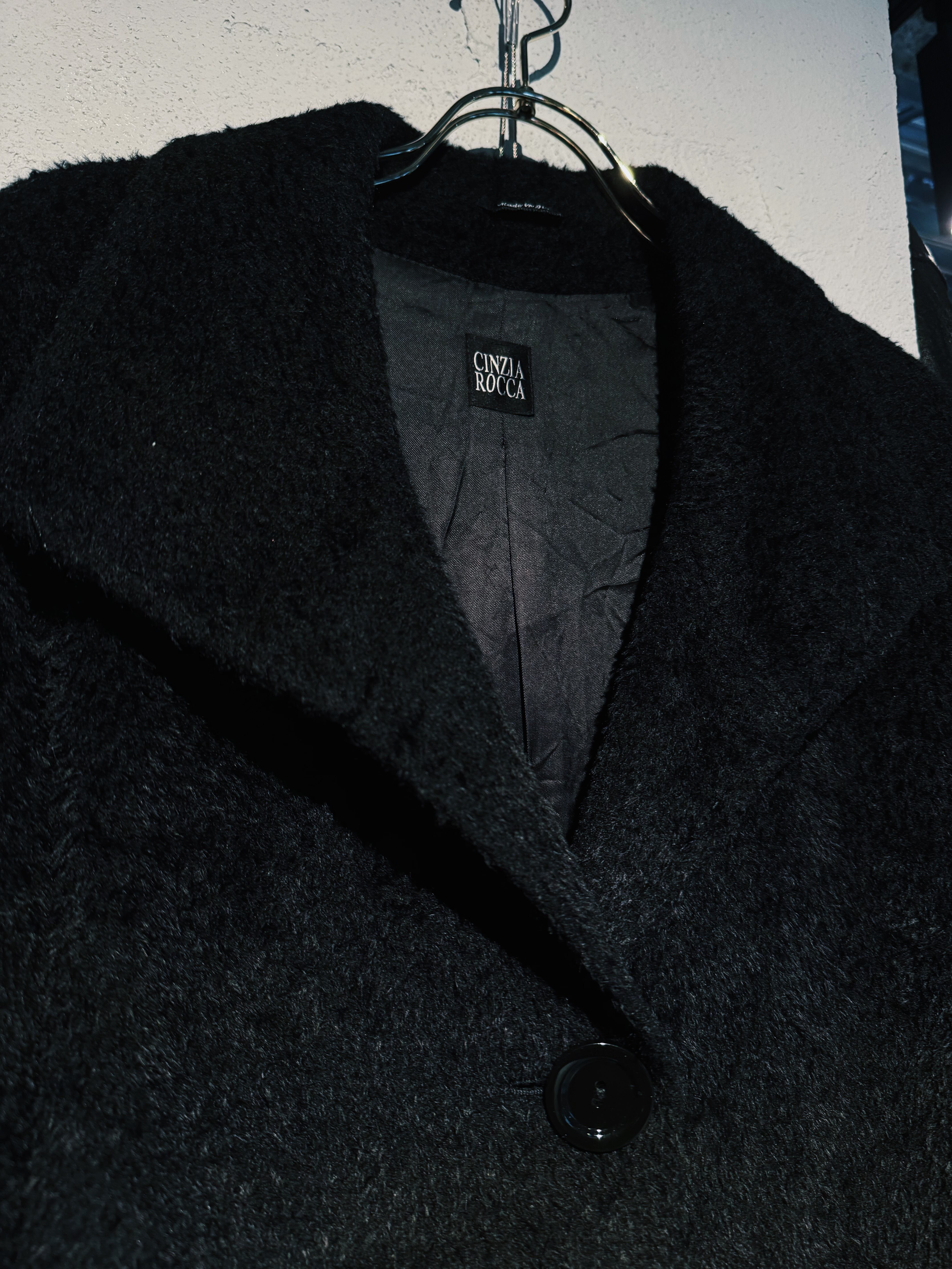 特殊な襟の形にロング丈、比翼仕立てとまるでハイブランドかのような高貴な存在感がありハイモードな仕上がりに。