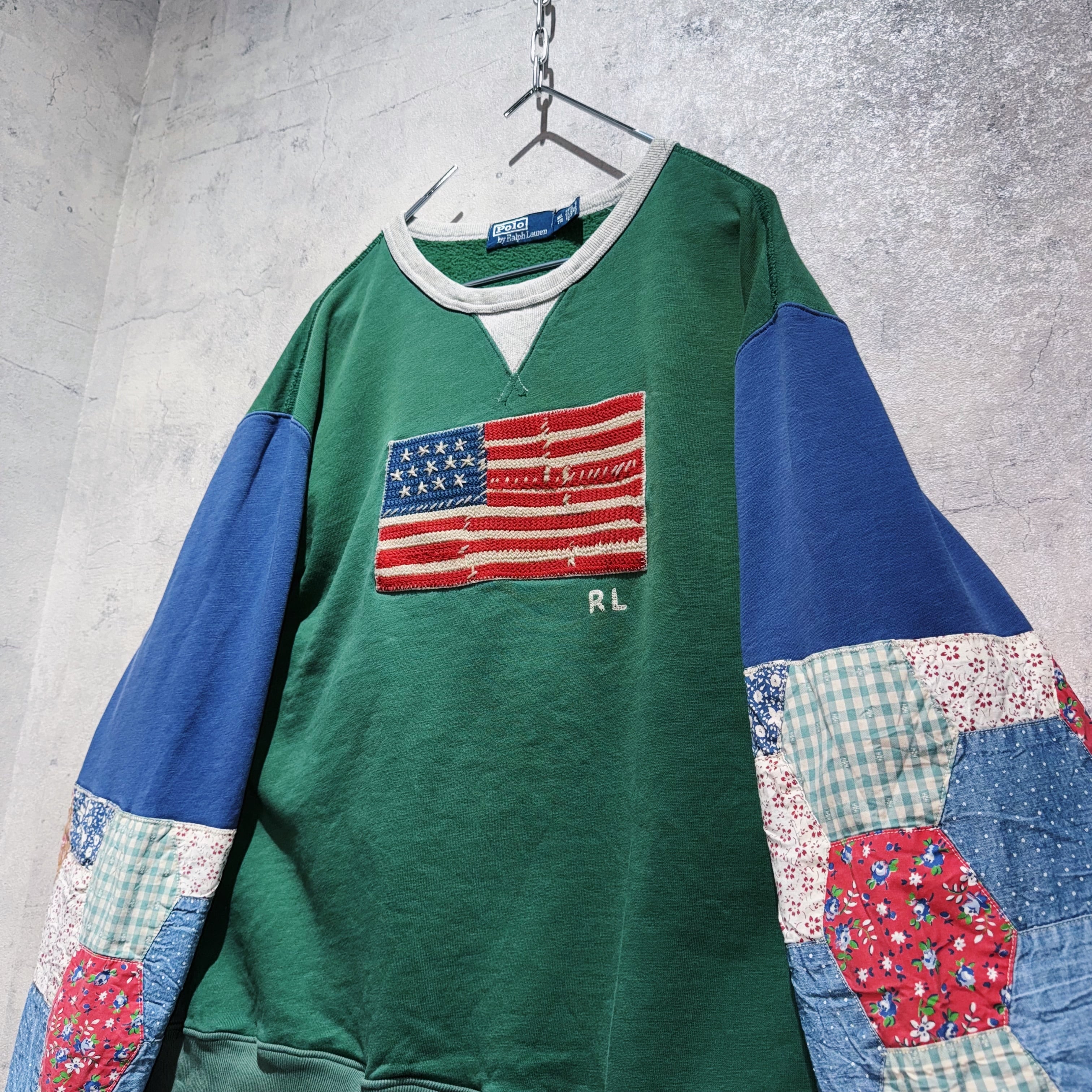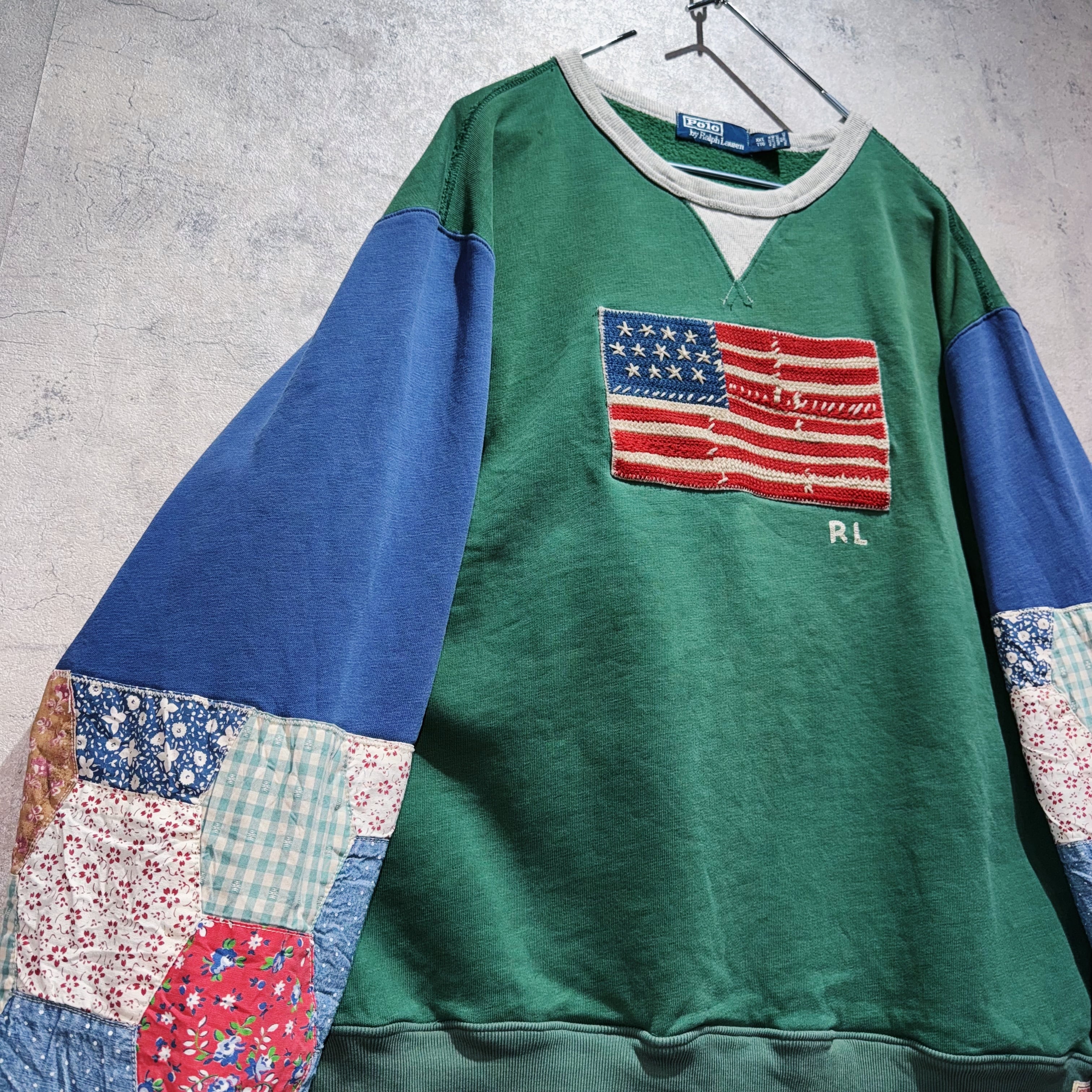 90年代"ポロバイラルフローレン"パッチワークデザインプルオーバースウェット