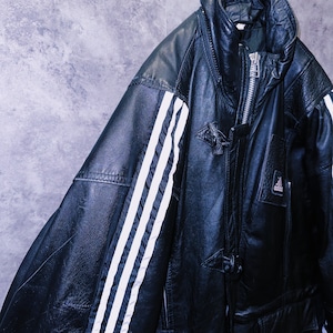 special "original re:make" three stripe design vintage leather jacket three stripe edition