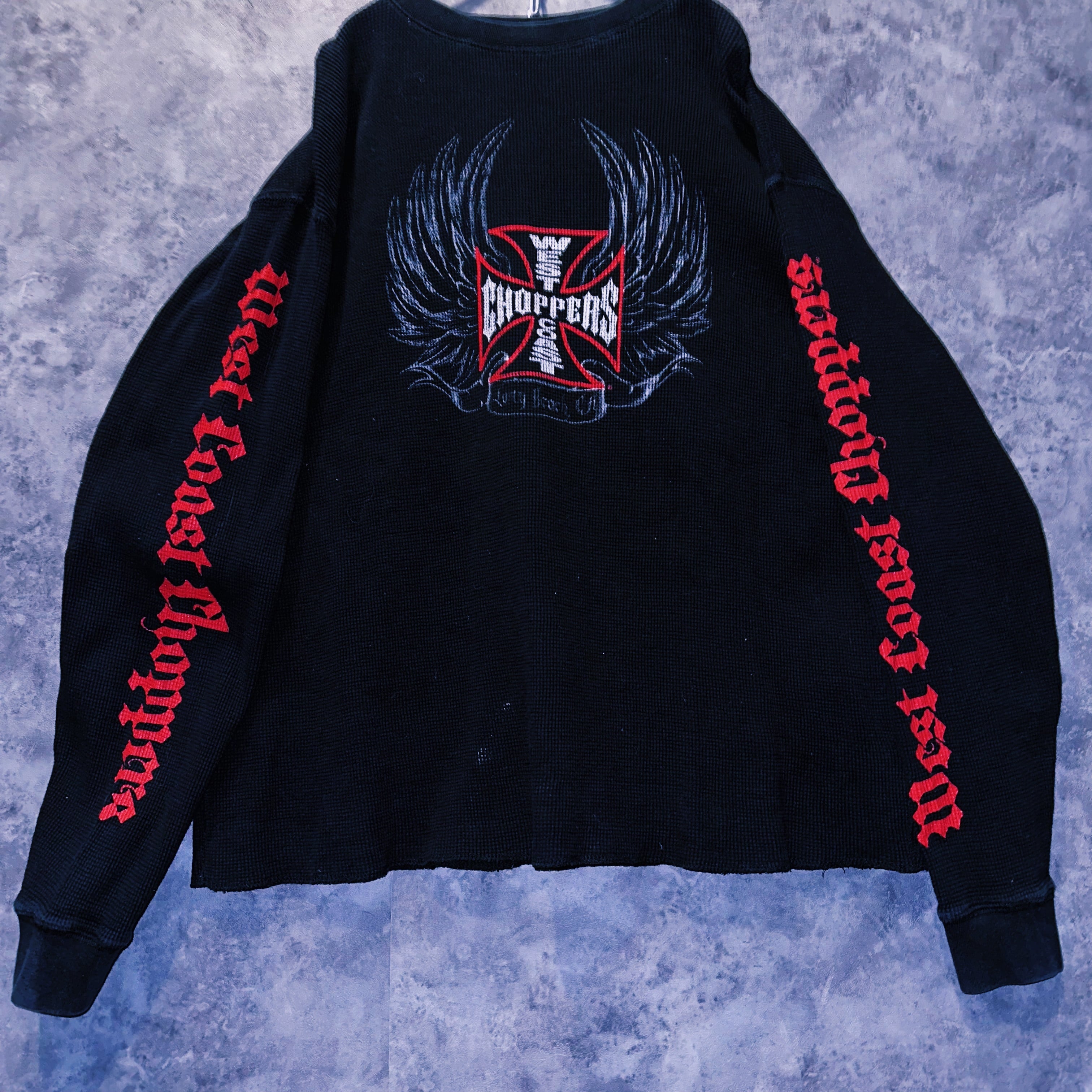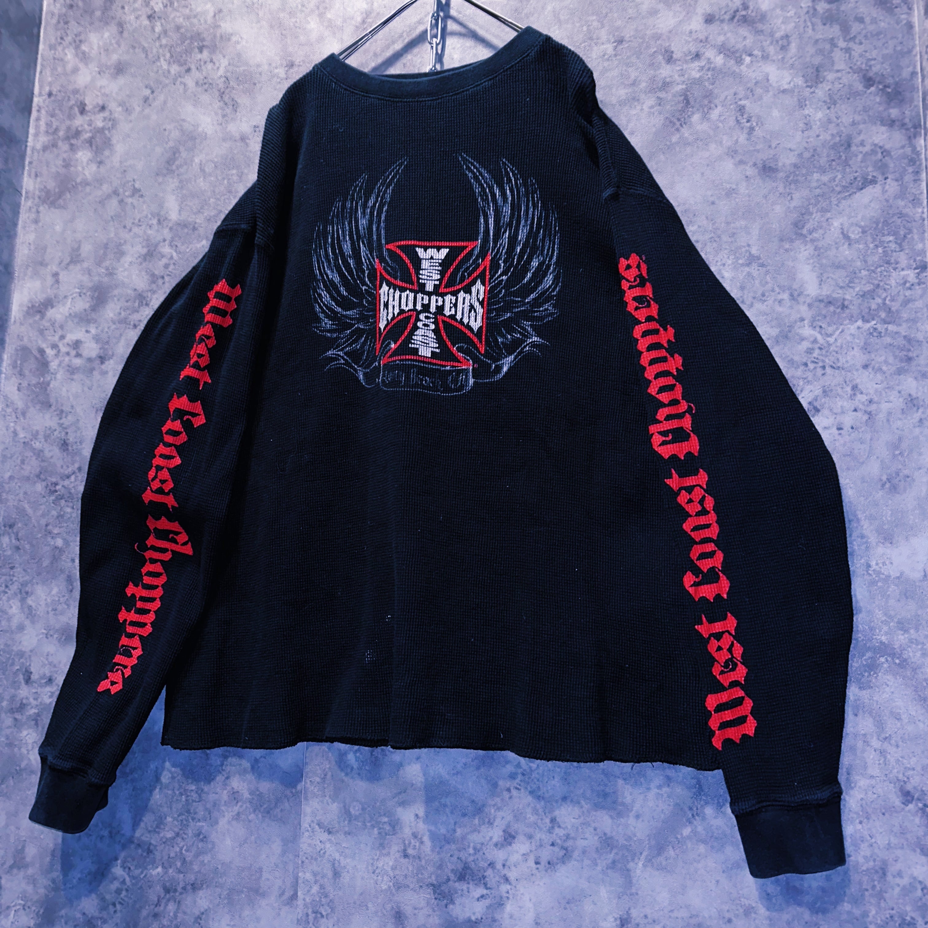 90'sヴィンテージ"West Coast Choppers"プリントデザインワッフルロングTシャツ