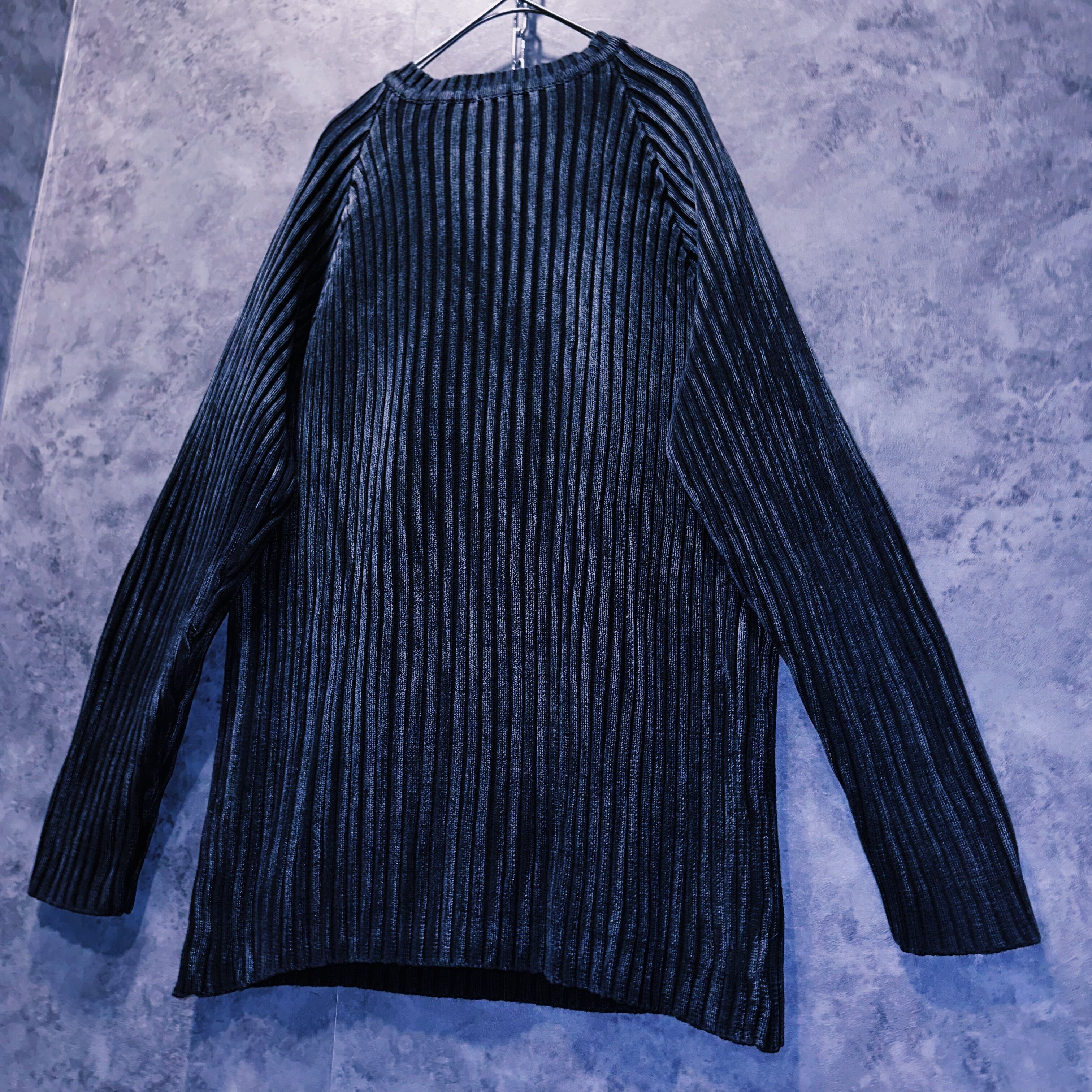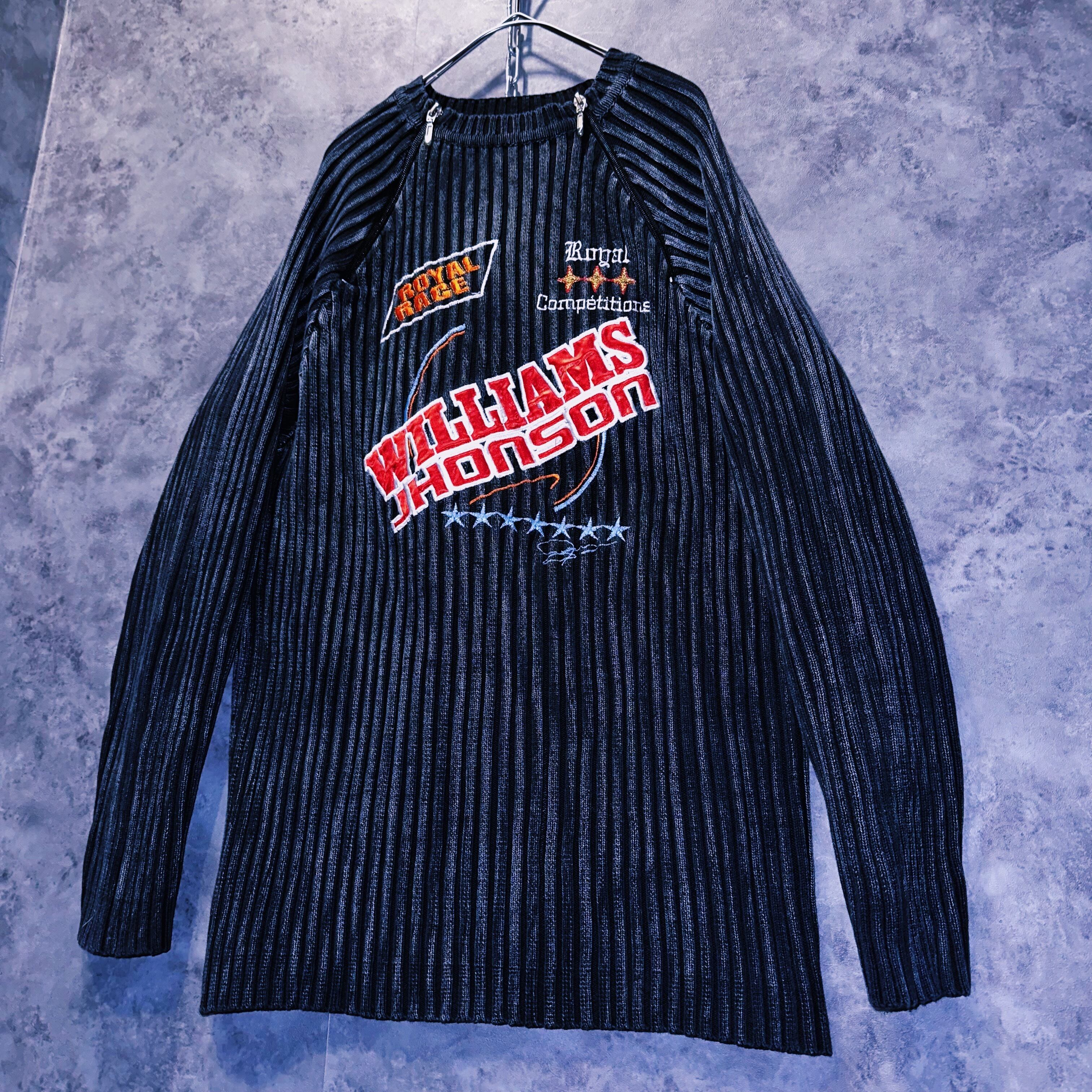 ヴィンテージワッペンエンブロイダリーデザインフェードカラーリブニットプルオーバー