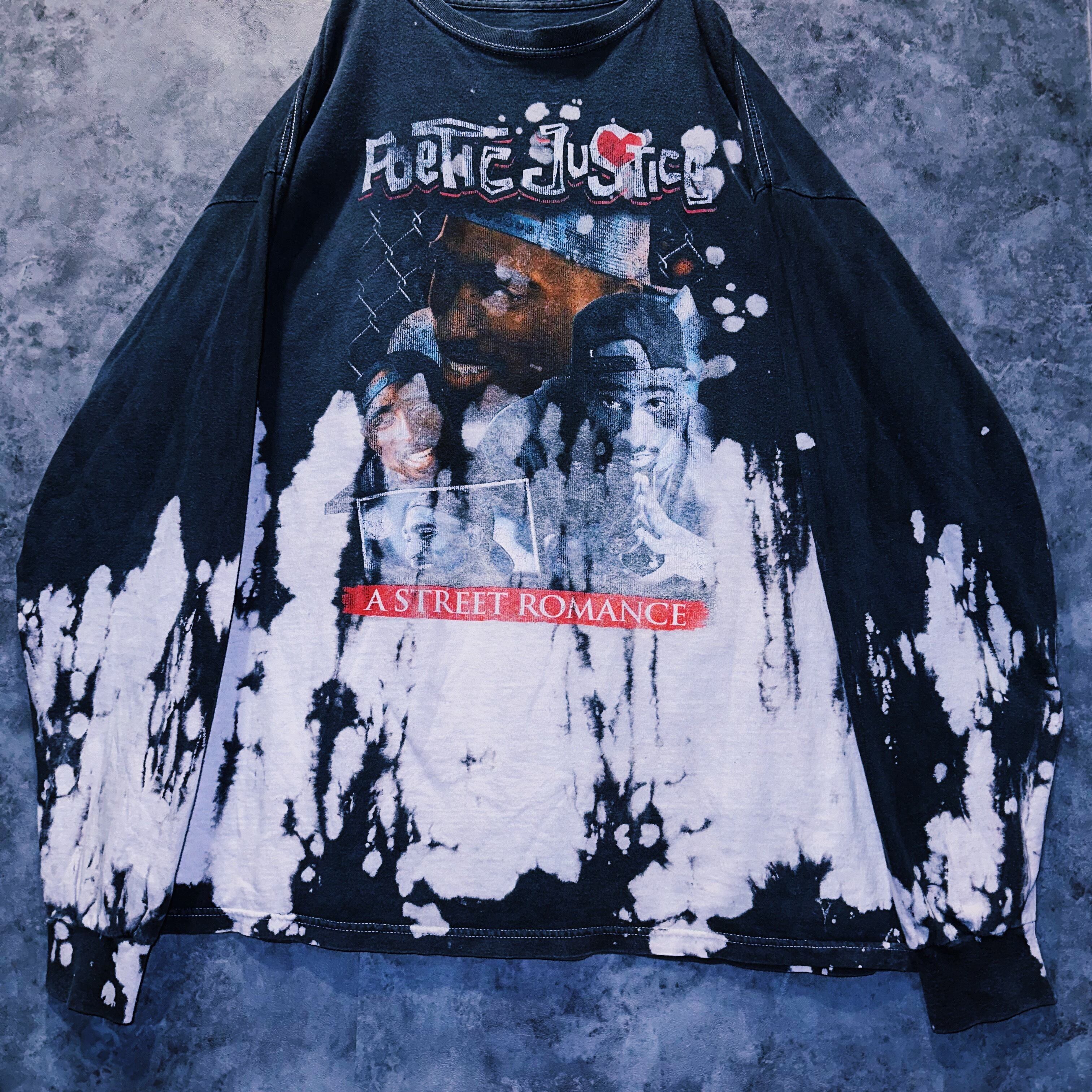 ヴィンテージ"poetic justice"プリントデザインブリーチカスタムロングTシャツ