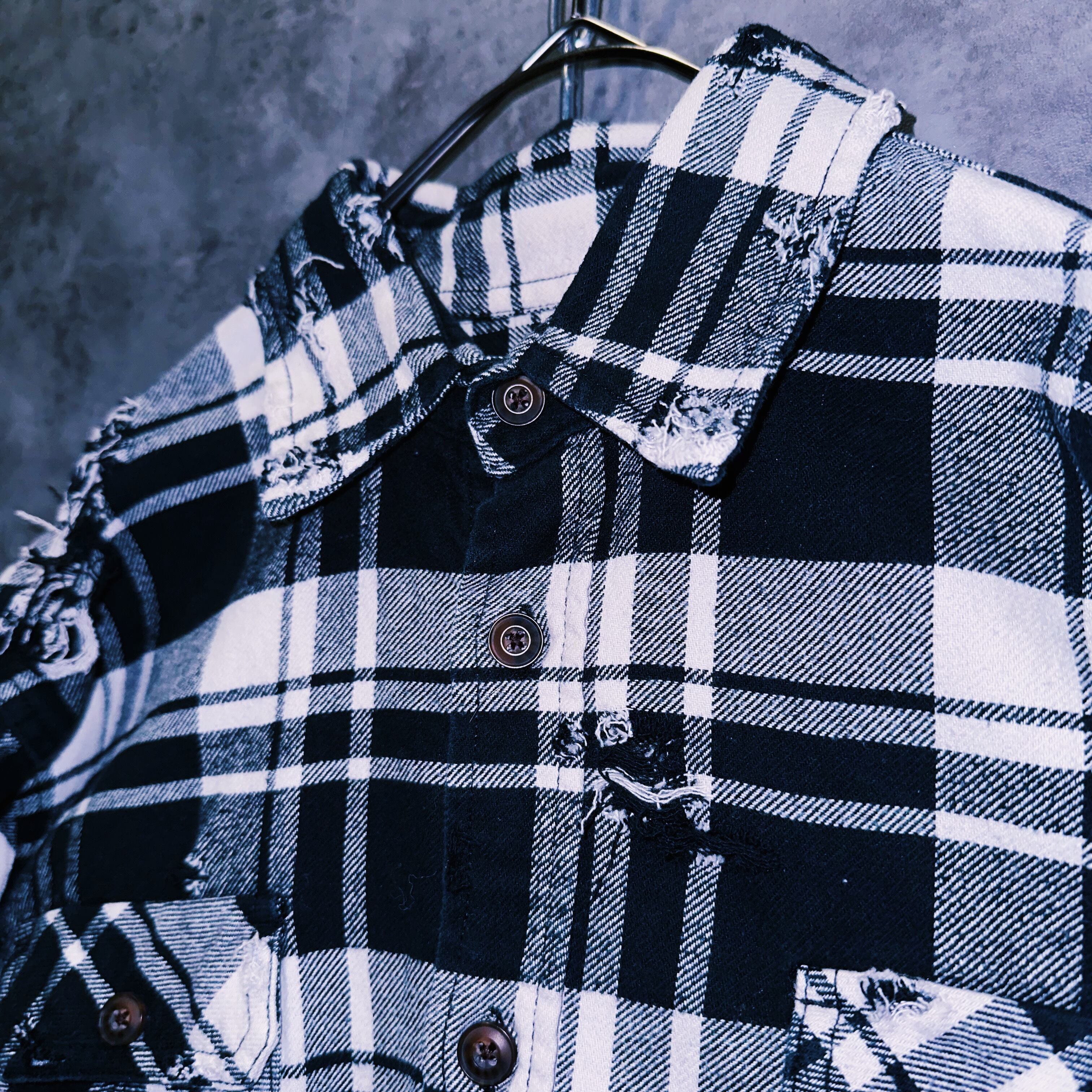 【doppio】90's vintage tone on tone check design boro custom L/S shirt