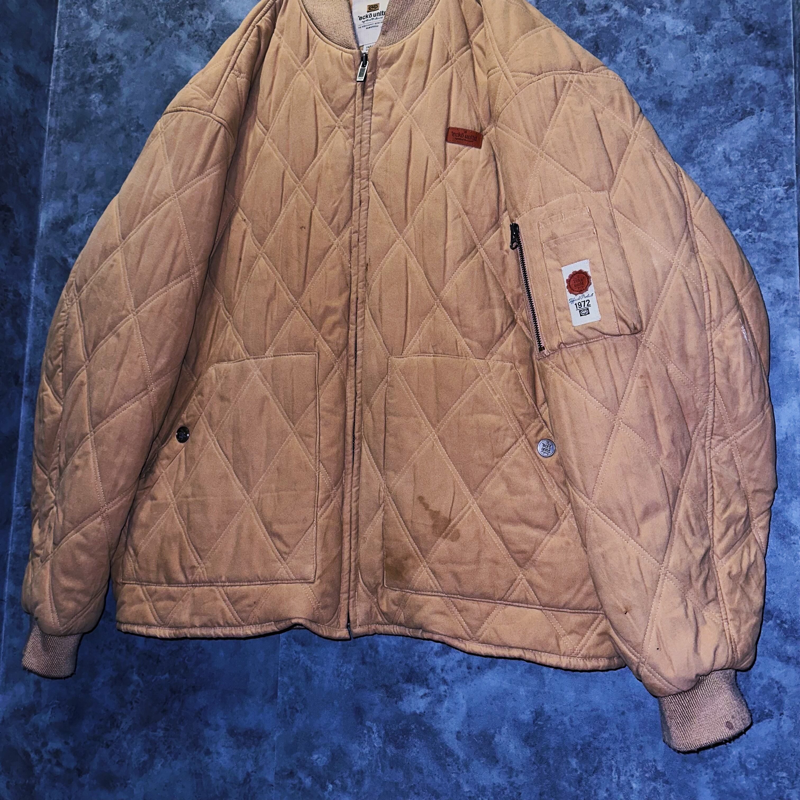 表地はキルティングで圧巻のかっこよさが最高ですね。デニムや軍パンとの相性も抜群。色味もかなりの渋い色気のあるベージュで冬は間違いなく凌げる最強の保温性です。