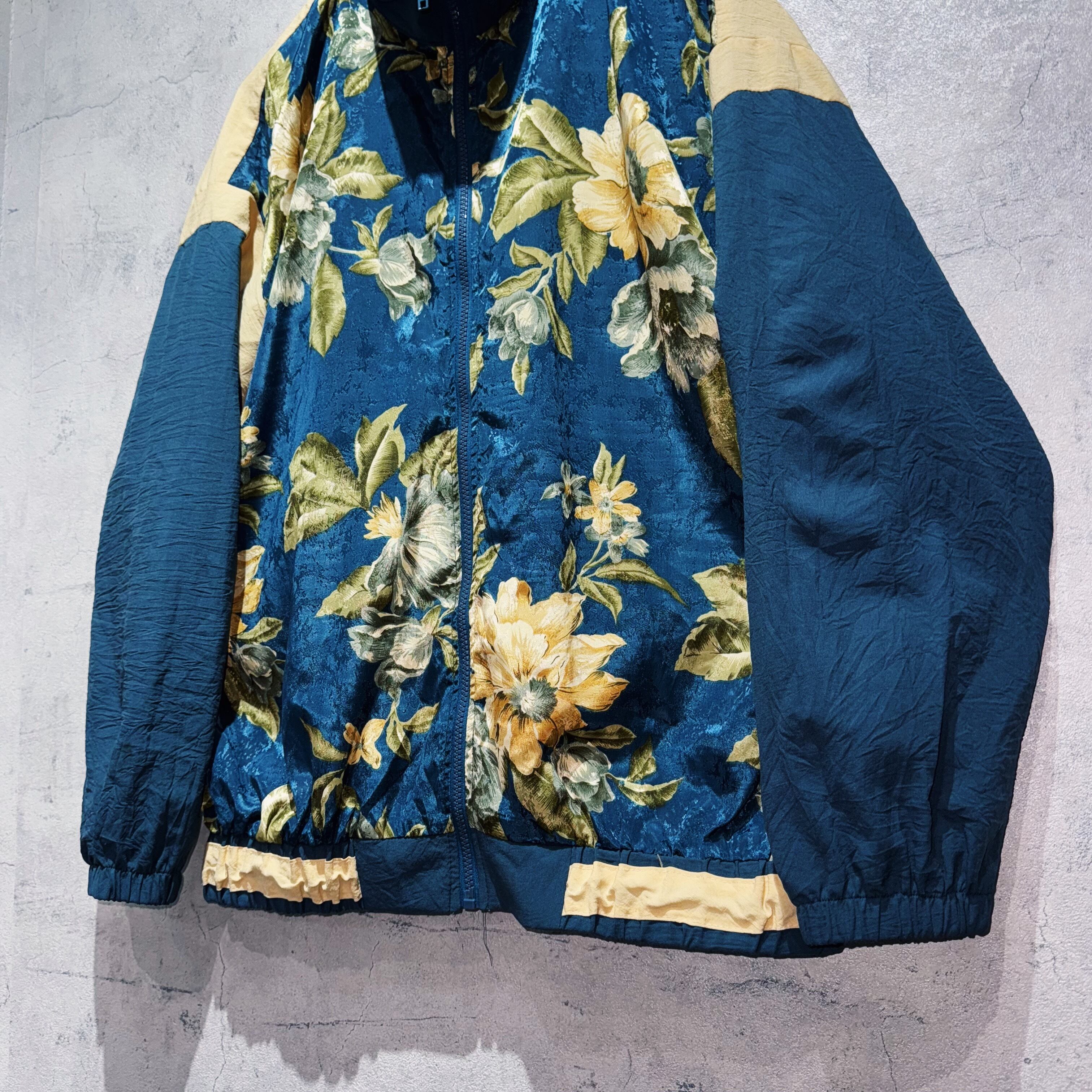 フロントに美しく咲き誇る花々をあしらったラグジュアリー溢れるデザインジャケット。このイエローとブルーのカラーリングはとても相性が良く、一際存在感がありますね。