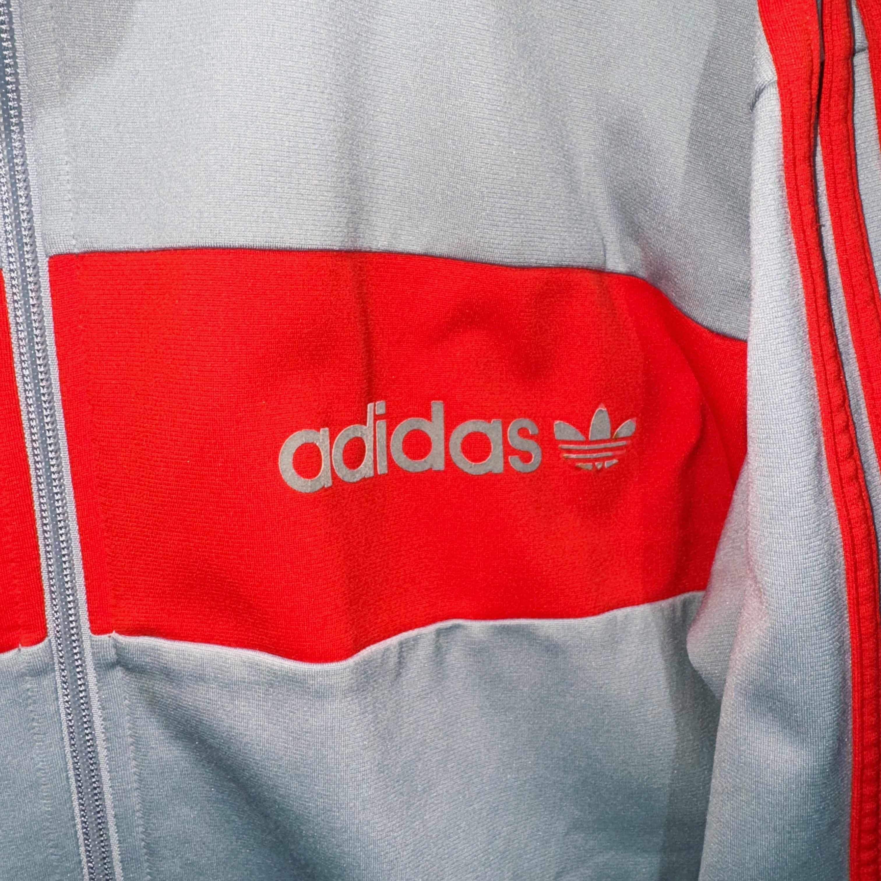 グレーのボディに発色の良いオレンジがスイッチングしたトラックジャケット。