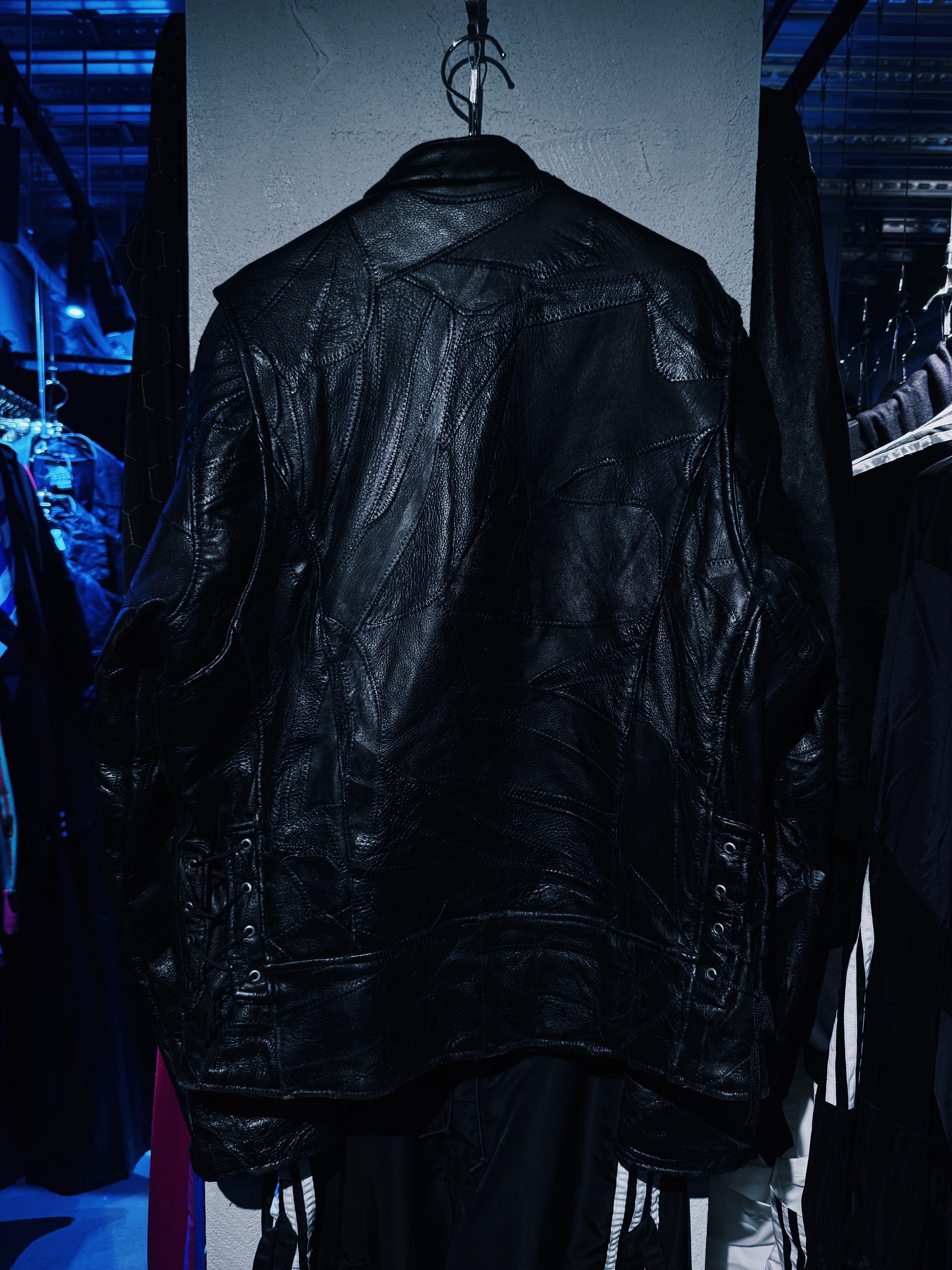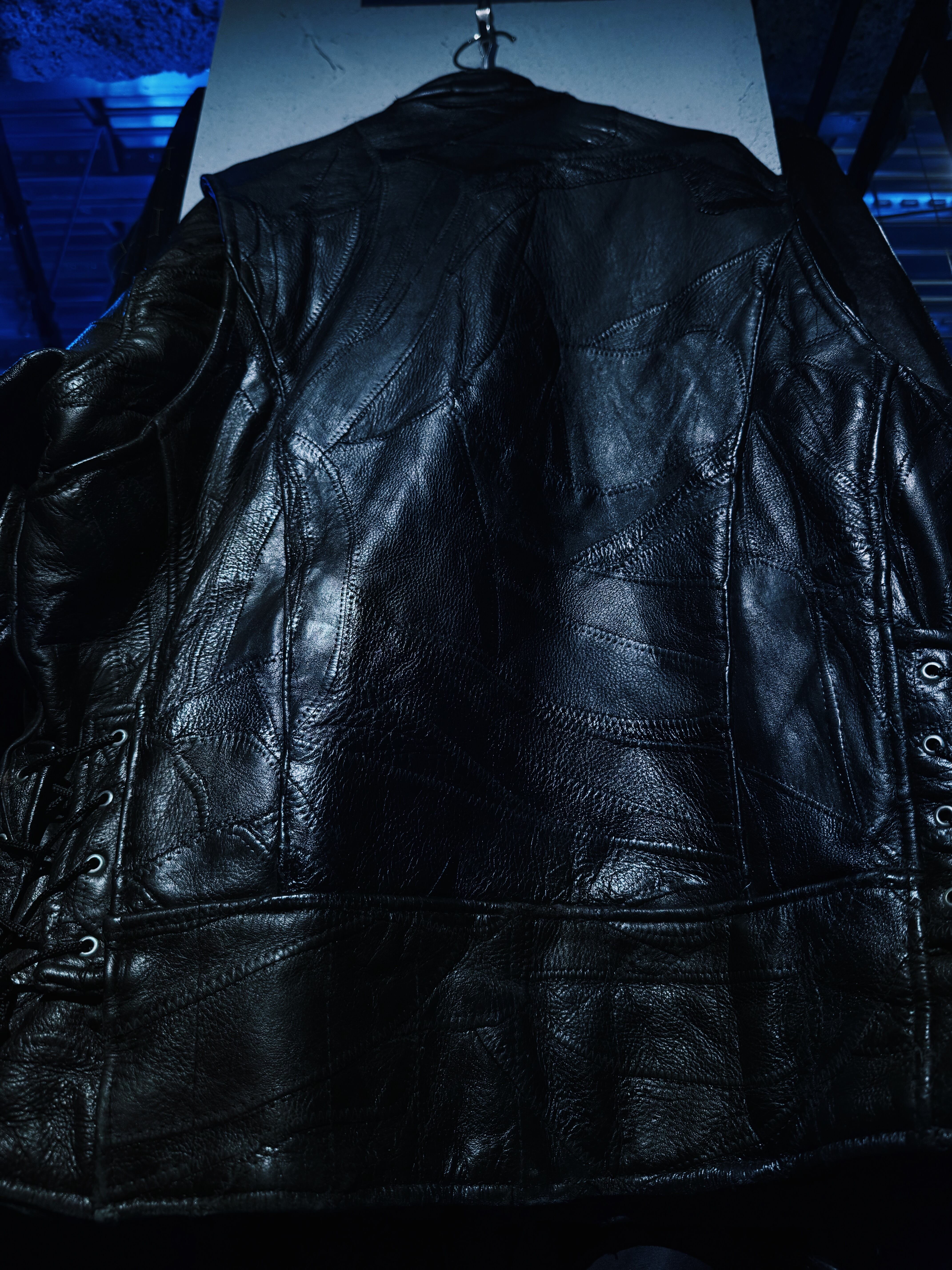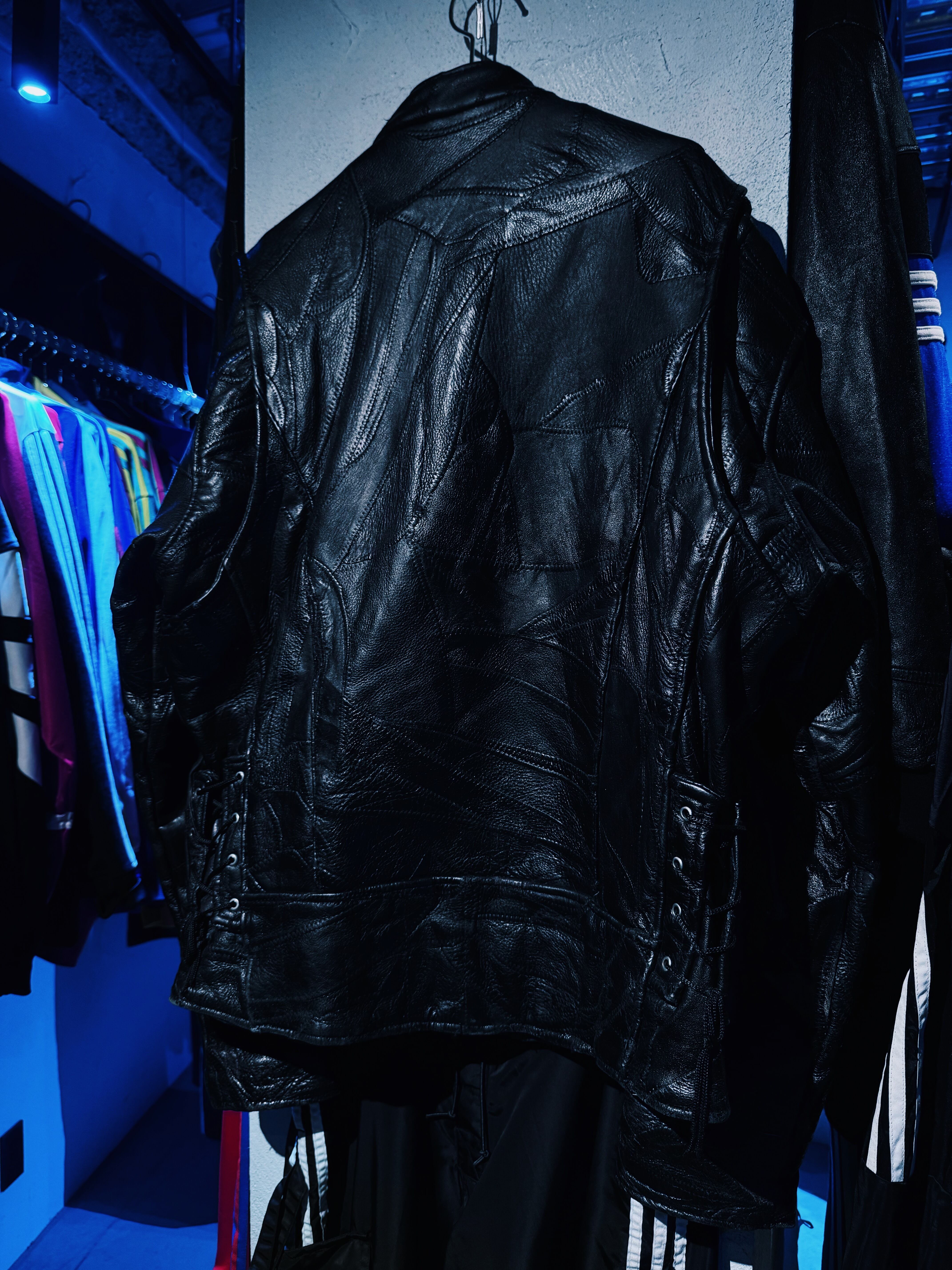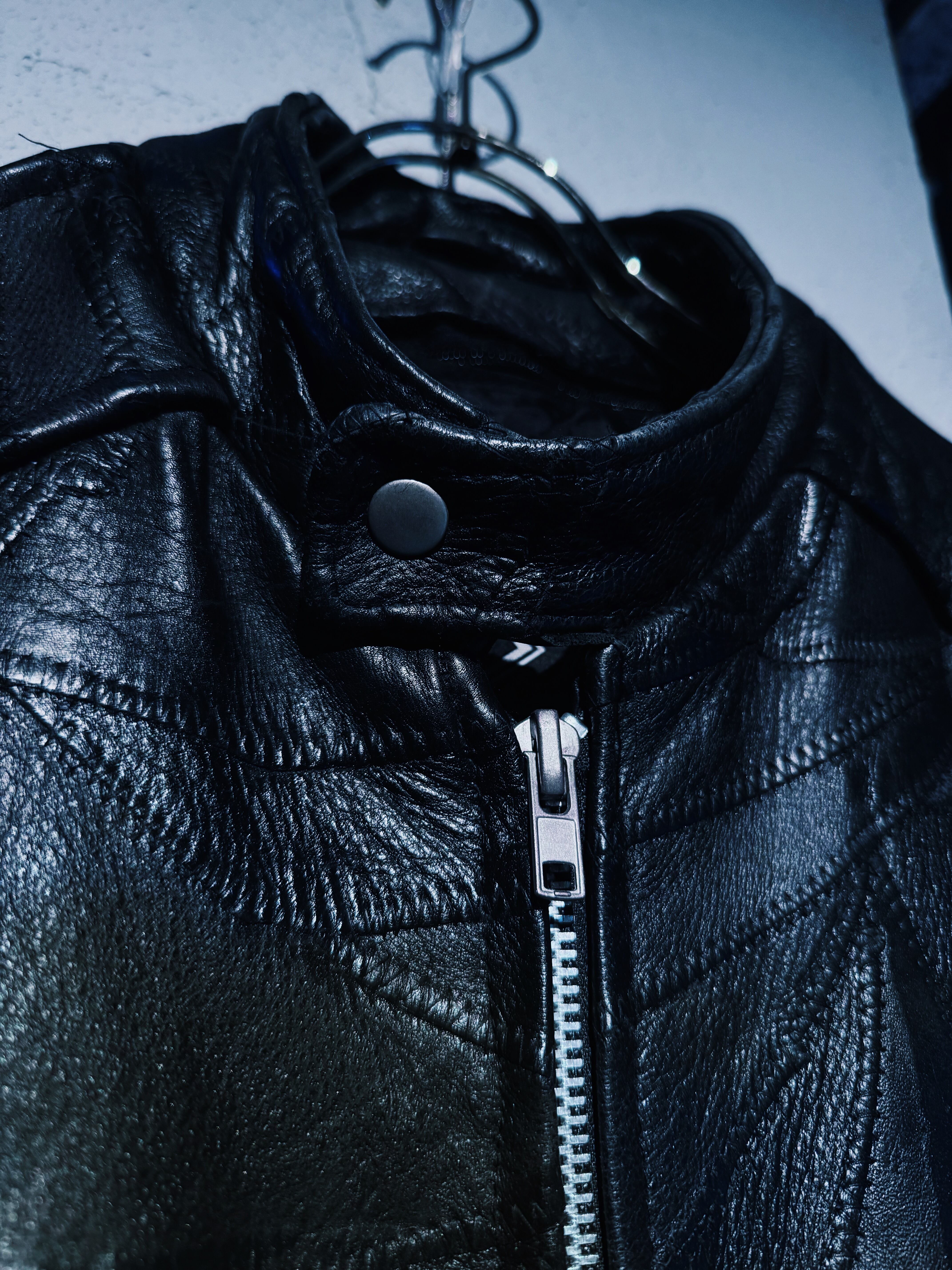 型押しでツギハギのようなトータルステッチデザインが採用されており、LだがかなりゆとりのあるシルエットというUSヴィンテージの特徴的なオーバーサイズシルエット。近年オーバーサイズが流行の中ここまでルーズでオーバーなシルエットのライダース他にない唯一無二のシルエット感。