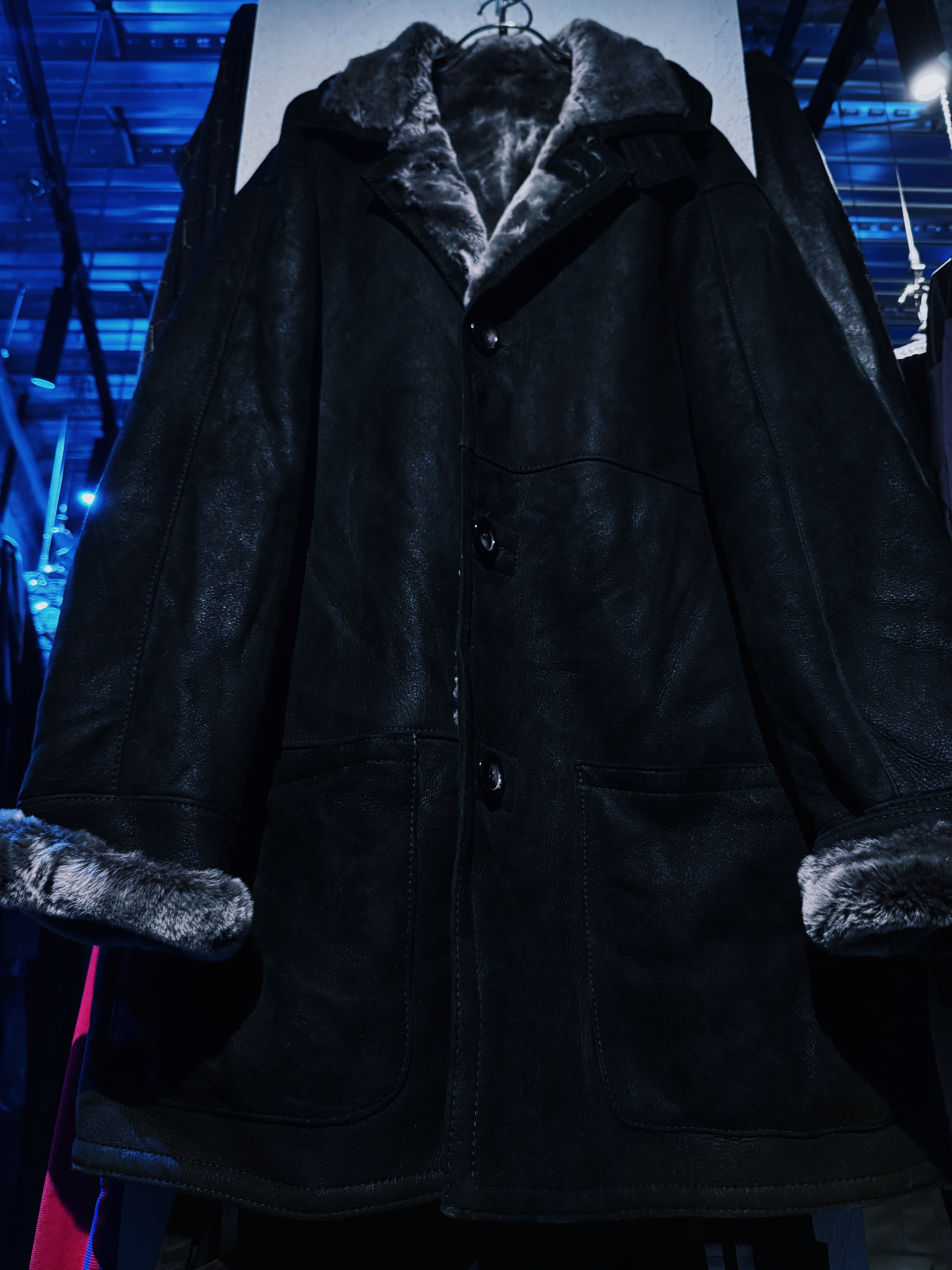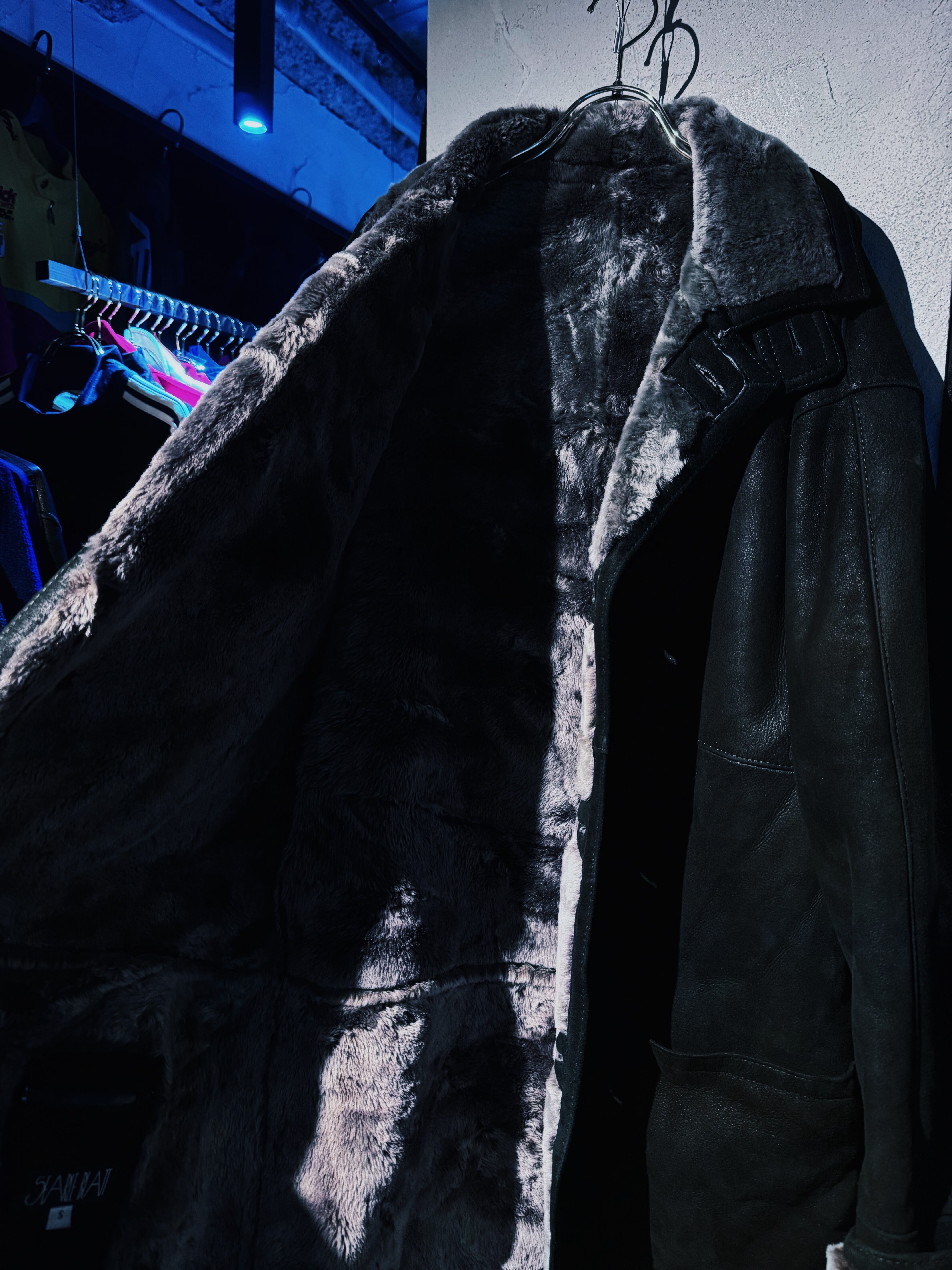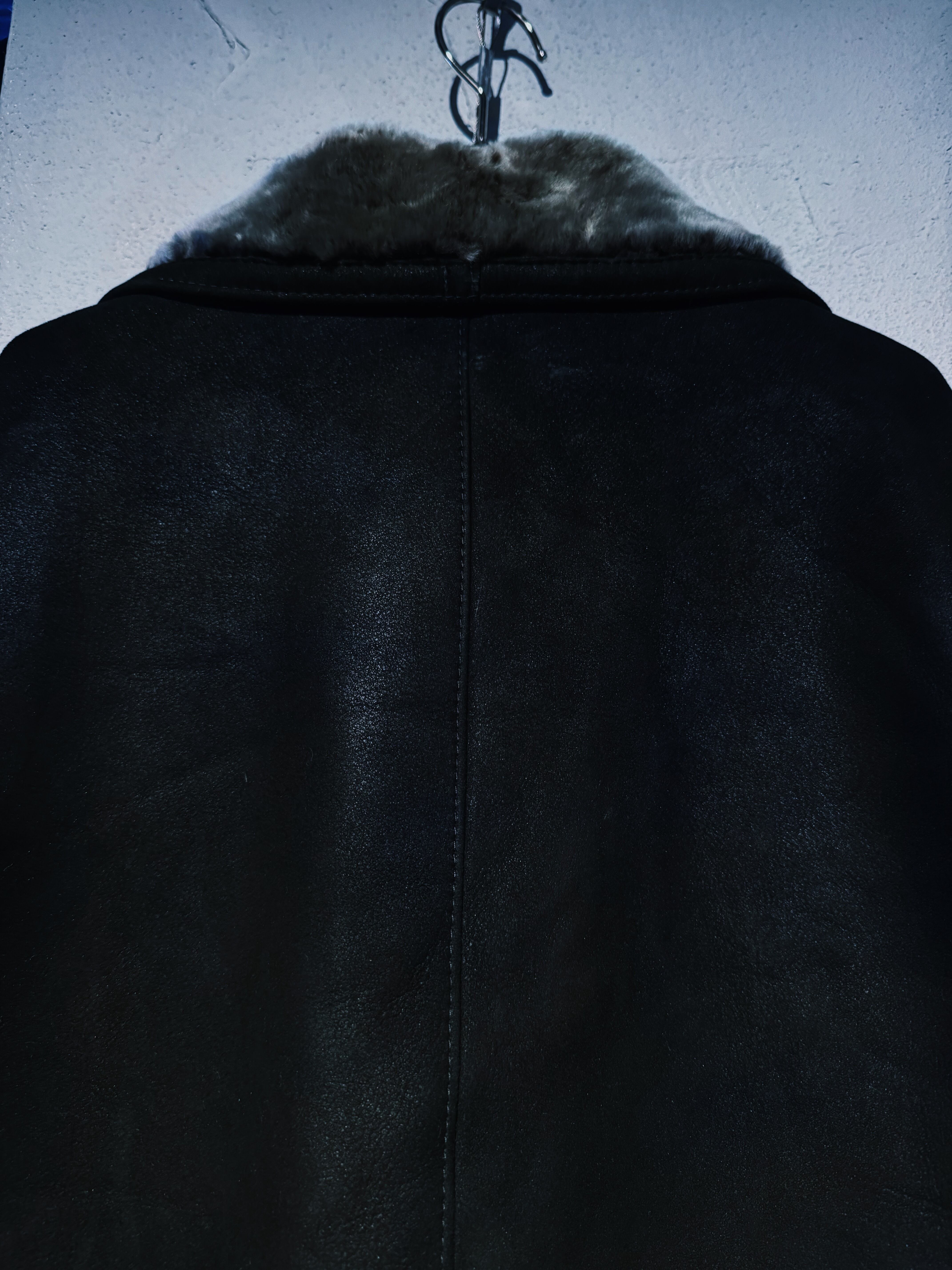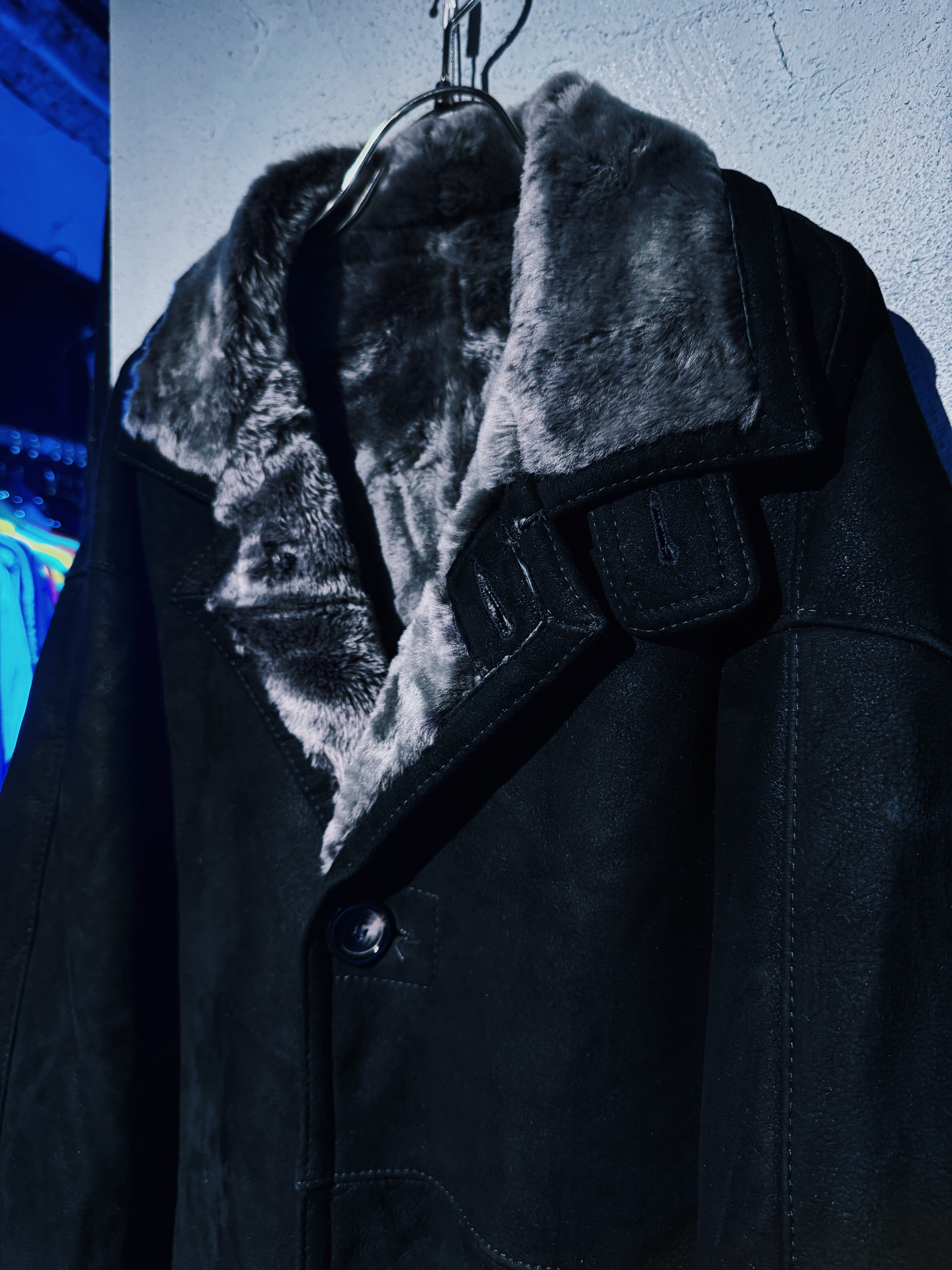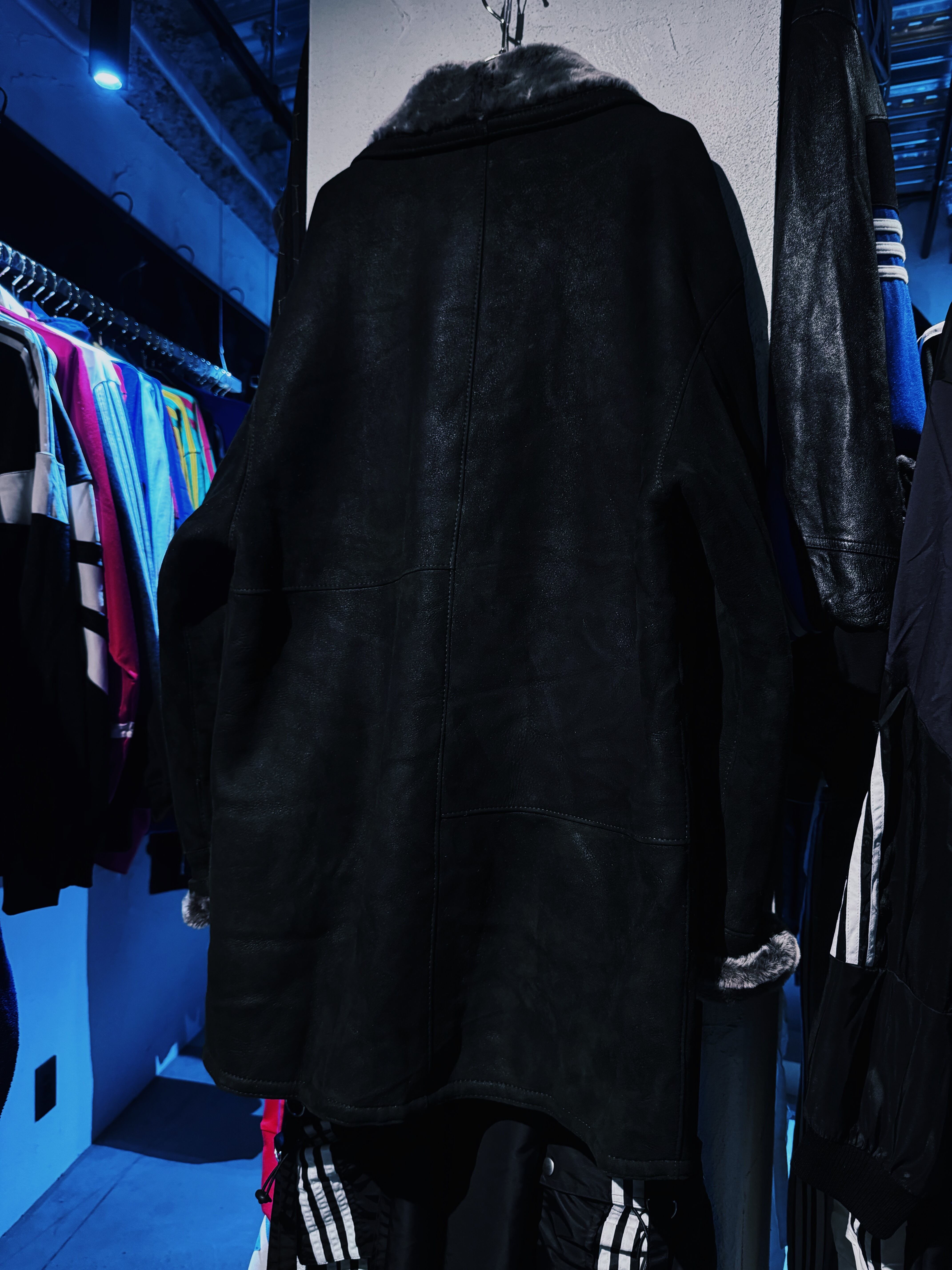 【D4C】"special" black mouton x off white fur lining loose middle coat