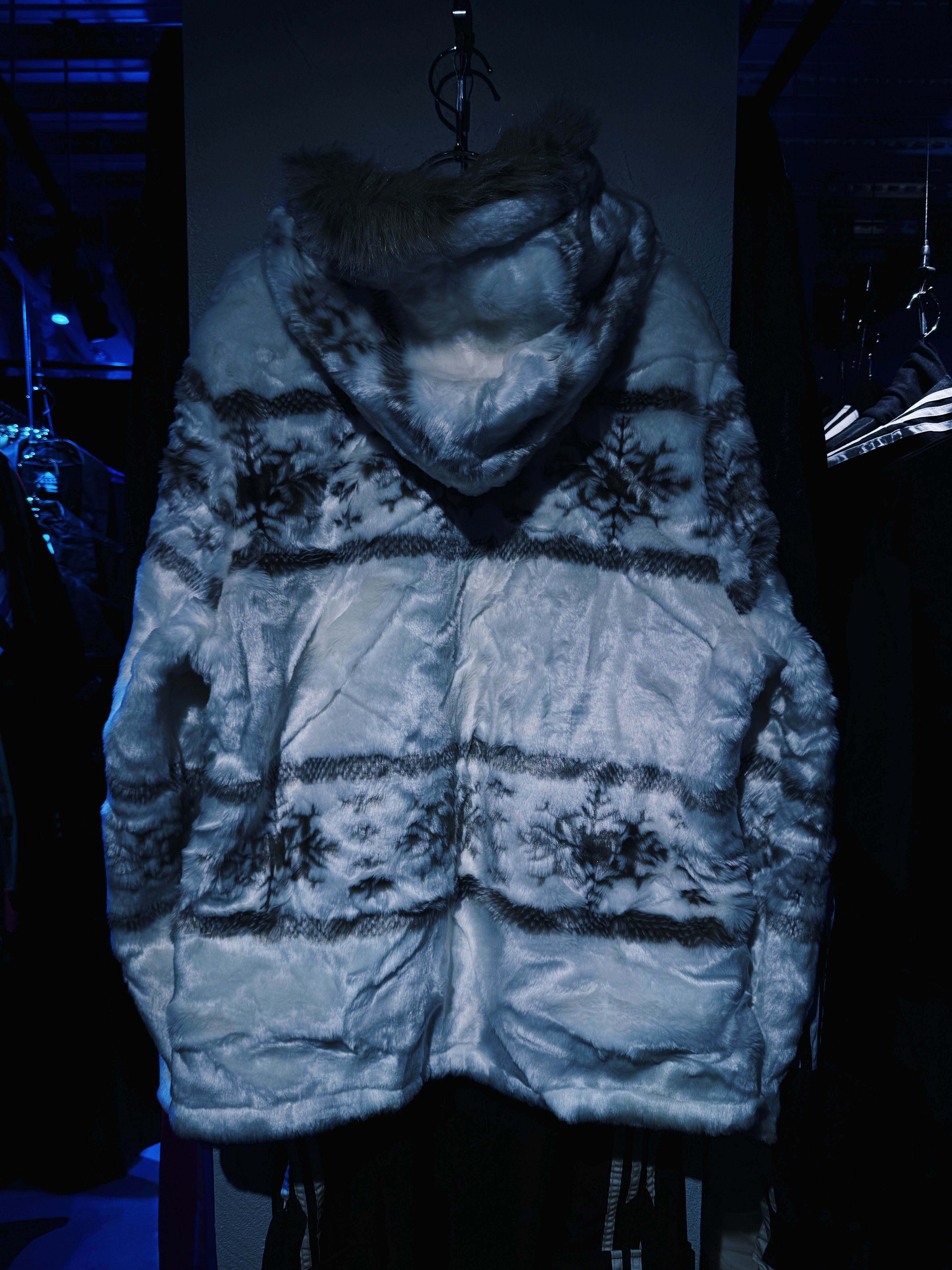 【D4C】Special vintage white color full Fur pattern snowflakes design reversible hoodie jacket