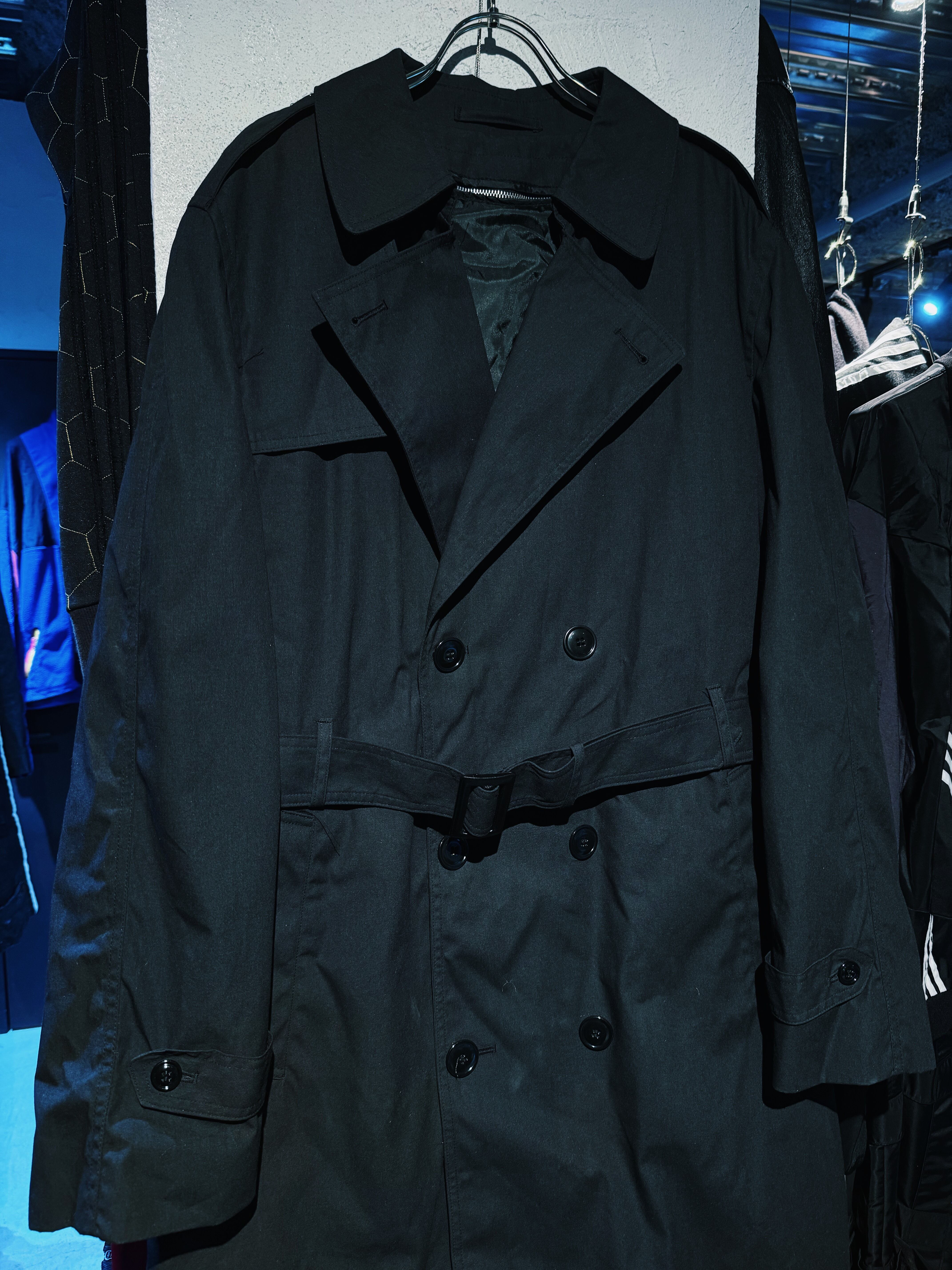 デッドストックヴィンテージマットブラックカラーダブルブレストミリタリートレンチコート