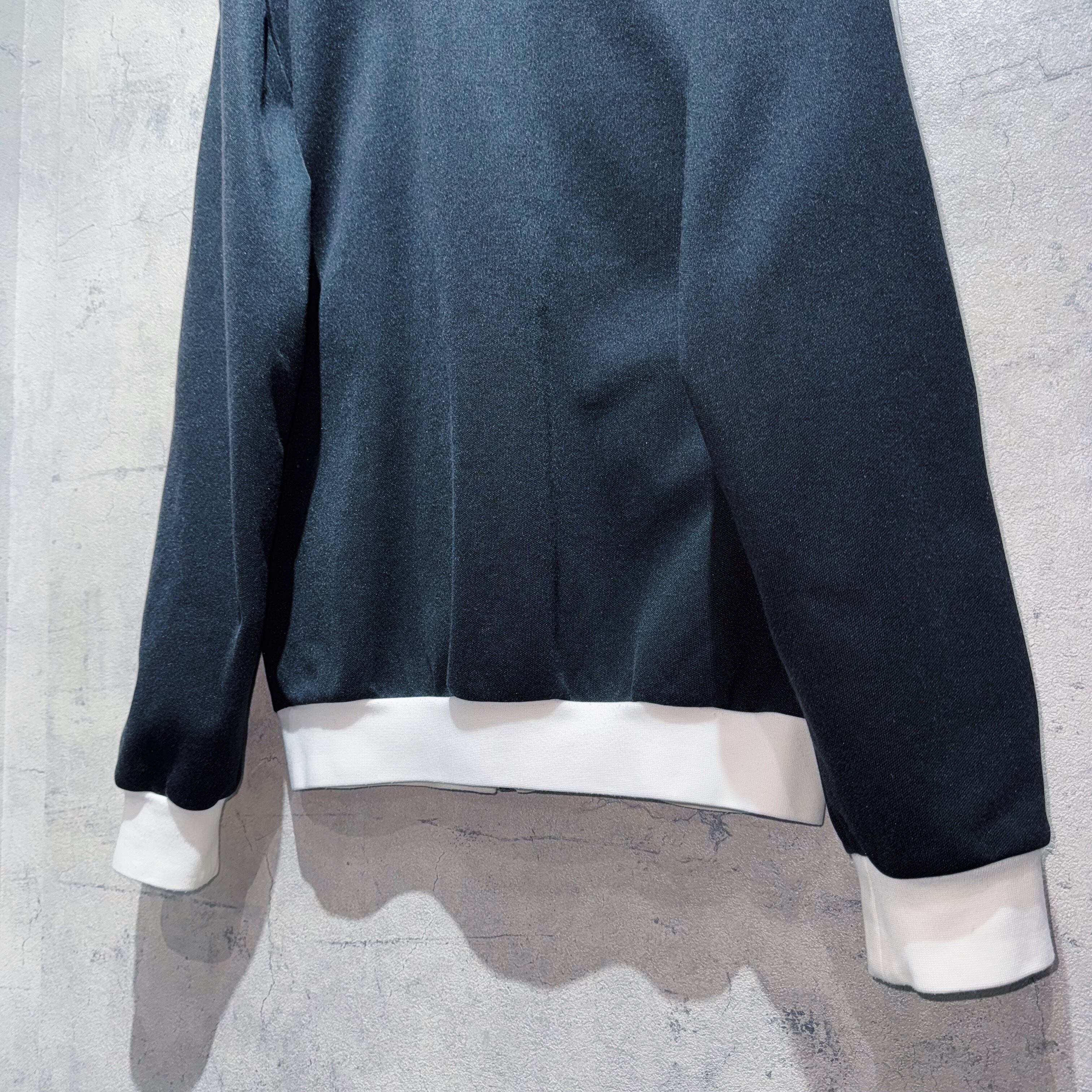 胸元には煌びやかな光沢のある刺繍でブランド名とトレフォイルが刻まれ抜かりのないデザインに。高すぎず低すぎないスタンドネックというのも魅力的。