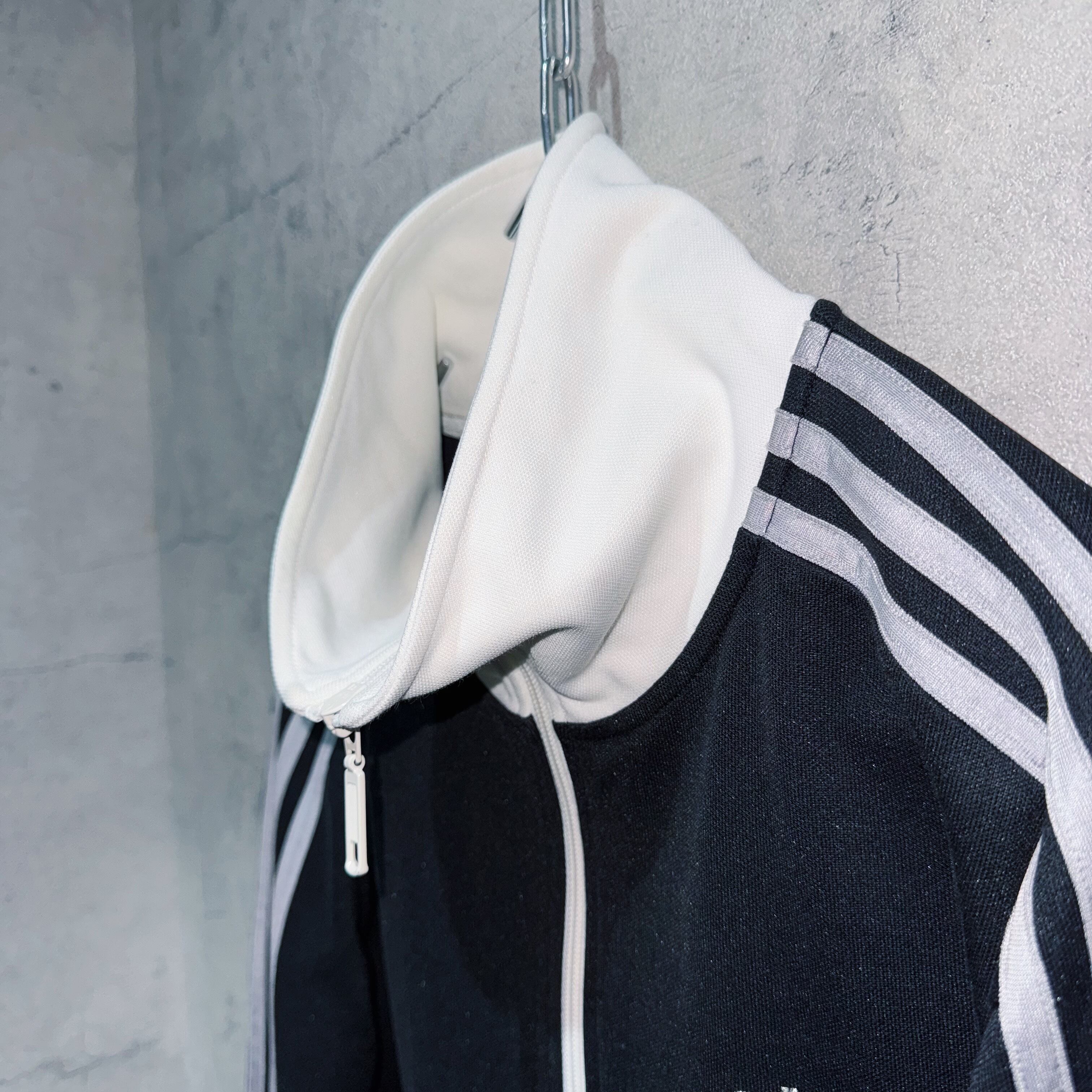 毎度即完のモノトーンで仕上げたカラーリング。ネック部分がホワイトカラーになっている希少ねデザインのトラックジャケット。代名詞でもある3ストライプスはグレーのようなカラーであしらわれ存在感を演出。
