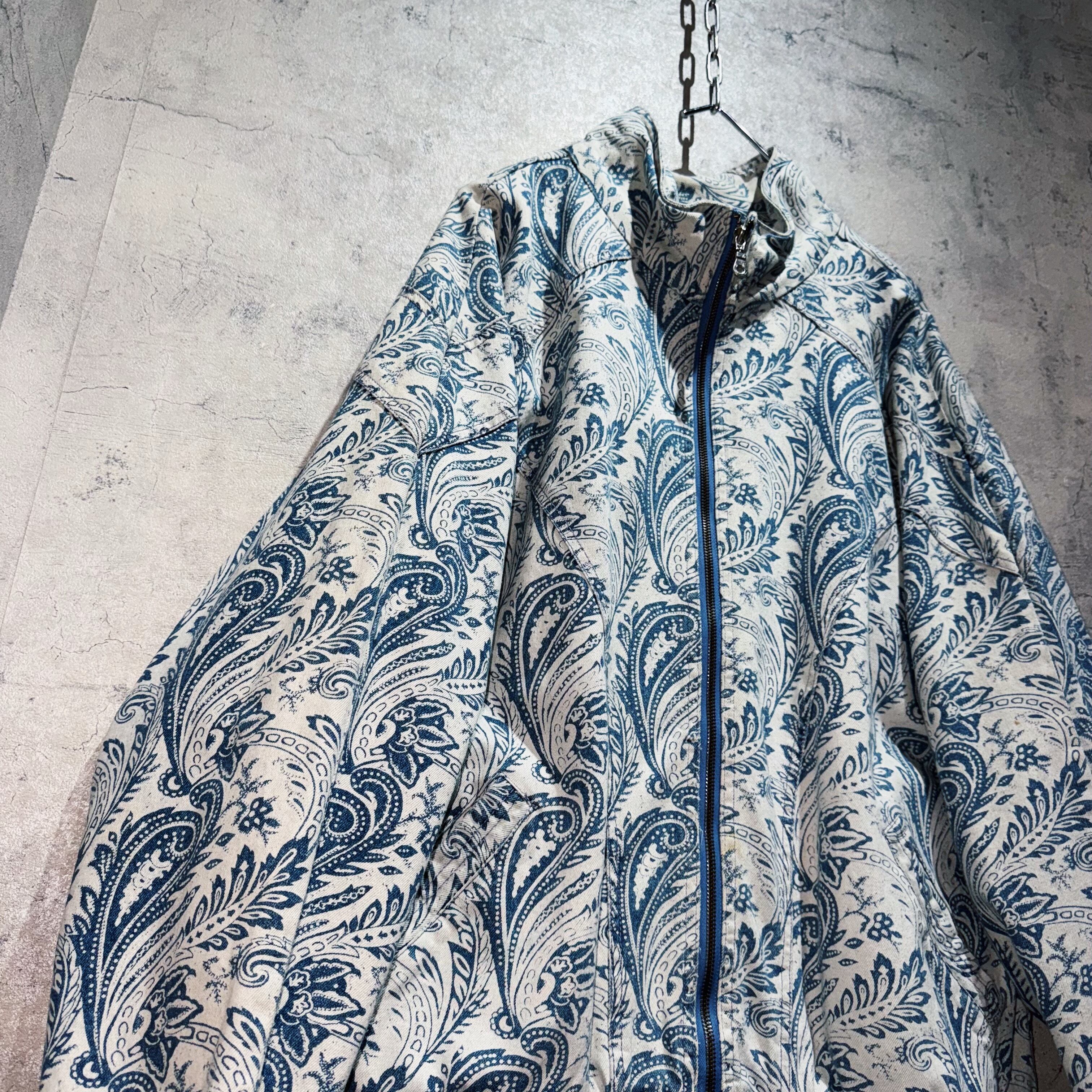 ヴィンテージボタニカルペイズリーパターンスタンドネックデニムジャケット
